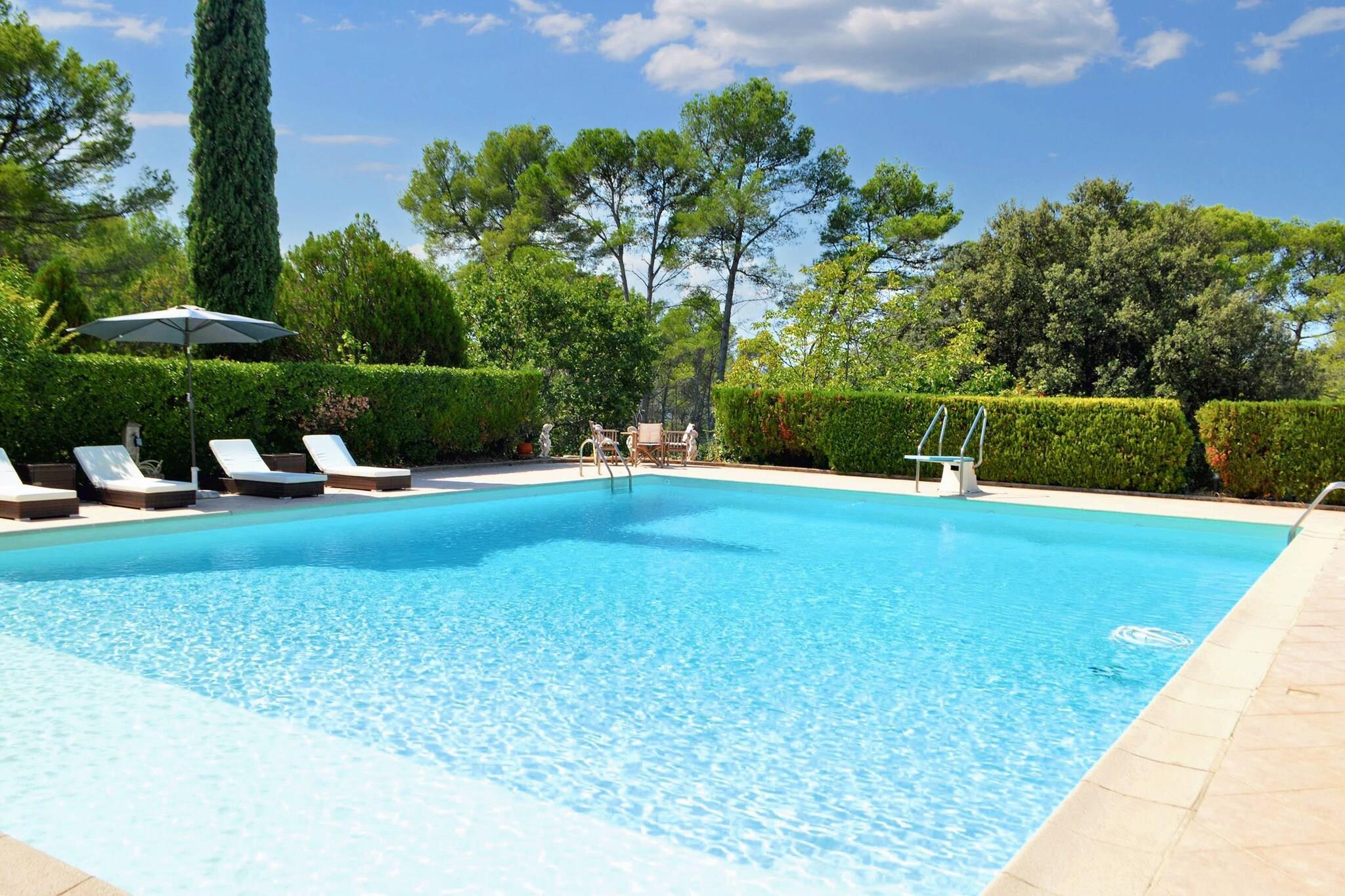 Der Zugang zu dieser ländlichen Villa erfolgt über mehrere Eingangstore, die zu mehreren Parkplätzen führen. Die riesige Residenz ist L-förmig um eine zentrale Poolterrasse herum gebaut und bietet absolute Privatsphäre. Kinder können unbeschwert im großzügigen Garten spielen und Sie können den Tag mit einem Morgenspaziergang auf dem eigenen Grundstück beginnen. Ideal für einen unvergesslichen Sonnenurlaub mit Familie und Freunden! Das provenzalische Lorgues ist bekannt für seine wunderschönen Olivenhaine, Weinberge und Wälder mit weißen und grünen Eichen. Es hat eine reiche Geschichte (die bis ins Mittelalter zurückreicht), einen angenehmen Sommermarkt dienstags und eine wunderschöne Lage im Herzen des Var. Die Villa zeichnet sich durch ihren typisch provenzalischen Stil und ihre zahlreichen Einrichtungen aus. Von einem Petanque-Platz und einem riesigen Swimmingpool (max. 2,75 tief) mit Sprungbrett bis hin zu einem gemütlichen Garten unter dem Maulbeerbaum, einer großzügigen überdachten Terrasse mit Esstisch und Loungebereich, einer gut ausgestatteten Innen- und Außenküche mit elektrischem Weber Grill und die charakteristische, attraktive Außenbeleuchtung. Alle Zutaten für ein einzigartiges Urlaubserlebnis sind vorhanden.