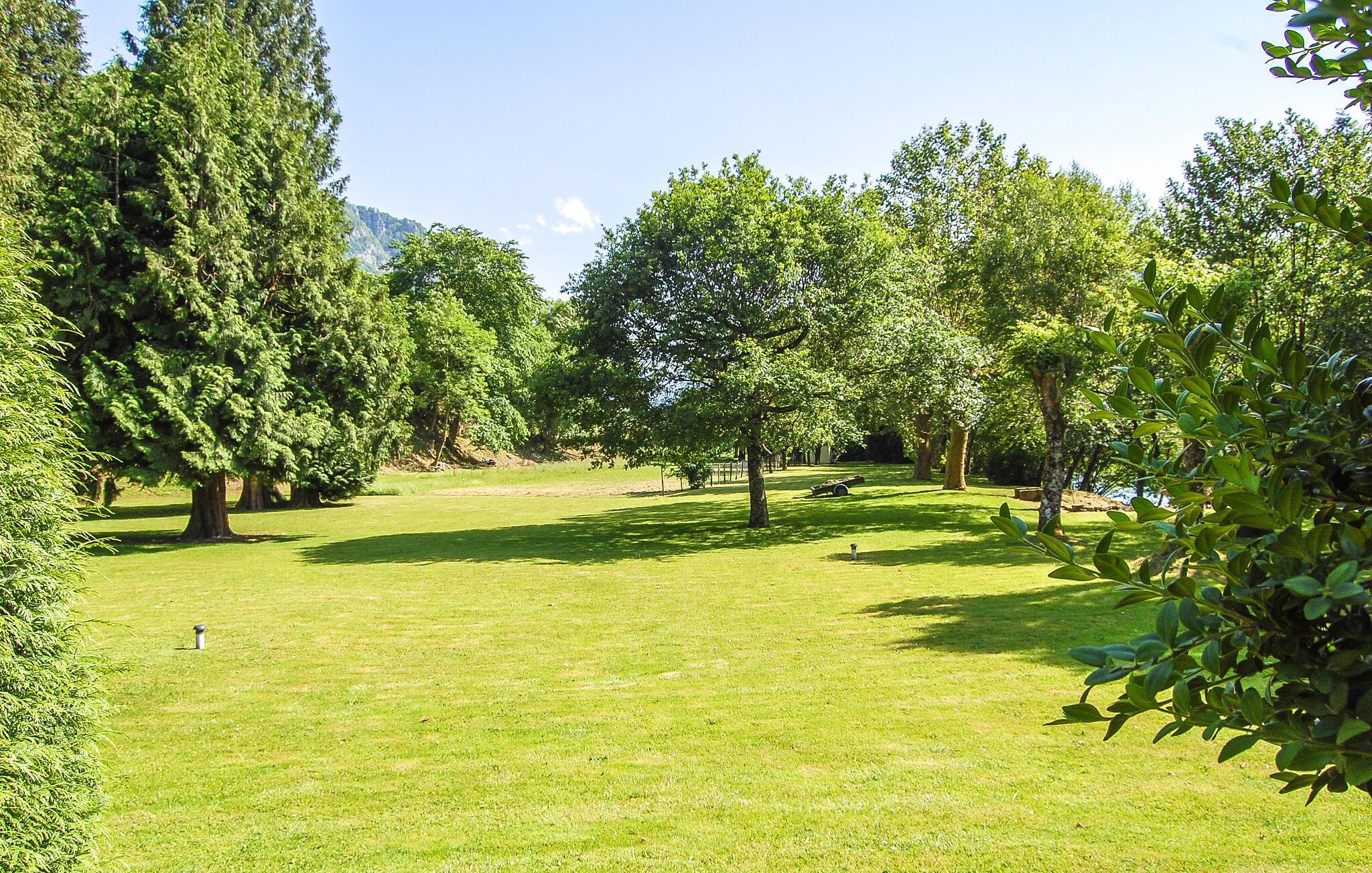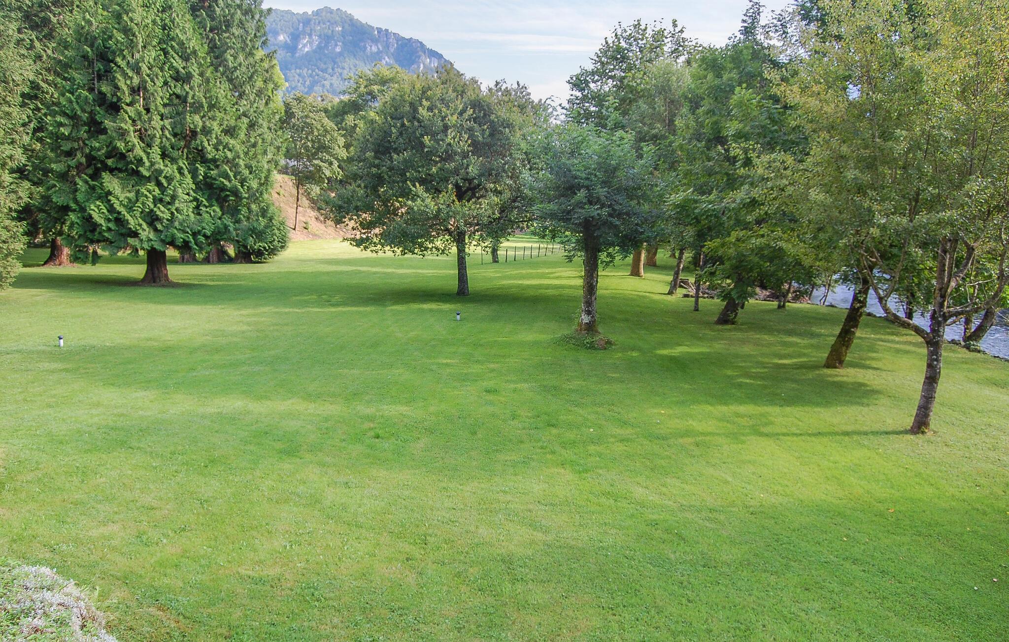 Sie können sich aber nicht nur auf das Haus freuen, sondern auch die Sommertage auf der Holzterrasse beim Grillen oder Sonnenbaden voll auskosten. Gehen Sie von hier die Stufen hinab in den Garten und erkunden bei Spaziergängen den bewaldeten Park und das Flussufer.