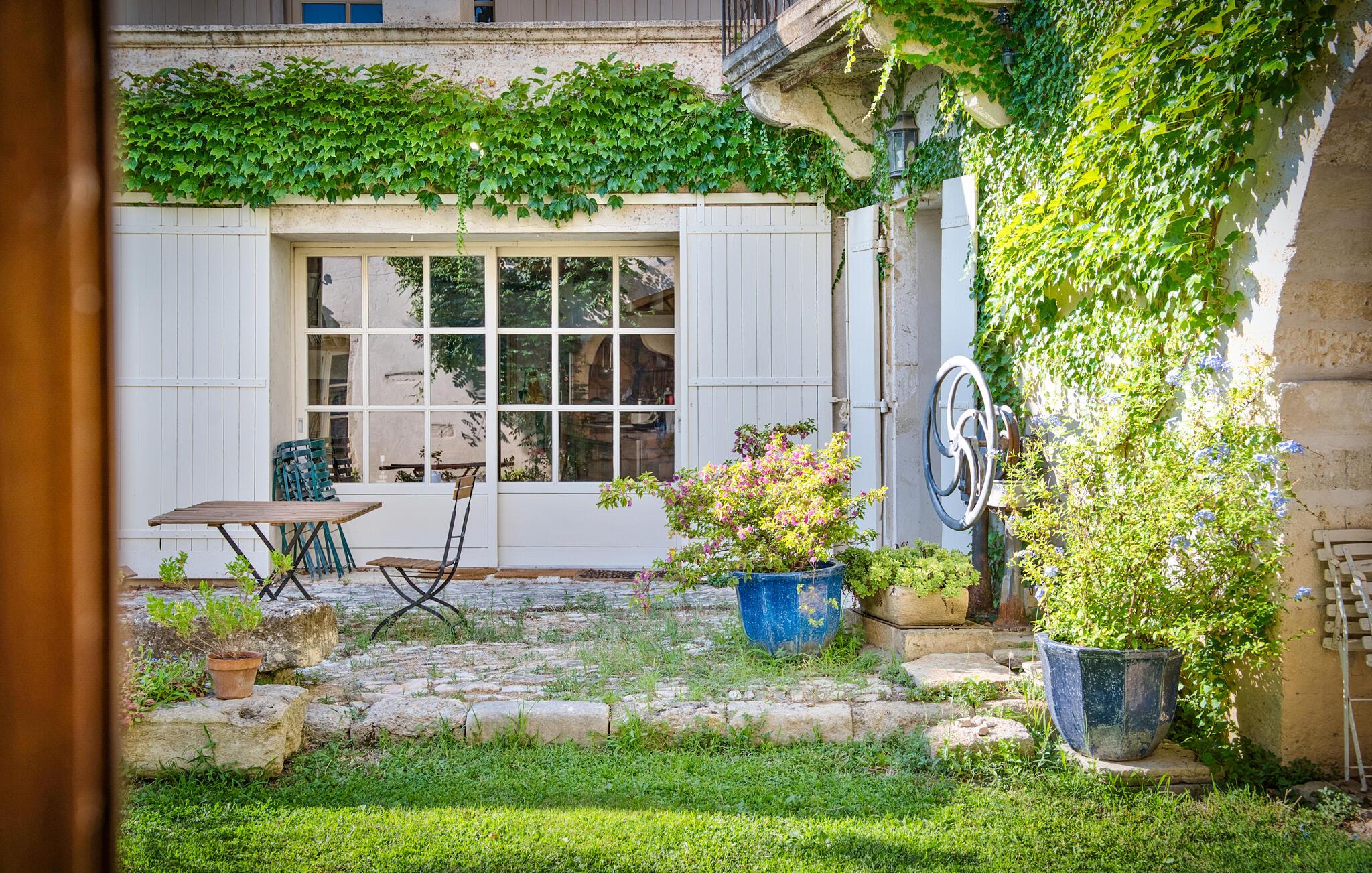 Der idyllische Garten, den Sie sich mit dem diskreten Eigentümer teilen, bietet lauschige Plätze für erholsame Siestas und kühle Getränke im Schatten sowie einen kleinen Pool, der in den heißen Sommermonaten für Erfrischung sorgt. Sie werden die offene und die überdachte Terrasse für Ihre Abendessen zu schätzen wissen.
