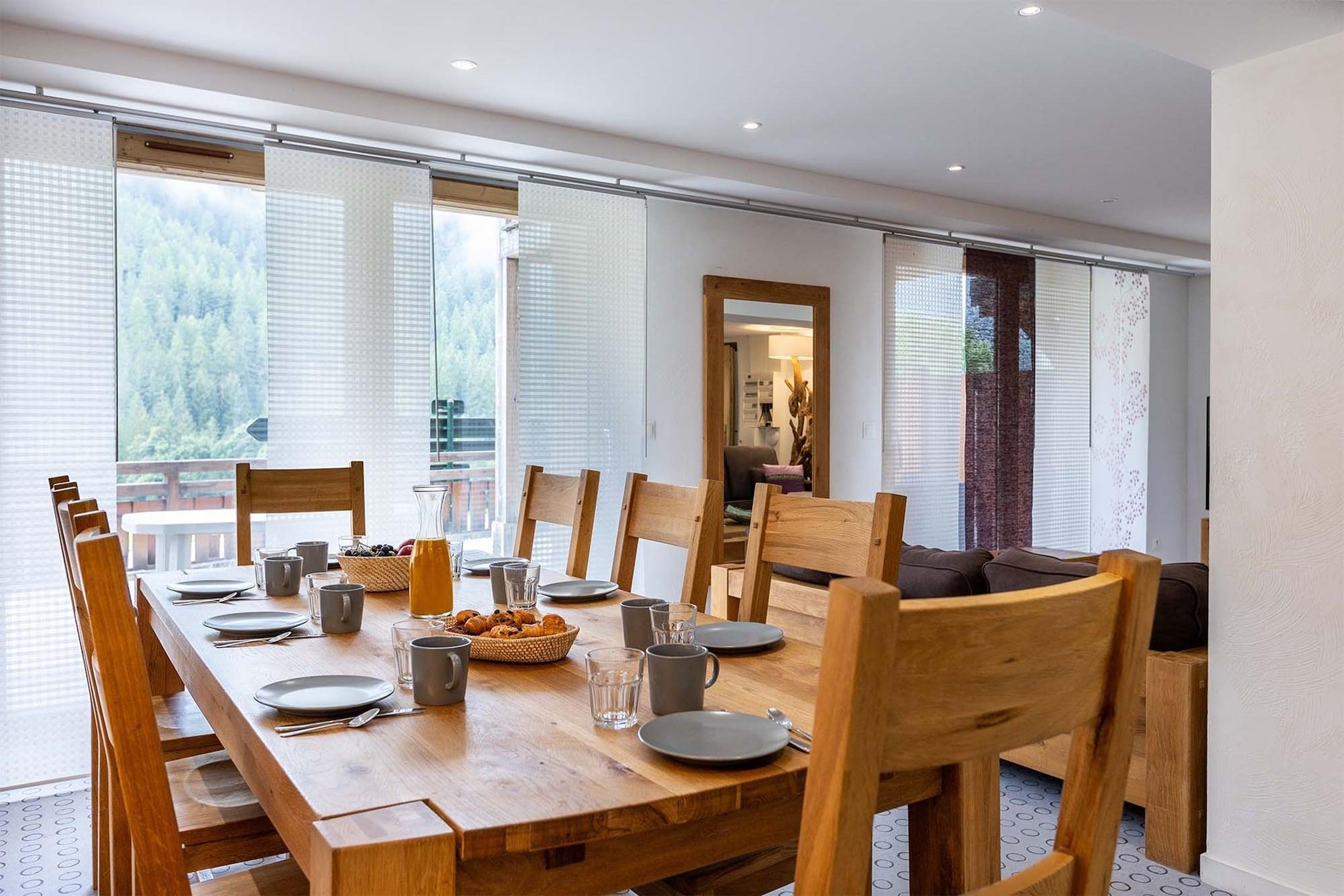 Die Residenz Chalet Les Amis genießt eine priviligierte Lage zwischen Les Arcs und La Plagne, vor den Toren des wunderschönen Parc de la Vanoise, eingebettet im Herzen des Skigebietes Paradiski. Sie verfügt über 5 Ferienwohnungen für 8 bis 14 Personen und ein separates Chalet für maximal 10 Personen, die im Jahre 2024 komplett renoviert wurden. Ein gemeinsamer Spa-Bereich mit Sauna und Whirlpool bietet Entspannung nach einem ausgiebigen Tag im Skigebiet. Ein kostenloser Shuttlebus bringt sie direkt zu den Skipisten. Dieses Appartment über 2 Etagen bietet eine außergewöhnliche Aussicht auf das Tal von Nancroix, die Berge, Fichtenwälder und das Massif de la Vanoise. Vom großen Wohnbereich mit offener Küche führt eine Treppe zu den drei Schlafräumen, jeder mit privatem Bad.