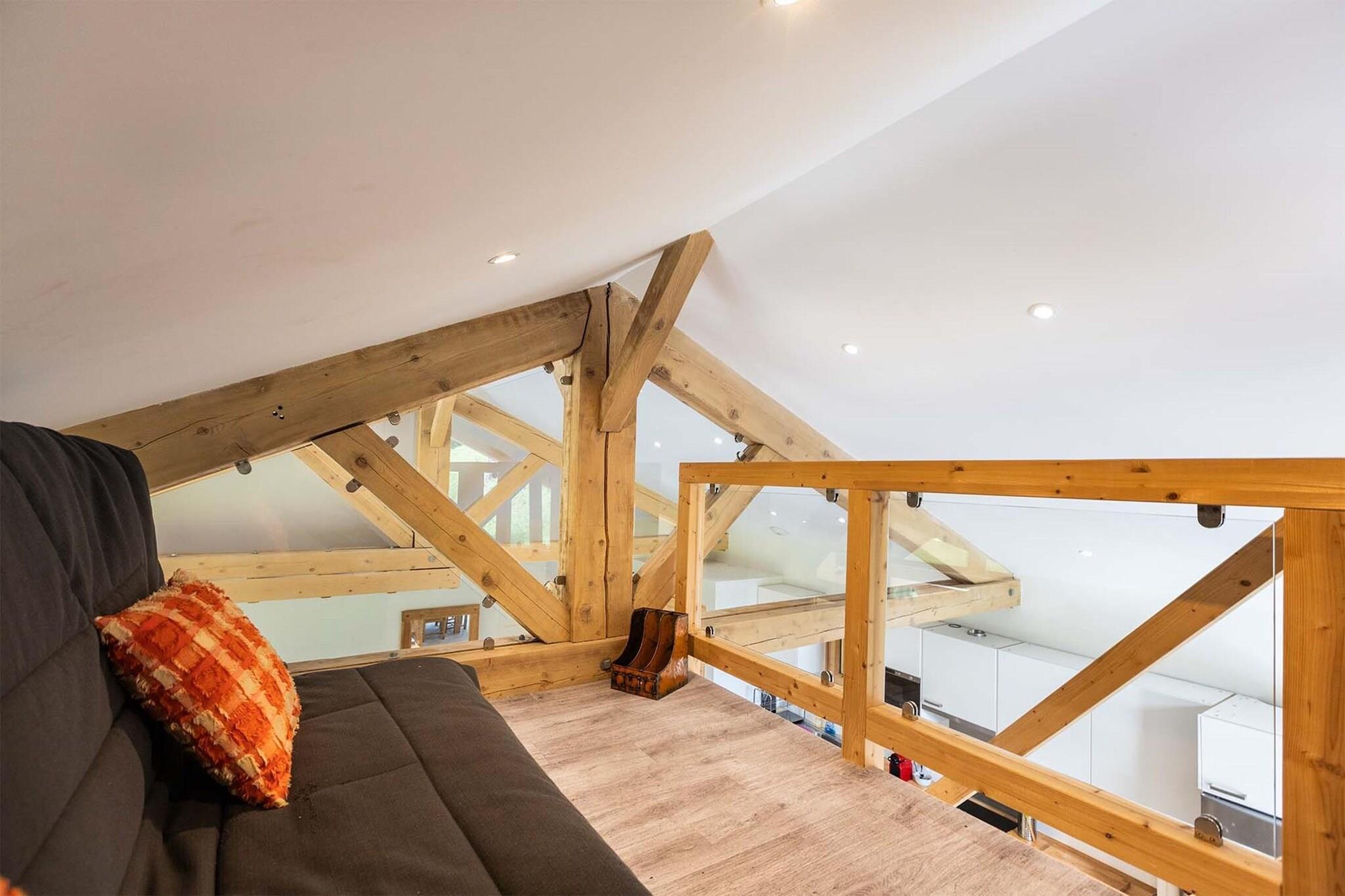Die Residenz Chalet Les Amis genießt eine priviligierte Lage zwischen Les Arcs und La Plagne, vor den Toren des wunderschönen Parc de la Vanoise, eingebettet im Herzen des Skigebietes Paradiski. Sie verfügt über 5 Ferienwohnungen für 8 bis 14 Personen und ein separates Chalet für maximal 10 Personen, die im Jahre 2024 komplett renoviert wurden. Ein gemeinsamer Spa-Bereich mit Sauna und Whirlpool bietet Entspannung nach einem ausgiebigen Tag im Skigebiet. Ein kostenloser Shuttlebus bringt sie direkt zu den Skipisten. Dieses Appartment befindet sich in der 3. Etage (Fahrstuhl vorhanden), die Wohnung selbst verteilt sich über 2 Etagen und bietet eine außergewöhnliche Aussicht auf das Tal von Nancroix, die Berge, Fichtenwälder und das Massif de la Vanoise. Vom großen Wohnbereich mit offener Küche führt eine steile Treppe zu der Schlafgalerie mit Schlafcouch, ein Schlafraum mit privatem Bad befindet sich auf Ebene des Wohnzimmers, drei Schlafräume, jeder mit privatem Bad, befinden sich in der oberen Etage der Wohnung.