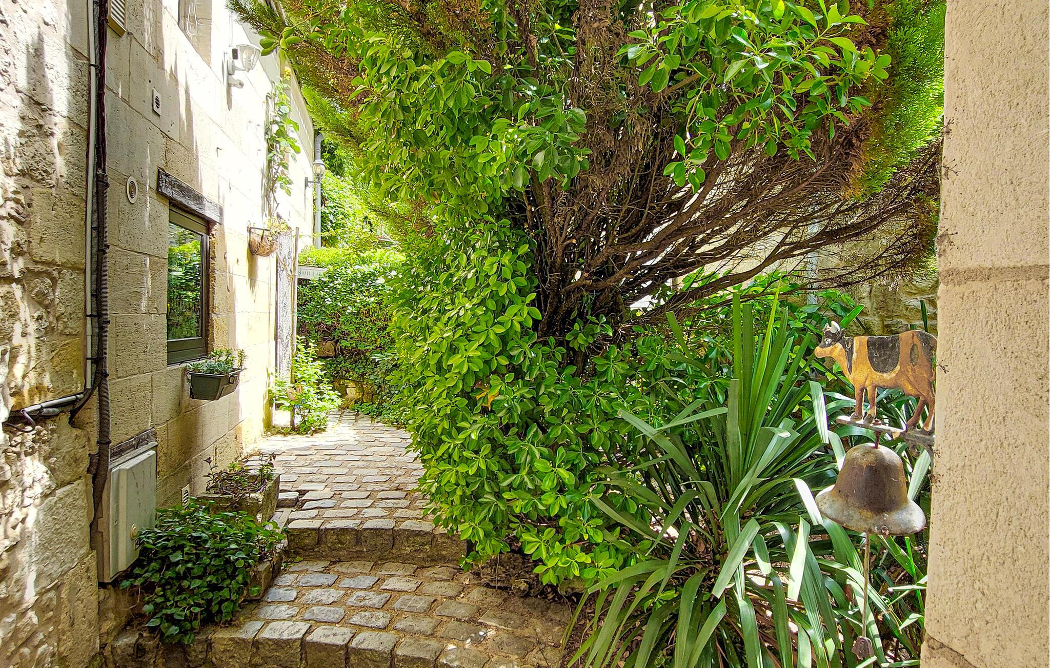 Der üppig bepflanzte und liebevoll gestaltete Garten birgt einen herrlichen kleinen Pool, an dem nur wenige Meter entfernt die Dordogne gemächlich vorbeiplätschert. Entfachen Sie den Grill und genießen Sie die friedliche Atmosphäre bei einem Glas Wein aus der Region.