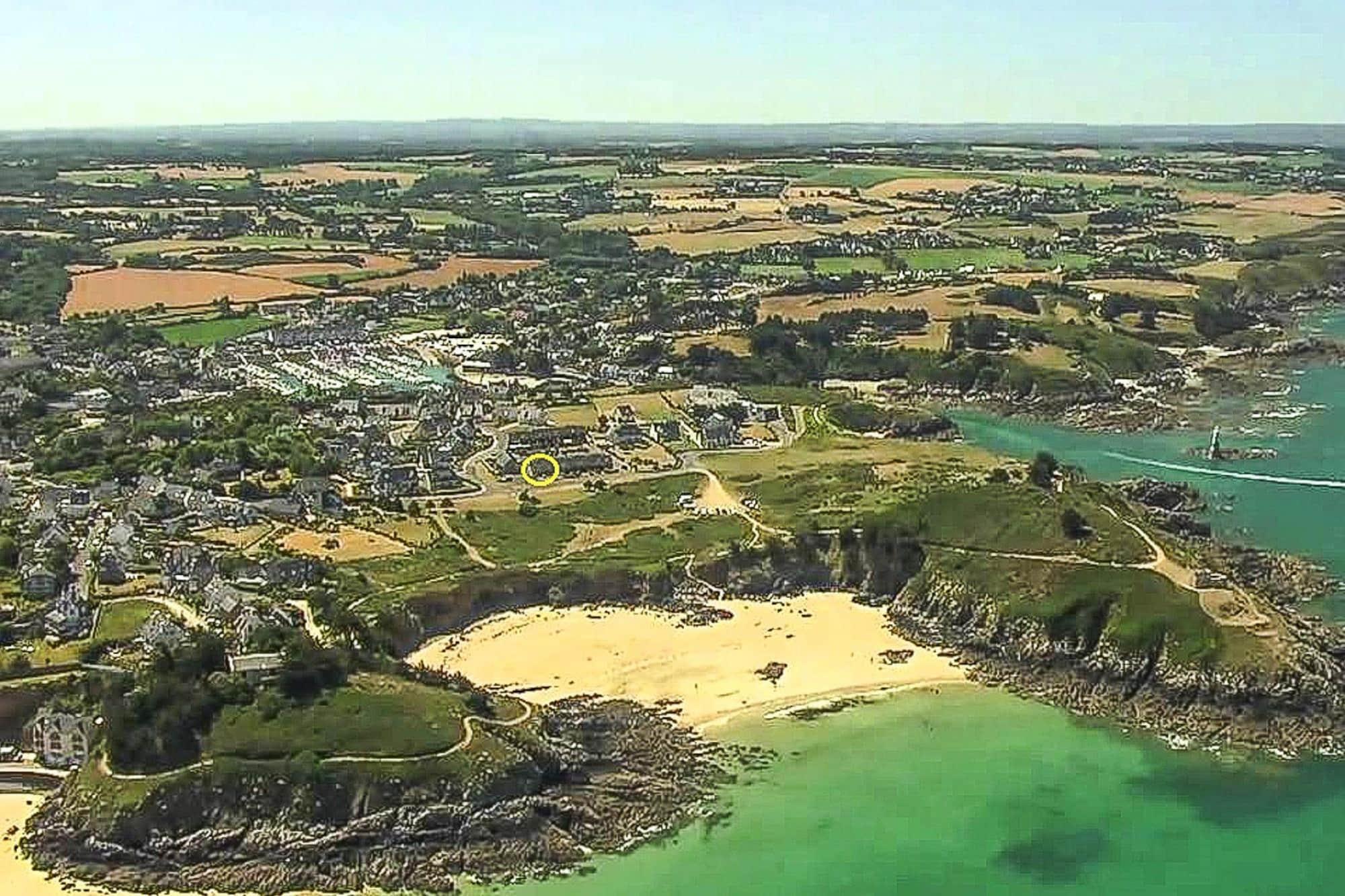 Dieses charmante Reihenhaus mit Meerblick liegt in einer kleinen Naturstein-Residenz direkt gegenüber dem Strand Le Pissot – ideal für einen erholsamen Urlaub in Pléneuf-Val-André. Geschmackvoll eingerichtet, bietet es zwei Terrassen, auf denen Sie den ganzen Tag die Sonne genießen können. Der berühmte Zöllnerpfad GR34 verläuft ganz in der Nähe und lädt zu herrlichen Spaziergängen entlang der Smaragdküste ein. In unmittelbarer Umgebung finden Sie den großen Sandstrand, die Strandpromenade mit ihren Belle-Époque-Villen, den Wochenmarkt am Dienstag sowie zahlreiche Freizeitmöglichkeiten: Golf, Tennis, Reiten, Wassersport, Thalasso, Hallenbad oder Fahrradverleih. In der Umgebung lohnen sich Ausflüge nach Lamballe, Moncontour, Dinan, zum Cap Fréhel, nach Saint-Malo, Cancale oder Dinard.