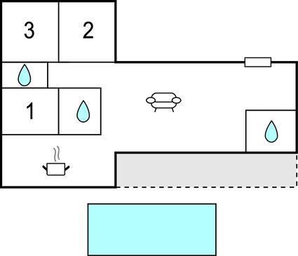 Toilette 2m2 (nr. 1) - WC.Kaltes Wasser