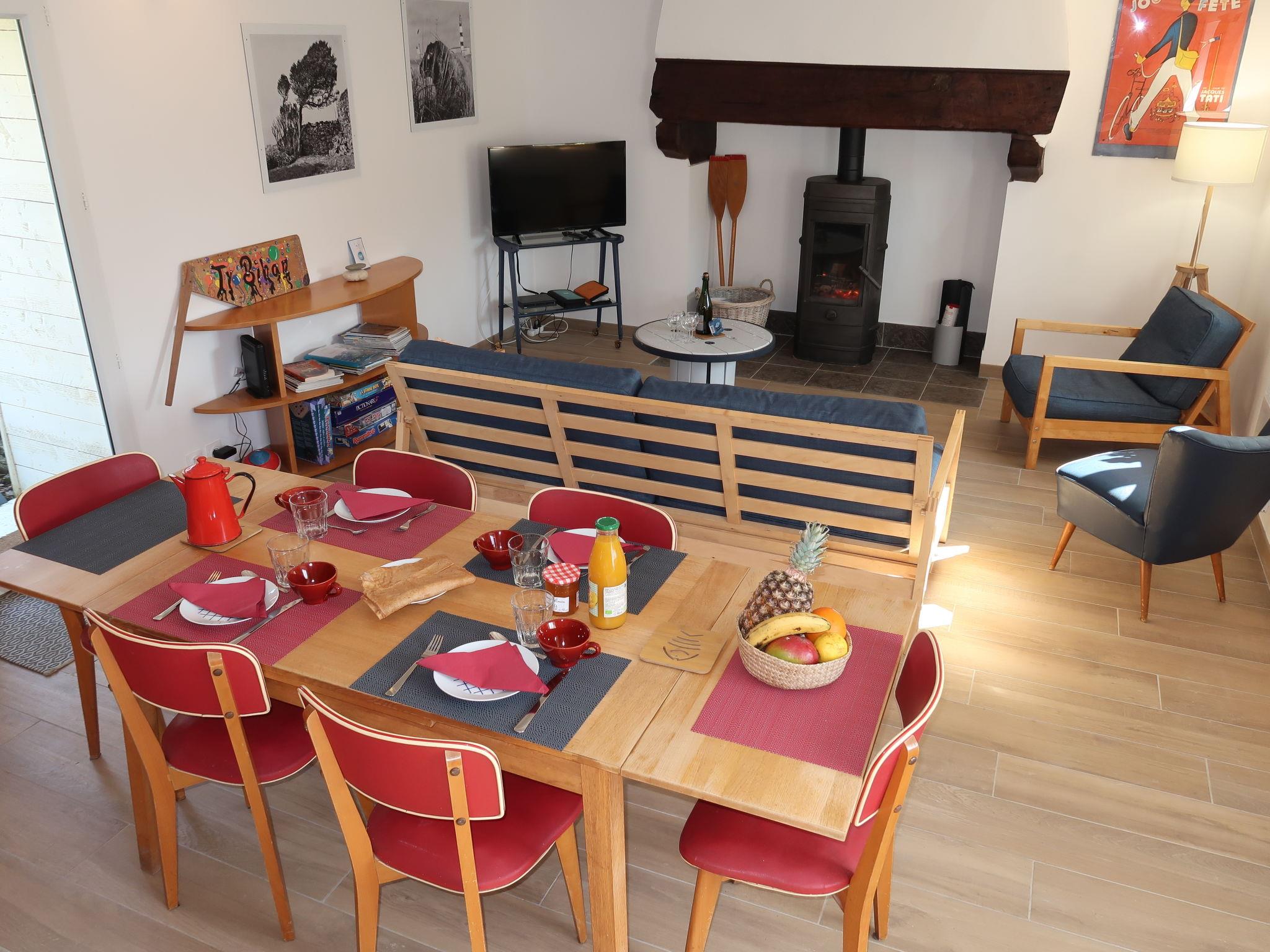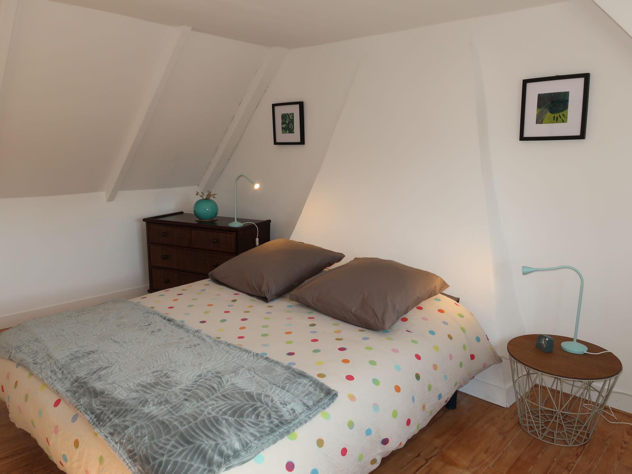 "Ty Bihan", 4-Zimmer-Haus 75 m2 auf 2 Stockwerken. Schön eingerichtet: offenes Wohn-/Esszimmer mit offenem Kamin, Essecke und TV (Flachbildschirm), DVD. Ausgang zum Garten. Offene Küche (Backofen, Geschirrspüler, 3 Glaskeramikplatten, Toaster, Wasserkocher, Mikrowelle, Tiefkühler, elektrische Kaffeemaschine, Kapseln für die Kaffeemaschine (Nespresso) extra, Racletteofen). Dusche/WC. E-Heizung. Obergeschoss: 1 Zimmer mit 1 franz. Bett (160 cm, Länge 200 cm). 1 Zimmer mit 1 franz. Bett (140 cm, Länge 190 cm). 1 Zimmer mit 1 x 2 Etagenbetten (90 cm, Länge 190 cm). Parkettboden. Terrassenmöbel, Gartengrill, Liegestühle (2). Zur Verfügung: Waschmaschine, Bügeleisen, Kinderhochstuhl, Babybett bis 2 Jahre, Haartrockner. Internet (Wireless LAN). Bitte beachten: Nichtraucher-Haus. Rauchmelder. 879385