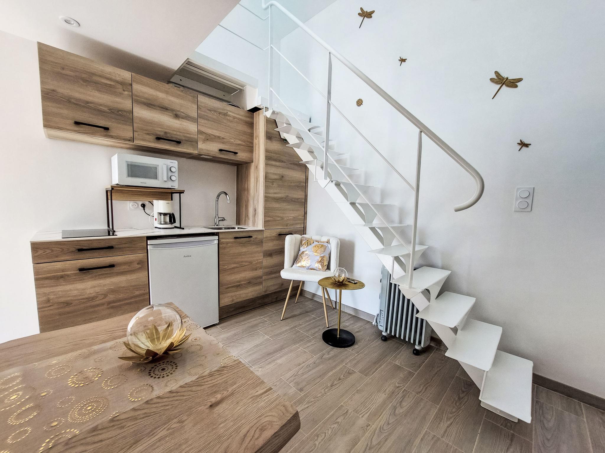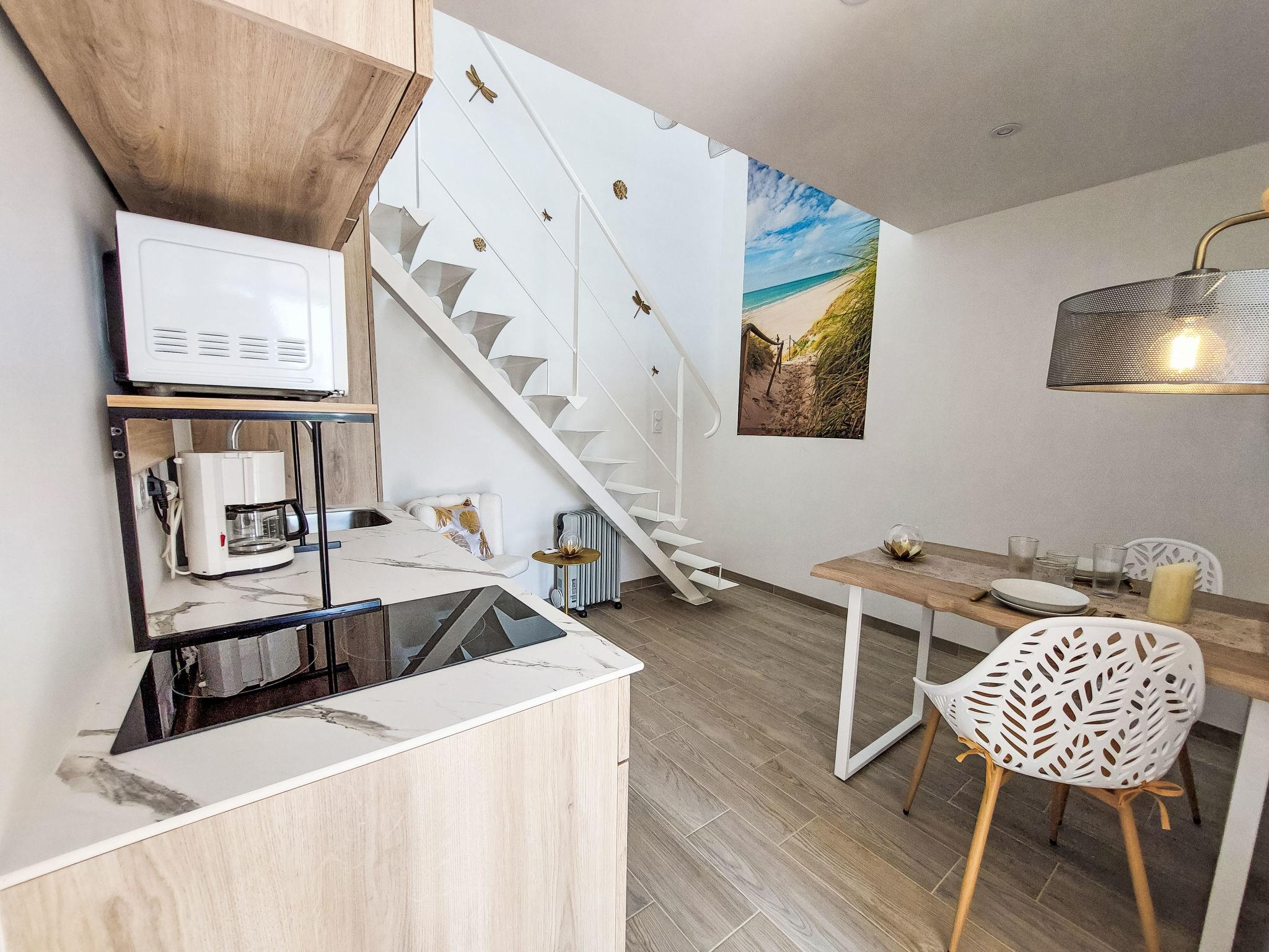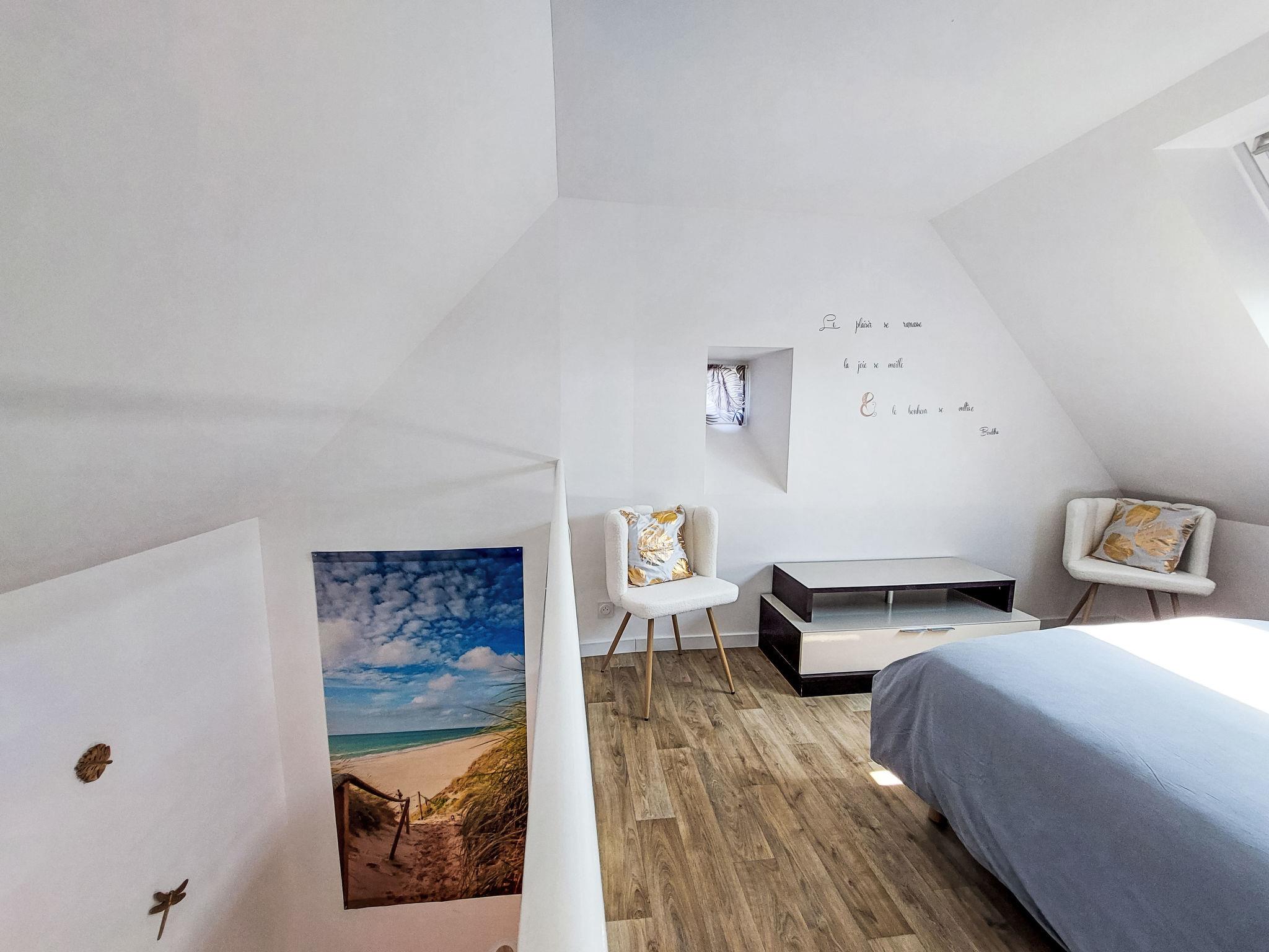 "La Trélennette", 2-Zimmer-Haus 45 m2 auf 2 Stockwerken, Südlage. Objekt geeignet für 2 Erwachsene. Schön eingerichtet: Wohn-/Esszimmer mit Essecke und TV (Flachbildschirm), E-Heizofen. Ausgang zur Terrasse. Kochnische (2 Induktionskochplatten, Toaster, Wasserkocher, Mikrowelle, elektrische Kaffeemaschine). Dusche/WC. Obergeschoss: abgeschrägte Galerie mit 1 franz. Bett (160 cm, Länge 200 cm). Terrasse 20 m2, Südlage. Terrassenmöbel, Gartengrill, Liegestühle (2). Zur Verfügung: Haartrockner. Bitte beachten: Nichtraucher-Haus. Maximal 1 Haustier/Hund erlaubt. Rauchmelder. Inserat einer Privatperson nach Artikel 155, IV, CGI.
