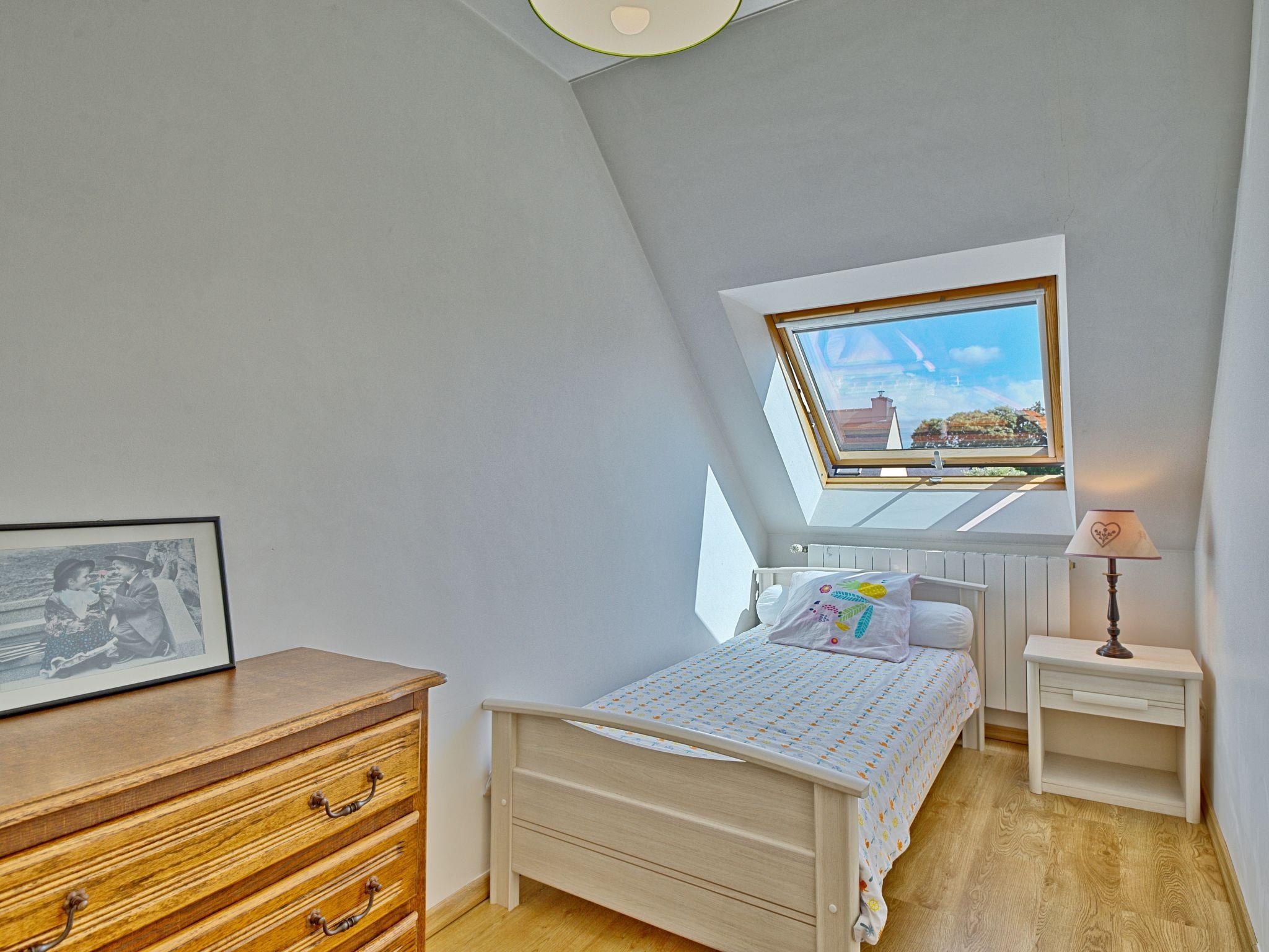 "Ty Ker", 6-Zimmer-Haus 170 m2 auf 2 Stockwerken. Geräumig und hell, schön eingerichtet: Wohn-/Esszimmer mit Esstisch, Sat-TV und Radio. Ausgang zur Terrasse. 1 Zimmer mit 1 franz. Bett (160 cm, Länge 200 cm). Offene Küche (Backofen, Geschirrspüler, 3 Glaskeramikplatten, Toaster, Wasserkocher, Mikrowelle, Tiefkühler, elektrische Kaffeemaschine) mit kleinem Esstisch. Bad/Dusche, sep. WC, Doppelwaschbecken. Obergeschoss: 1 abgeschrägtes Zimmer mit 1 franz. Bett (140 cm, Länge 190 cm). 1 abgeschrägtes Zimmer mit 2 Betten (90 cm, Länge 190 cm). 1 abgeschrägtes Zimmer mit 1 Bett (90 cm, Länge 190 cm). 1 Zimmer mit 1 franz. Bett (160 cm, Länge 190 cm). Bad/Dusche, sep. WC. Heizung. Terrasse. Terrassenmöbel, Gartengrill (mobil), Liegestühle (3), Abstellkammer. Zur Verfügung: Waschmaschine, Wäschetrockner, Bügeleisen, Babybett. Internet (Wireless LAN, gratis). Bitte beachten: Nichtraucher-Haus. Maximal 2 Haustiere/Hunde erlaubt. Rauchmelder.