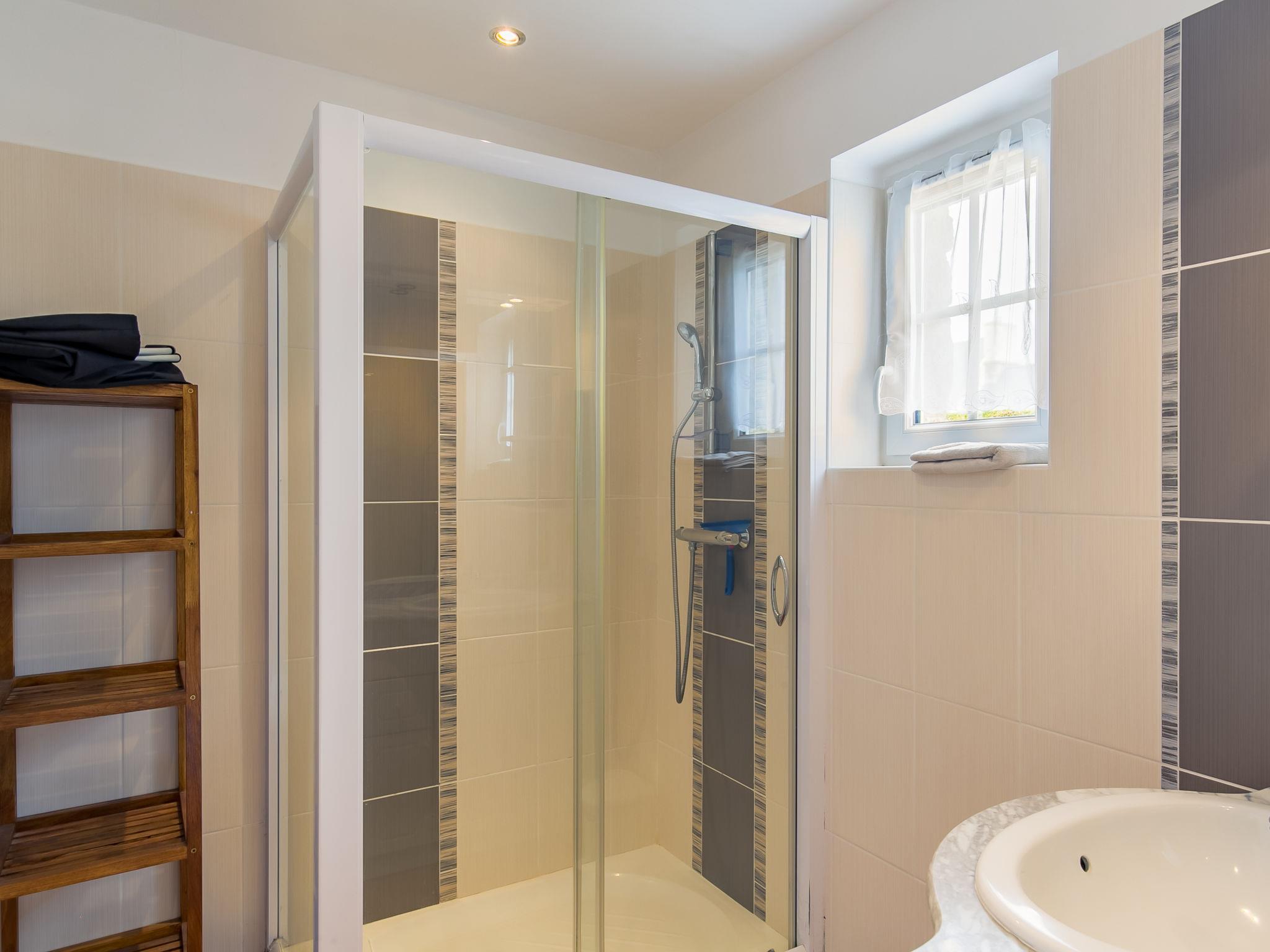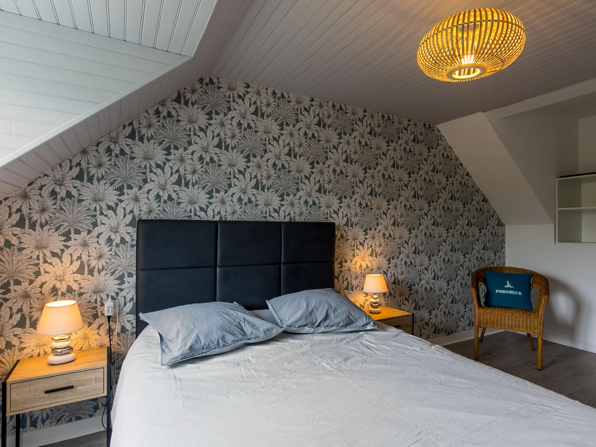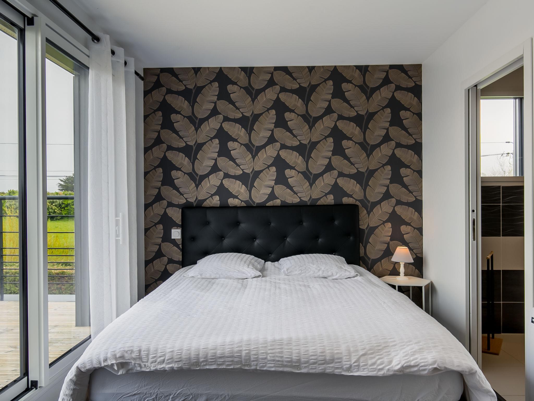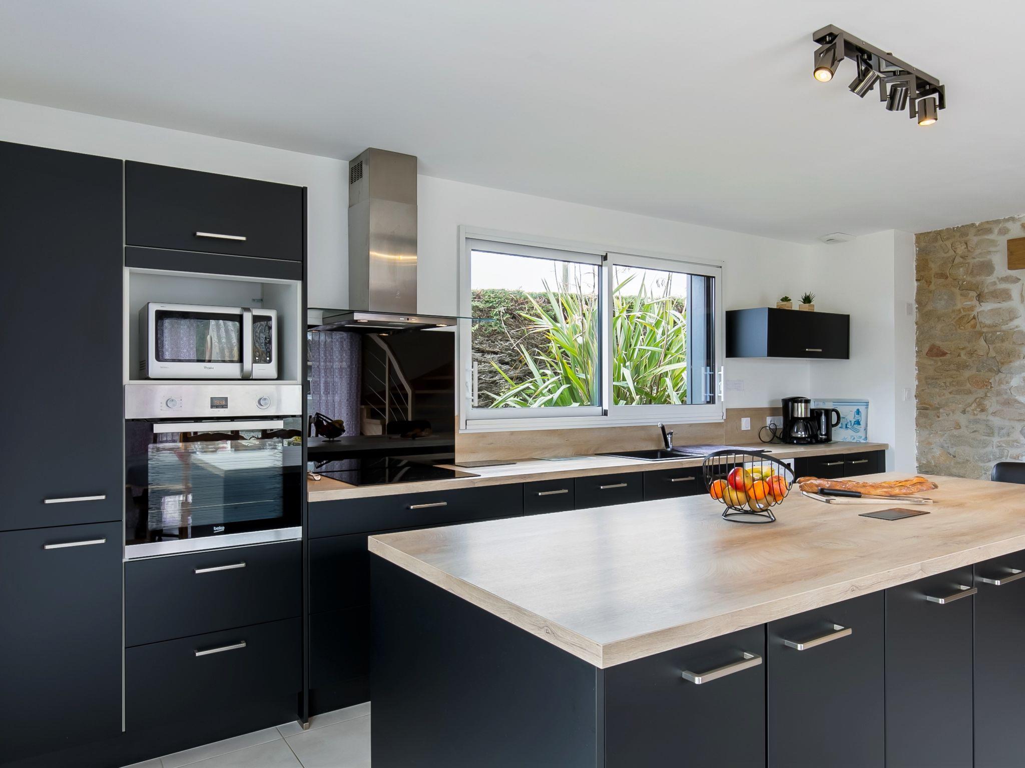 "Kernic Ty", 4-Zimmer-Haus 130 m2 auf 2 Stockwerken. Komfortabel und geschmackvoll eingerichtet: Wohnzimmer mit Schwedenofen, Sat-TV und Internationale TV-Sender. Ausgang zur Terrasse. Offene Küche (Backofen, Geschirrspüler, 3 Induktionskochplatten, Toaster, Wasserkocher, Mikrowelle, Tiefkühler, elektrische Kaffeemaschine) mit Esstisch. Dusche, sep. WC. Obergeschoss: 1 Zimmer mit 1 franz. Bett (160 cm, Länge 200 cm), Dusche. Ausgang zum Balkon. 2 Zimmer, jedes Zimmer mit 1 franz. Bett (140 cm, Länge 190 cm). Sep. WC. E-Heizung. Parkettboden. Balkon, grosse Terrasse. Terrassenmöbel, Gartengrill (mobil), Liegestühle (2), Abstellkammer. Zur Verfügung: Waschmaschine, Wäschetrockner, Bügeleisen, Kinderhochstuhl, Babybett. Internet (Wireless LAN, gratis). Bitte beachten: Nichtraucher-Haus. Rauchmelder. Blick auf die "Baie de Kernic" vom Schlafzimmer und Balkon.