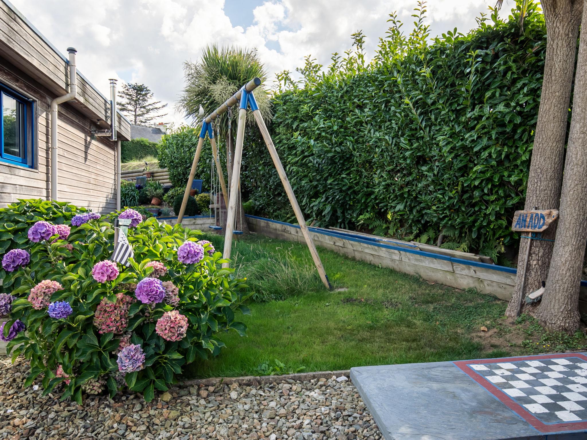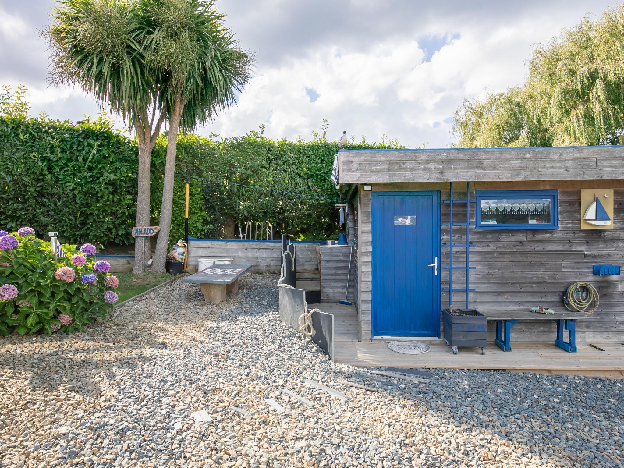 Holzhaus "Ty Glas". 4 km vom Zentrum von Plouézoc'h, 10 km vom Zentrum von Plougasnou, 15 km vom Zentrum von Morlaix, erhöhte Lage, 50 m vom Meer, 1 km vom Strand, in einer Sackgasse. Zur Alleinbenutzung: Grundstück 700 m2, gepflegter Garten (nicht eingezäunt) mit Rasen und Pflanzen. 150 m lange schmale Zufahrt bis zum Haus. Parkplatz. Einkaufsgeschäft 4.2 km, Lebensmittelgeschäft 4.5 km, Supermarkt 4 km, Restaurant 4 km, Bäckerei 4 km, Café 4 km, Bushaltestelle 1.1 km, Sandstrand 1 km, Tauchzentrum 220 m, Hallenbad 15 km. Jacht-Hafen 4 km, Golfplatz (9 Loch) 29 km, Segelschule 4 km, Wanderwege ab Haus 150 m. Nahe gelegene Sehenswürdigkeiten: Cairn de Barnenez 400 m, Plougasnou 9 km, Locquirec 20 km, Morlaix 17 km, Roscoff 40 km, Ploumanac'h, Côte du Granit Rose 50 km. Wandergebiete: GR34, sentier des douaniers 230 m.