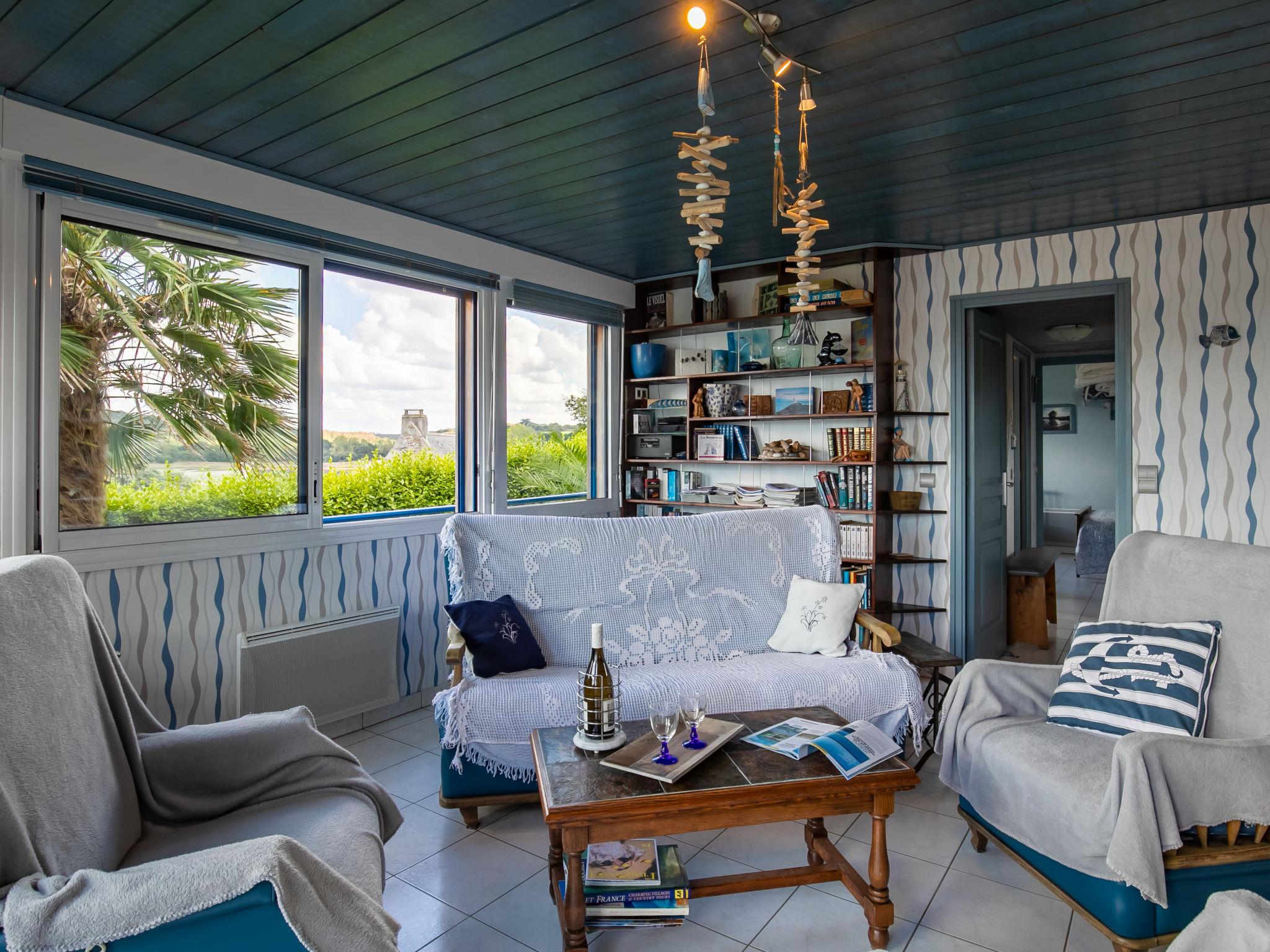 "Ty Glas", 3-Zimmer-Haus 90 m2. Schön und gemütlich eingerichtet: Wohn-/Esszimmer mit Esstisch, TV und CD. Ausgang zur Terrasse. 1 Zimmer mit 1 franz. Bett (140 cm, Länge 190 cm). Ausgang zur Terrasse. 1 kleines Zimmer mit 1 franz. Bett (140 cm, Länge 190 cm). Offene Küche (1 Kochplatte, Backofen, 3 Flammen, Toaster, Wasserkocher, Mikrowelle, Tiefkühler, elektrische Kaffeemaschine). Dusche, sep. WC, Doppelwaschbecken. E-Heizung. 3 Terrassen. Terrassenmöbel, Gartengrill, Liegestühle (2). Schöne Sicht auf das Meer und und auf die Halbinsel von Térénez. Zur Verfügung: Waschmaschine, Wäschetrockner, Babybett bis 2 Jahre. Internet (Wireless LAN, gratis). Bitte beachten: Nichtraucher-Haus. Rauchmelder. PZH201