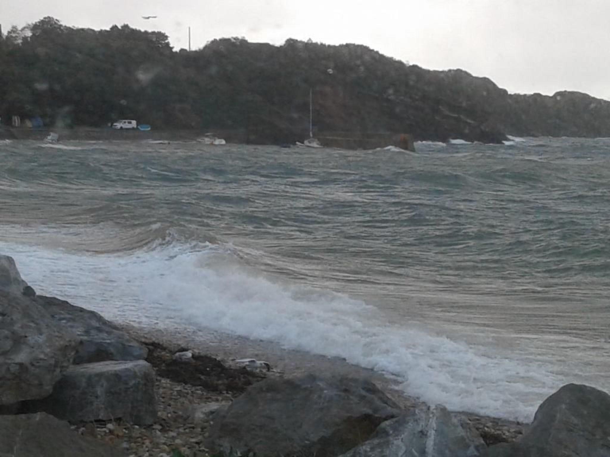 Kieselstrand in 400 m Entfernung mit kleinem Hafen.