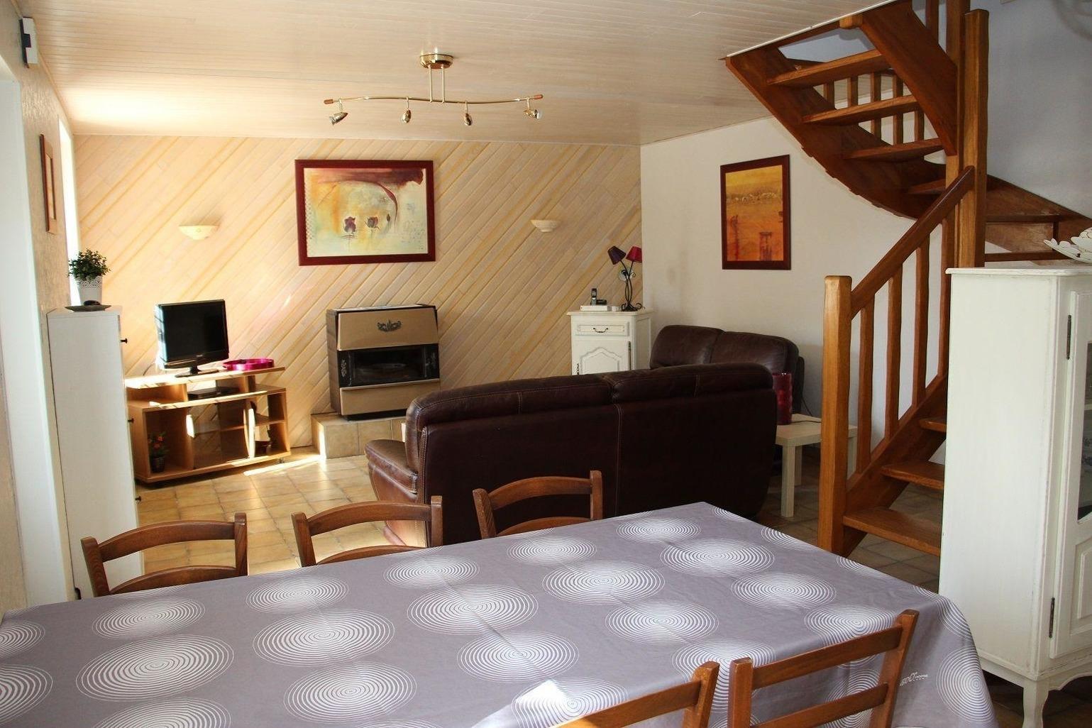 Im Obergeschoss sind 2 Schlafzimmern mit jeweils einen französischen Bett und Schränke, sowie ein Badezimmer mit einer moderne Dusche. Ein Hochstuhl ist auf Anfrage erhältlich. Im Wohnzimmer bieten wir Ihnen TV, DVD-Player, Telefon für Ortsgespräche und WIFI. Im Obergeschoss die beiden Schlafzimmer mit 140 cm Betten und Lagerung d'armoires ausgestattet sind, ein Kinderbett auf Anfrage erhältlich ist, oder einer Liege für 1 Kind unter 10 Jahren ist auch 5 Personen und möglicherweise 1 BB. Die Dusche mit voller Dusche ist von der Toilette getrennt. Bei schönem Wetter können Sie die Gartenmöbel auf der Terrasse mit zwei Stühlen und einem Grill für Ihren Grill genießen.