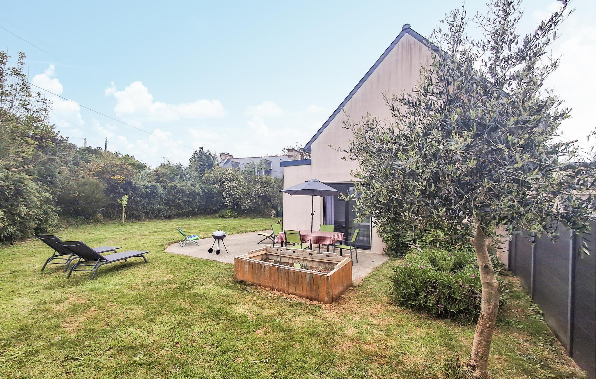 Erleben Sie entspannte Ferientage in diesem Ferienhaus mit Garten und schöner Einrichtung.