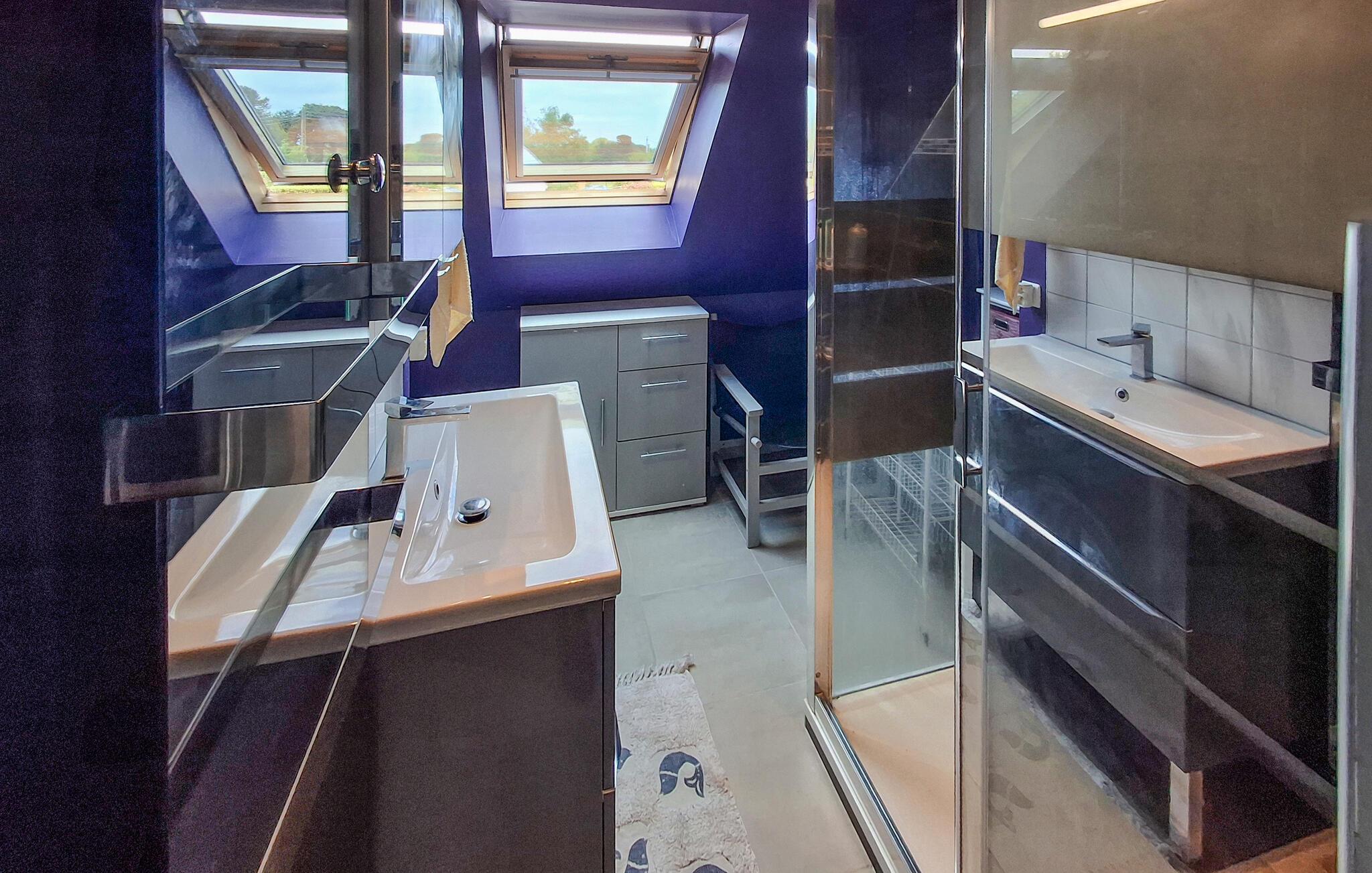 Genießen Sie Ihren Aufenthalt in diesem gepflegten Ferienhaus. Hier finden Sie den idealen Rahmen für gemeinsame Stunden mit der Familie oder Freunden nahe der bretonischen Küste. Fühlen Sie sich wohl in dem ansprechend gestalteten Wohnbereich. Entspannen Sie auf dem großen Ecksofa, das zum Verweilen einlädt. Nehmen Sie Ihre Mahlzeiten am Esstisch mit massiven Holzstühlen ein und nutzen Sie die helle, moderne Küche mit praktischer Arbeitsfläche. Profitieren Sie von der offenen Raumaufteilung, die Küche, Essplatz und Wohnzimmer harmonisch miteinander verbindet.