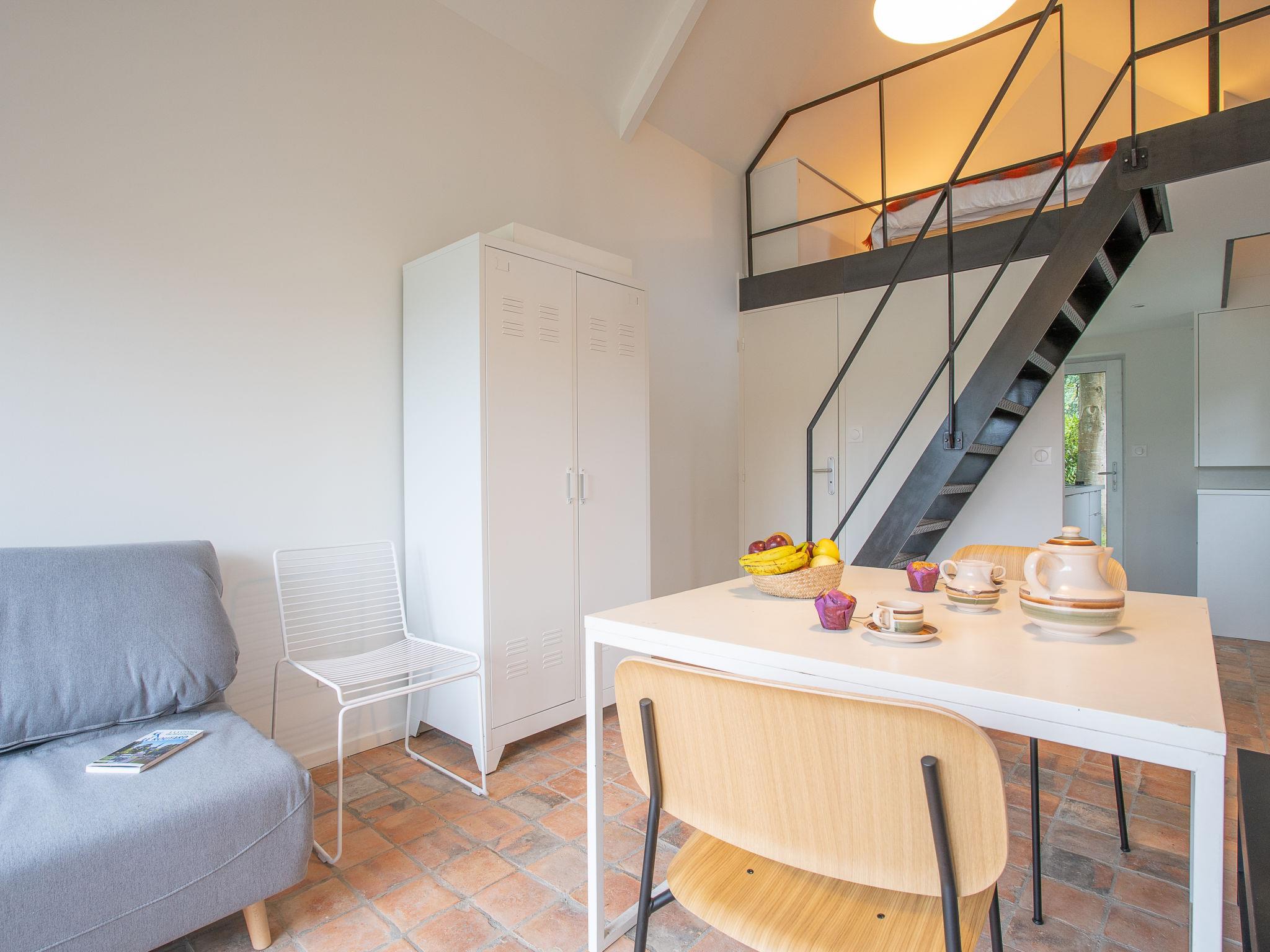 "Dolce Vita duplex", 1-Zimmer-Studio 30 m2. Zweckmässig und gemütlich eingerichtet: kleines Wohn-/Esszimmer mit 1 Diwanbett (110 cm, Länge 190 cm), TV (Flachbildschirm). Kleine, offene Küche im Eingang (2 Glaskeramikplatten, Toaster, Wasserkocher, elektrische Kaffeemaschine, Kapseln für die Kaffeemaschine (Malongo) extra). Ausgang zum Gartensitzplatz. Dusche/WC. E-Heizung. Obergeschoss: (steile Treppe) abgeschrägte, offene Schlafnische, Deckenhöhe 100 cm, ohne Fenster mit 1 franz. Bett (140 cm, Länge 190 cm). Kleiner Gartensitzplatz 20 m2. Terrassenmöbel. Zur Verfügung: Waschmaschine, Wäschetrockner. Internet (Wireless LAN, gratis). Bitte beachten: für Kleinkinder nicht geeignet. Nichtraucher-Haus. Rauchmelder. Anstelle eines abgeschlossenen Schlafzimmers befinden sich manche Schlafplätze in einem offenen Bereich (Galerie, Nische etc.). Inserat einer Privatperson nach Artikel 155, IV, CGI.