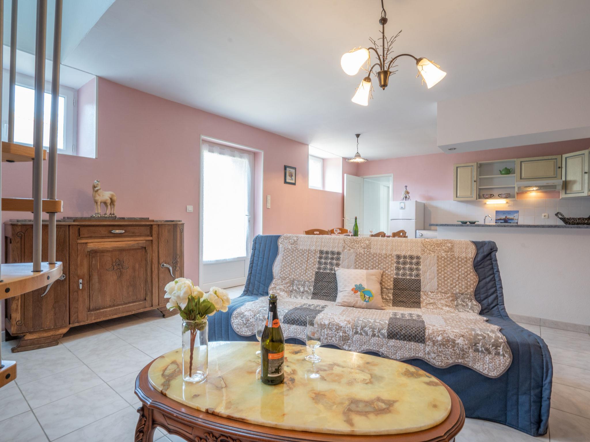"Les Azalées", 2-Zimmer-Haus 55 m2 auf 2 Stockwerken. Objekt geeignet für 3 Erwachsene + 1 Kind. Teilweise abgeschrägt, rustikal und gemütlich eingerichtet: Wohn-/Schlafzimmer mit 1 Doppeldiwanbett (140 cm, Länge 190 cm), TV und Radio. Ausgang zum Garten. Offene Küche (Geschirrspüler, 4 Flammen, Toaster, Wasserkocher, Tiefkühler, elektrische Kaffeemaschine, Kombinationsmikrowelle) mit kleiner Bar, Esstisch. Bad/WC. Dachgeschoss: (Wendeltreppe) abgeschrägte, offene Galerie mit Dachfenster. 1 abgeschrägtes Zimmer mit Dachfenster mit 1 Bett (90 cm, Länge 190 cm), 1 franz. Bett (140 cm, Länge 190 cm). Sep. WC. E-Heizung. Gartensitzplatz. Terrassenmöbel, Gartengrill (mobil), Liegestühle (2). Zur Verfügung: Waschmaschine, Bügeleisen. Internet (WLAN, gratis). Parkplatz (1 Auto). Bitte beachten: Nichtraucher-Haus. Maximal 1 Haustier/Hund erlaubt. Rauchmelder. Anstelle eines abgeschlossenen Schlafzimmers befinden sich manche Schlafplätze in einem offenen Bereich (Galerie, Nische etc.).