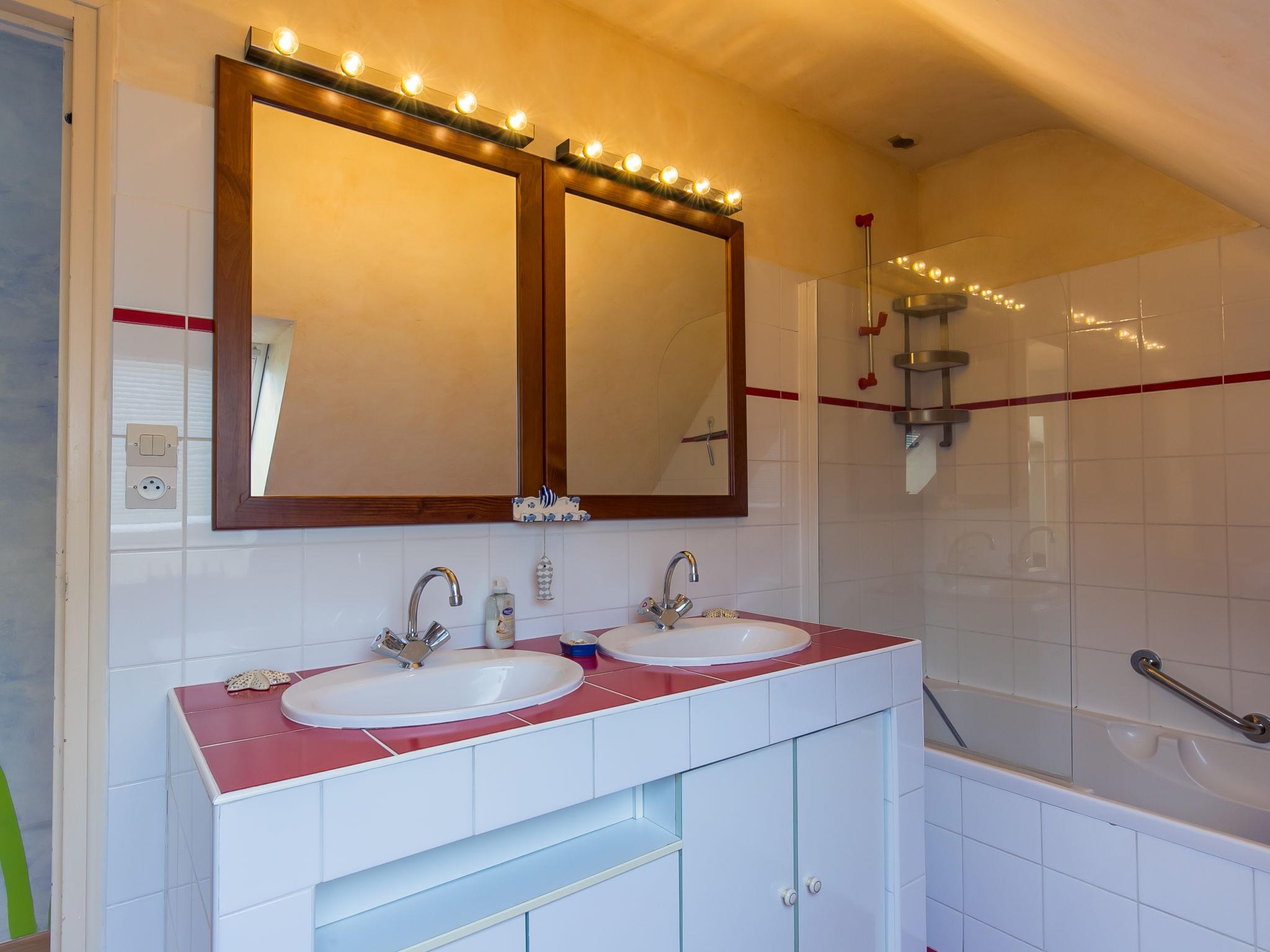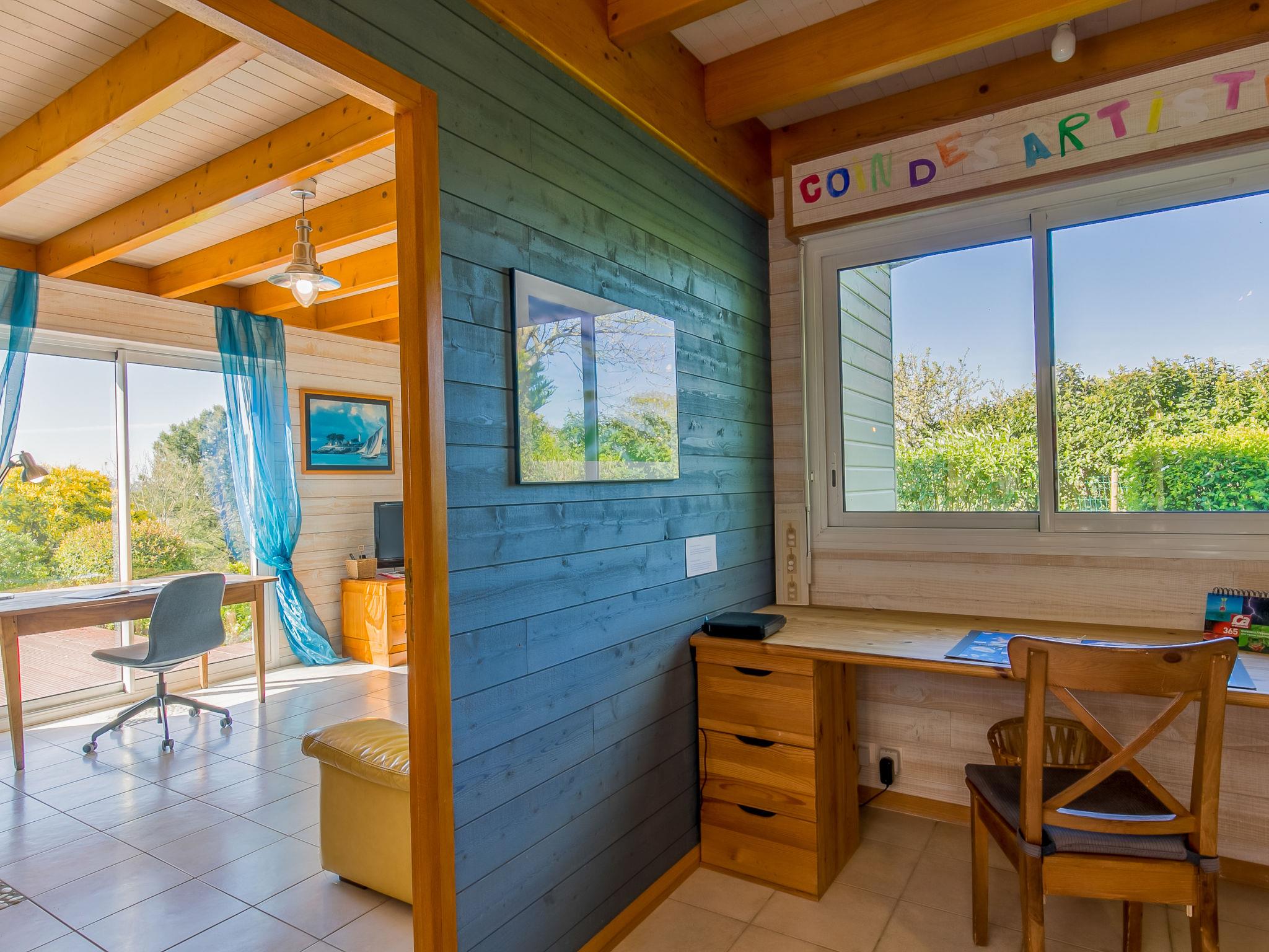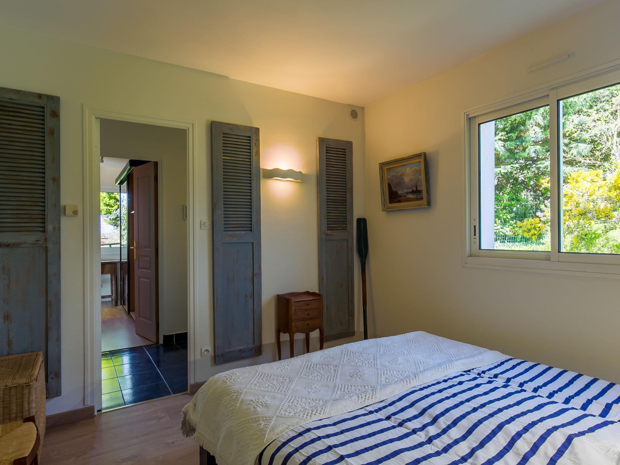 "Villa Panorama Mer", 7-Zimmer-Haus 180 m2 auf 2 Stockwerken. Hell, komfortabel und geschmackvoll eingerichtet: grosses Wohn-/Esszimmer mit Schiebetür mit Schwedenofen und Esstisch. Ausgang zur Terrasse. Wohnzimmer mit TV, Stereoanlage, DVD und DVD Sammlung vorhanden. Ausgang zur Terrasse. Büro. 1 Zimmer mit begehbarem Kleiderschrank mit 1 franz. Bett (160 cm, Länge 200 cm), Dusche. Offene Küche (Backofen, Geschirrspüler, 3 Glaskeramikplatten, Toaster, Wasserkocher, Mikrowelle, Tiefkühler, elektrische Kaffeemaschine). Ausgang zur Terrasse. Sep. WC. Fussbodenheizung. Obergeschoss: 1 abgeschrägtes Zimmer mit 1 franz. Bett (160 cm, Länge 200 cm). 2 abgeschrägte Zimmer, jedes Zimmer mit 1 franz. Bett (140 cm, Länge 190 cm). 1 abgeschrägtes Zimmer mit 2 Betten (90 cm, Länge 190 cm). Bad, sep. WC, Doppelwaschbecken. E-Heizung. Terrasse. Terrassenmöbel, Gartengrill (mobil), Liegestühle (2). Sicht auf das Meer. Zur Verfügung: Waschmaschine, Bügeleisen, Kinderhochstuhl, Babybett. Internet (WLAN, gratis). Bitte beachten: Nichtraucher-Haus. Maximal 2 Haustiere/Hunde erlaubt. Rauchmelder.