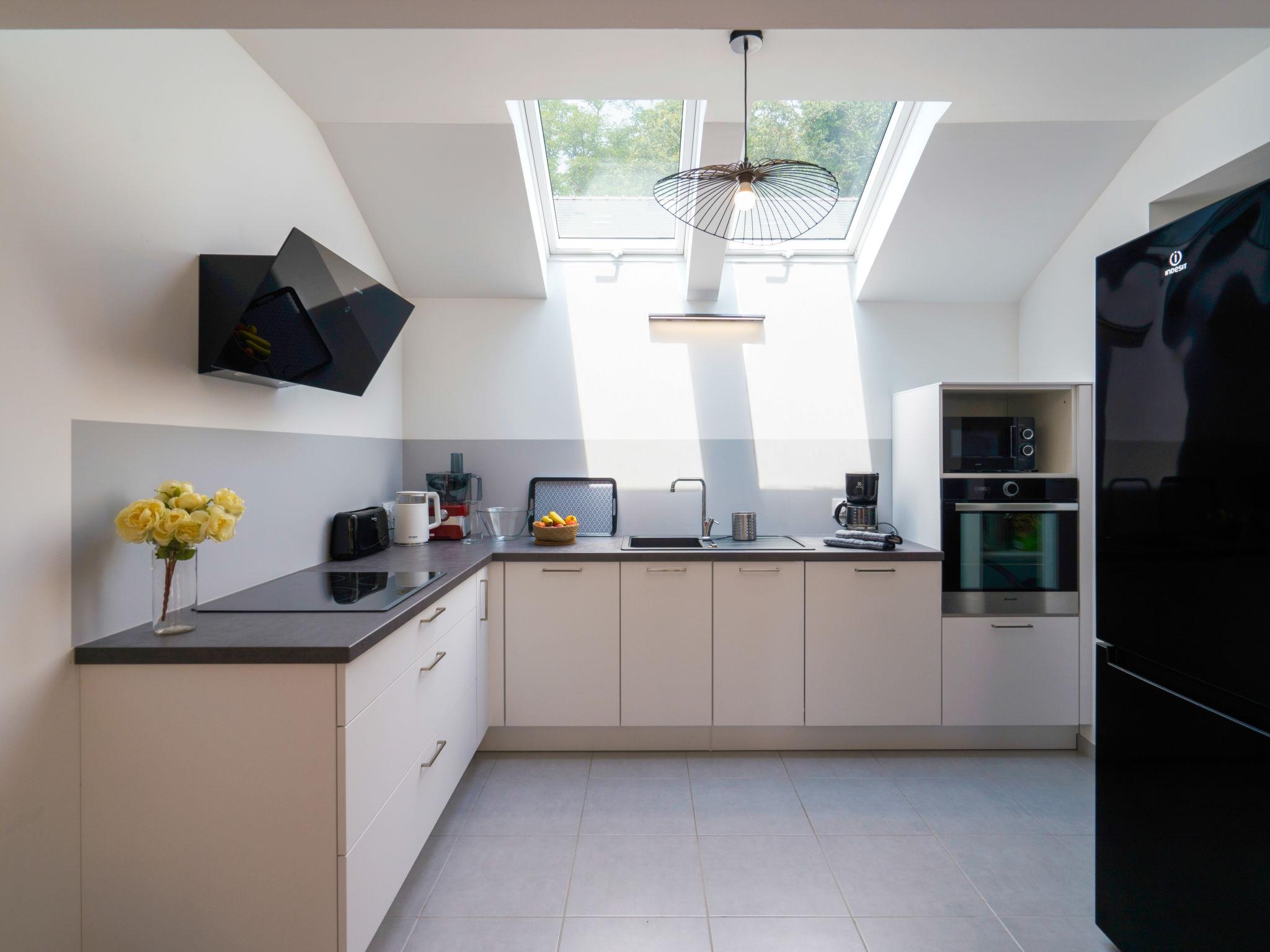 Gemütliches Einfamilienhaus "Penhors", renoviert im Jahre 2022, umgeben von Bäumen und Feldern. Am Ortsrand, 4 km vom Zentrum von Plovan, 4 km vom Meer, 4 km vom Strand, 20 m vom Bach. Zur Mitbenutzung: naturbelassenes Grundstück 2 ha, Rasen. Zur Alleinbenutzung: Garten 1'100 m2 (nicht eingezäunt) Rasen, Parkplatz (für 2 Autos) auf dem Grundstück. Lebensmittelgeschäft 6 km, Supermarkt 3 km, Restaurant 4 km, Bushaltestelle 4 km, Sandstrand 4 km. Surfschule 4 km. Nahe gelegene Sehenswürdigkeiten: Penmarc'h, La Torche 19 km, Pont l'Abbé 12 km, Audierne 23 km, Quimper 26 km, Douarnenez 19 km, pointe du Raz 35 km. Wandergebiete: GR 34, Baie d'Audierne, Cap Sizun. Bitte beachten: Ferienwohnung Ref. FR2948.601.1 befindet sich auf dem gleichen Grundstück.