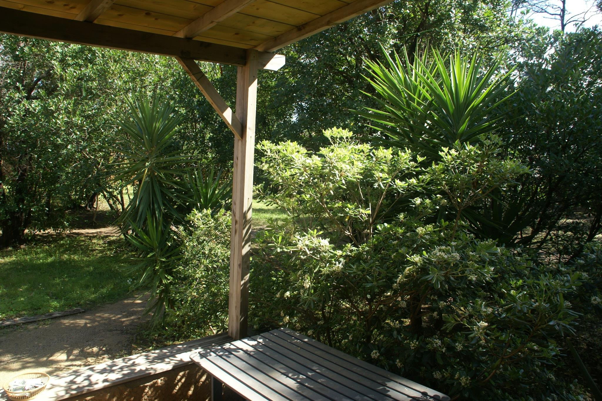Parterre: (Wohnzimmer(Doppelschlafcouch, Hochstuhl), offene Küche(Kaffeemaschine, Mikrowelle, Kühl-/Gefrierkombination), Badezimmer(Dusche, Waschbecken, Toilette)) Zwischengeschoss: (Schlafzimmer(Einzelbett, Einzelbett)) TV, Spülmaschine, Dusche, Waschmaschine(Gemeinschaftliche Nutzung mit anderen Gästen), Heizung(elektrisch), Klimaanlage, Terrasse(alleinige Nutzung), Garten, Gartenmöbel, Grill, Parkplatz, Trampolin, Pool(Gemeinschaftliche Nutzung mit anderen Gästen, erwärmt), Boulebahn, Kinderbett