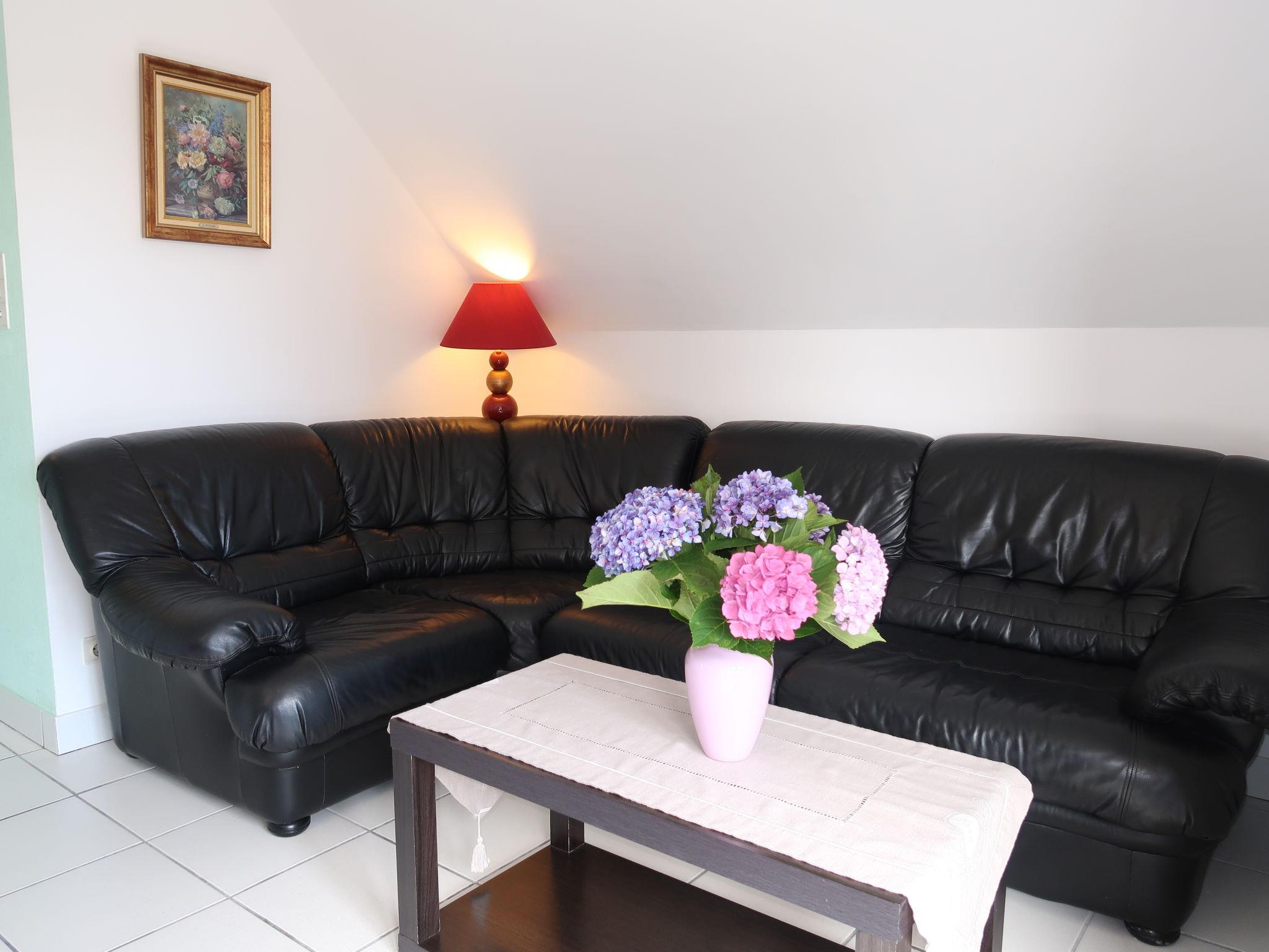 "Camélia", 3-Zimmer-Wohnung 50 m2 im 1. Stock. Zweckmässig eingerichtet: abgeschrägtes Wohn-/Esszimmer mit Esstisch und Sat-TV. 1 abgeschrägtes Zimmer mit 1 franz. Bett (140 cm, Länge 190 cm). 1 abgeschrägtes Zimmer mit 2 Betten (90 cm, Länge 190 cm). Kleine, offene Küche (1 Kochplatte, Backofen, Geschirrspüler, 3 Flammen, Toaster, Wasserkocher, Mikrowelle, elektrische Kaffeemaschine). Dusche, sep. WC. E-Heizung. Terrasse. Terrassenmöbel, Gartengrill (mobil), Liegestühle (2). Zur Verfügung: Waschmaschine, Babybett. Internet (Wireless LAN, gratis). Bitte beachten: Nichtraucher-Unterkunft. Eigener Eingang, Rauchmelder.