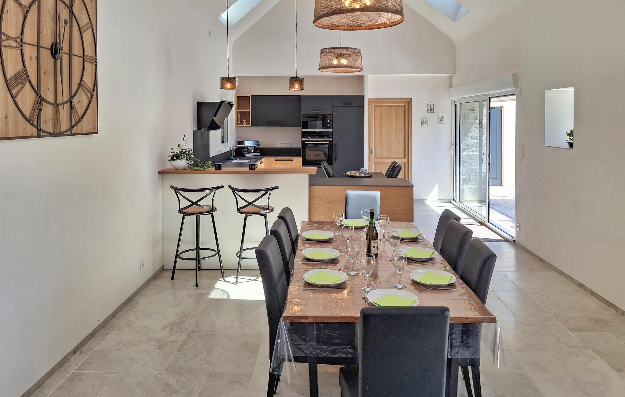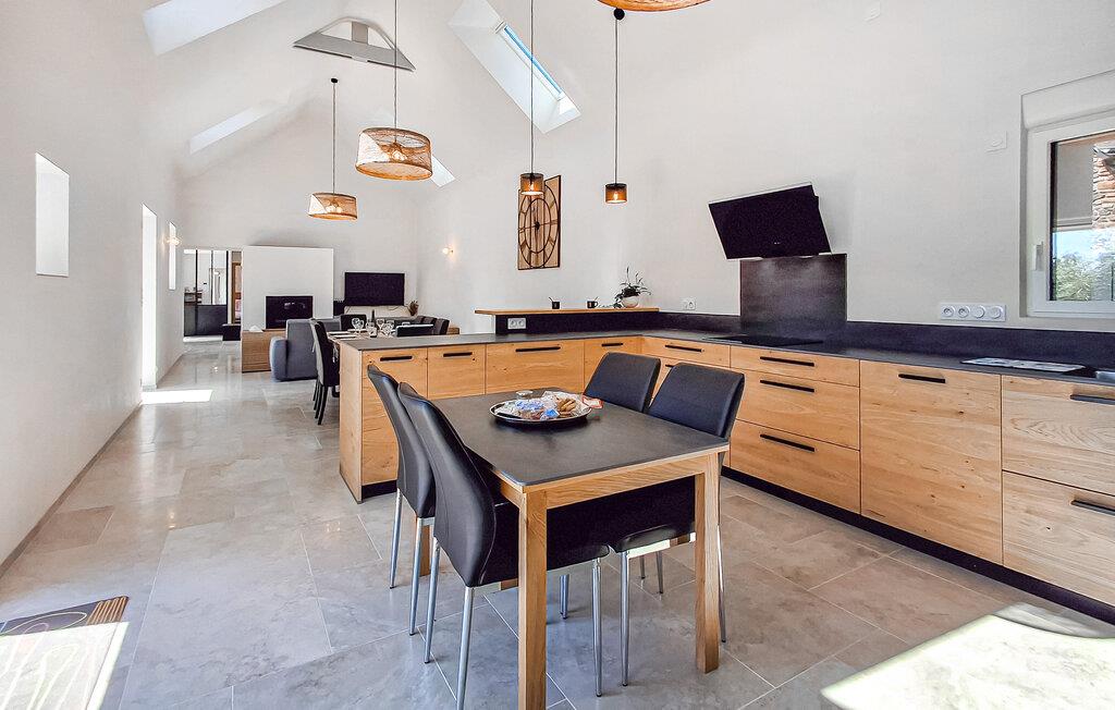 Dieses geräumige und stilvoll restaurierte Ferienhaus begrüßt Sie mit einem hellen und geschmackvoll eingerichteten Interieur und eignet sich ideal für einen entspannten Urlaub mit Familie oder Freunden. Zaubern Sie hier kulinarische Highlights und finden Sie bei geselligen Mahlzeiten zusammen. Machen Sie es sich für fröhliche Spieleabende oder anregende Gespräche im Wohnzimmer gemütlich und lassen Sie an kühleren Tagen den Kamin für zusätzliche Behaglichkeit sorgen.