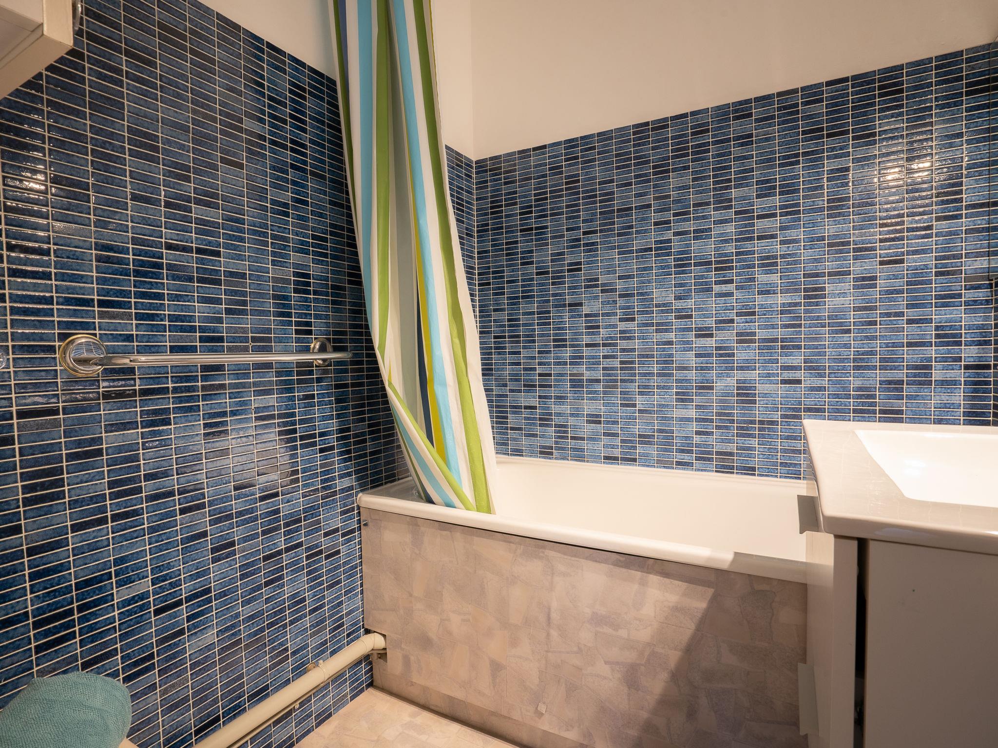 2-Zimmer-Wohnung 27 m2 im 2. Stock. Wohn-/Esszimmer mit 1 franz. Bett (140 cm, Länge 190 cm), TV und Klimaanlage. 1 Zimmer mit Schiebetür mit 1 x 2 Etagenbetten (90 cm, Länge 180 cm). Kleine, offene Küche (3 Kochplatten, Backofen, Mikrowelle). Bad, sep. WC. Terrasse 10 m2, Ostlage. Terrassenmöbel. Zur Verfügung: Internet (Wireless LAN, extra). Bitte beachten: Rauchmelder.