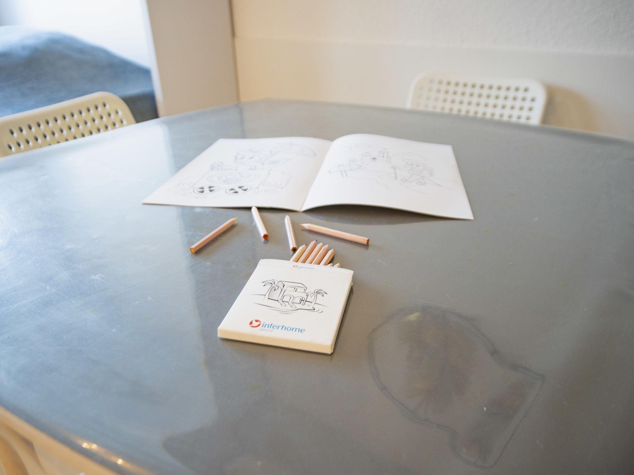 1-Zimmer-Studio 21 m2 im 2. Stock. Objekt geeignet für 2 Erwachsene + 2 Kinder. Wohn-/Esszimmer mit 1 Wandschrankbett (160 cm, Länge 190 cm), Esstisch und TV (Flachbildschirm). Ausgang zum Balkon. Kabine mit 1 x 2 Etagenbetten (90 cm, Länge 190 cm), Dusche/WC. Offene Küche (Mini-Backofen, Backofen, 2 Glaskeramikplatten, Toaster, Wasserkocher, Mikrowelle, elektrische Kaffeemaschine). E-Heizung, Klimaanlage. Balkon 5 m2. Zur Verfügung: Internet (Wireless LAN, gratis). Parkplatz Nr. 477 (1 Auto). Bitte beachten: Nichtraucher-Unterkunft. Rauchmelder, kein Fahrstuhl. Inserat einer Privatperson nach Artikel 155, IV, CGI. 3013300102375