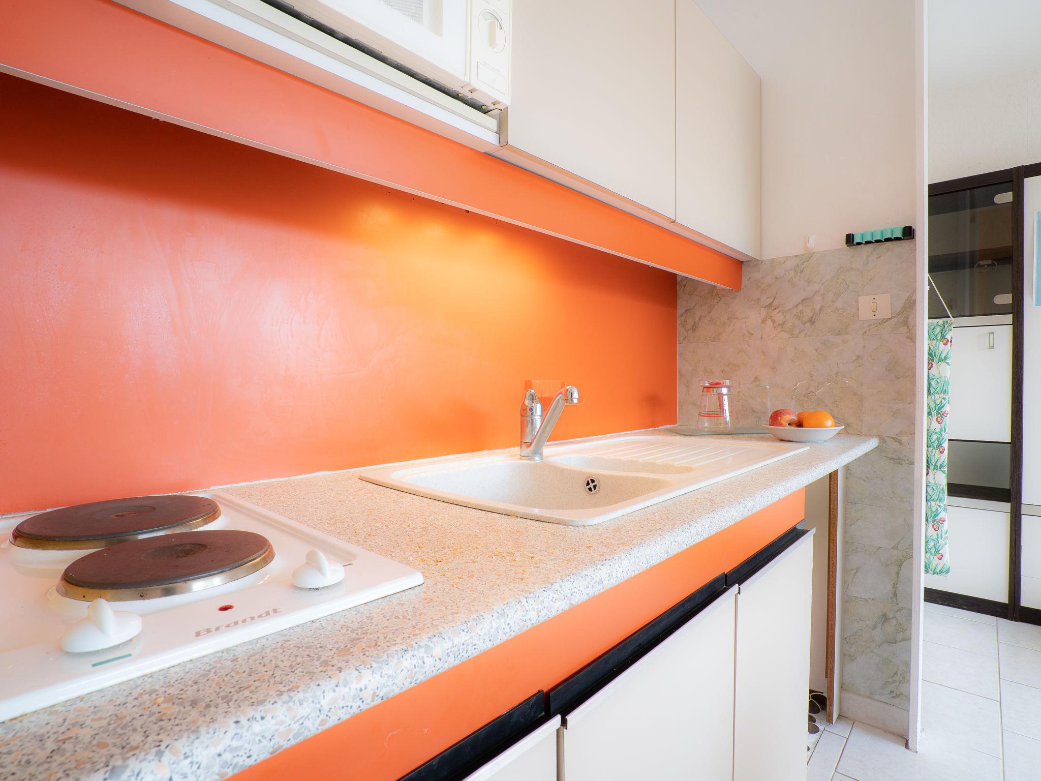 1-Zimmer-Studio 27 m2 im 1. Stock. Wohn-/Esszimmer mit 1 Doppeldiwanbett (140 cm, Länge 190 cm), 1 x 2 Etagenbetten (80 cm, Länge 190 cm), TV. Kochnische (2 Kochplatten, Backofen, Mikrowelle). Bad/WC. Terrasse 8 m2, Nordostlage. Terrassenmöbel. Zur Verfügung: Internet (WLAN, extra). Bitte beachten: Wohnung auf Parkplatzseite. Maximal 1 Haustier/Hund erlaubt. Rauchmelder. Inserat einer Privatperson nach Artikel 155, IV, CGI.