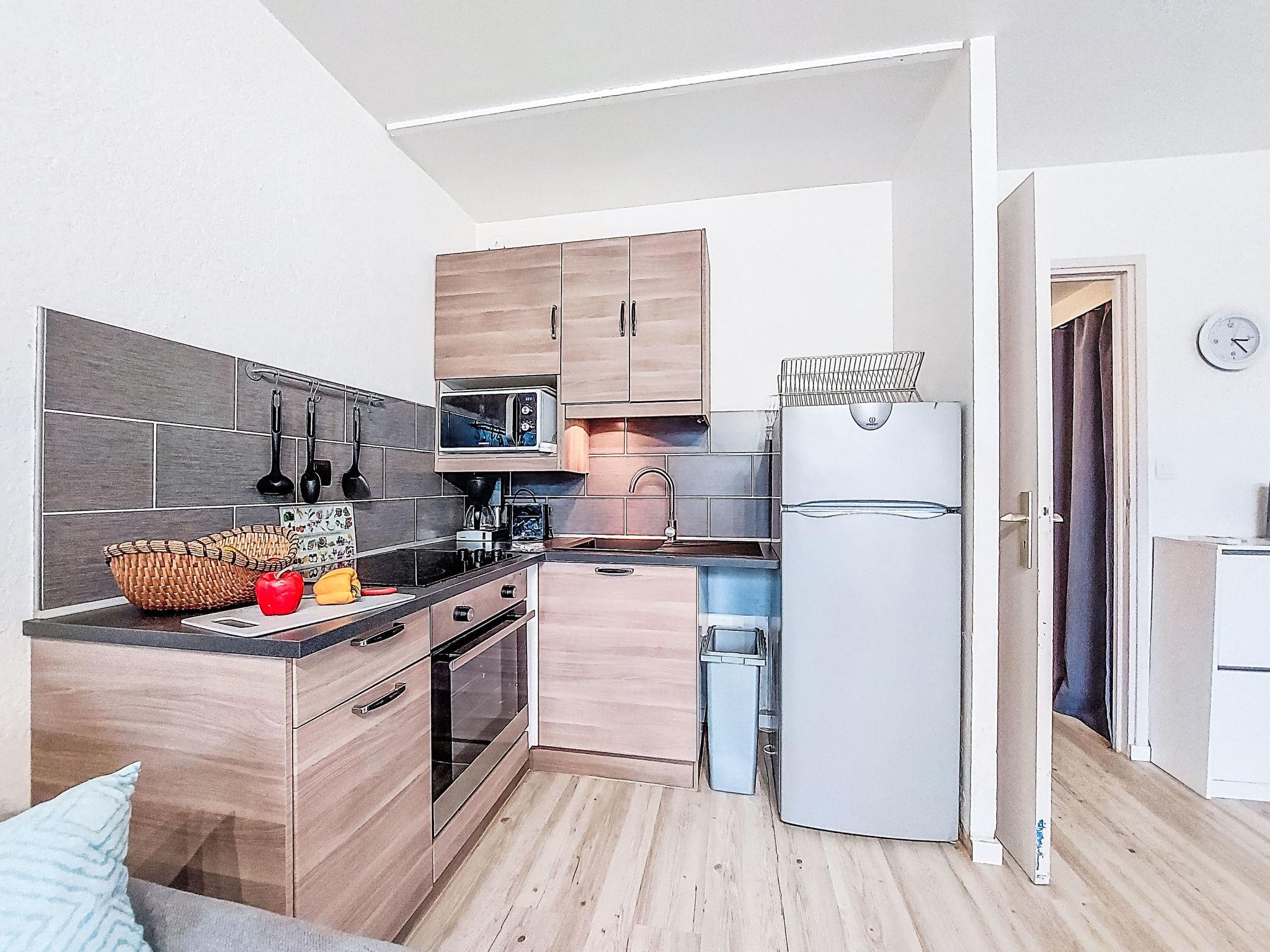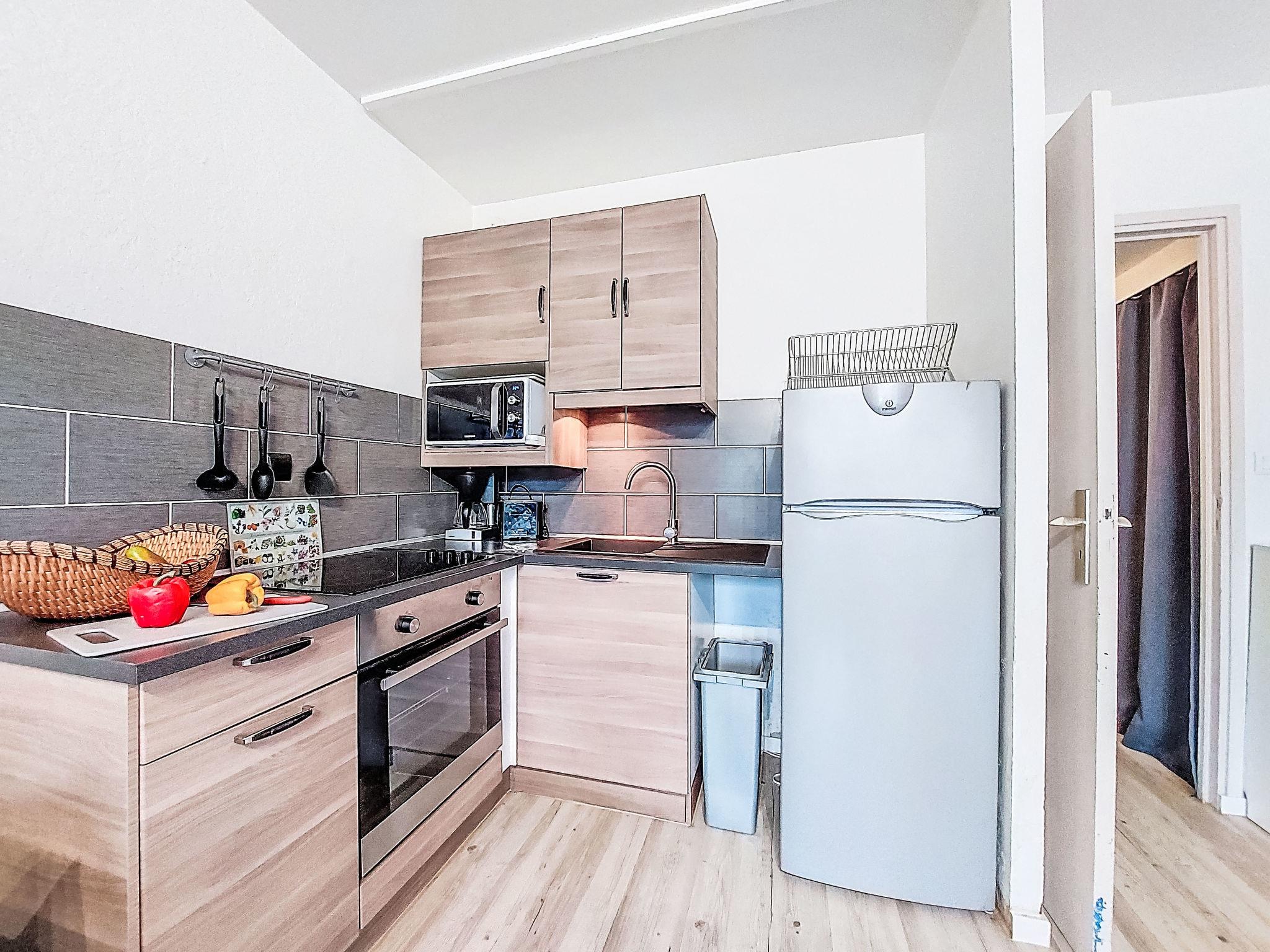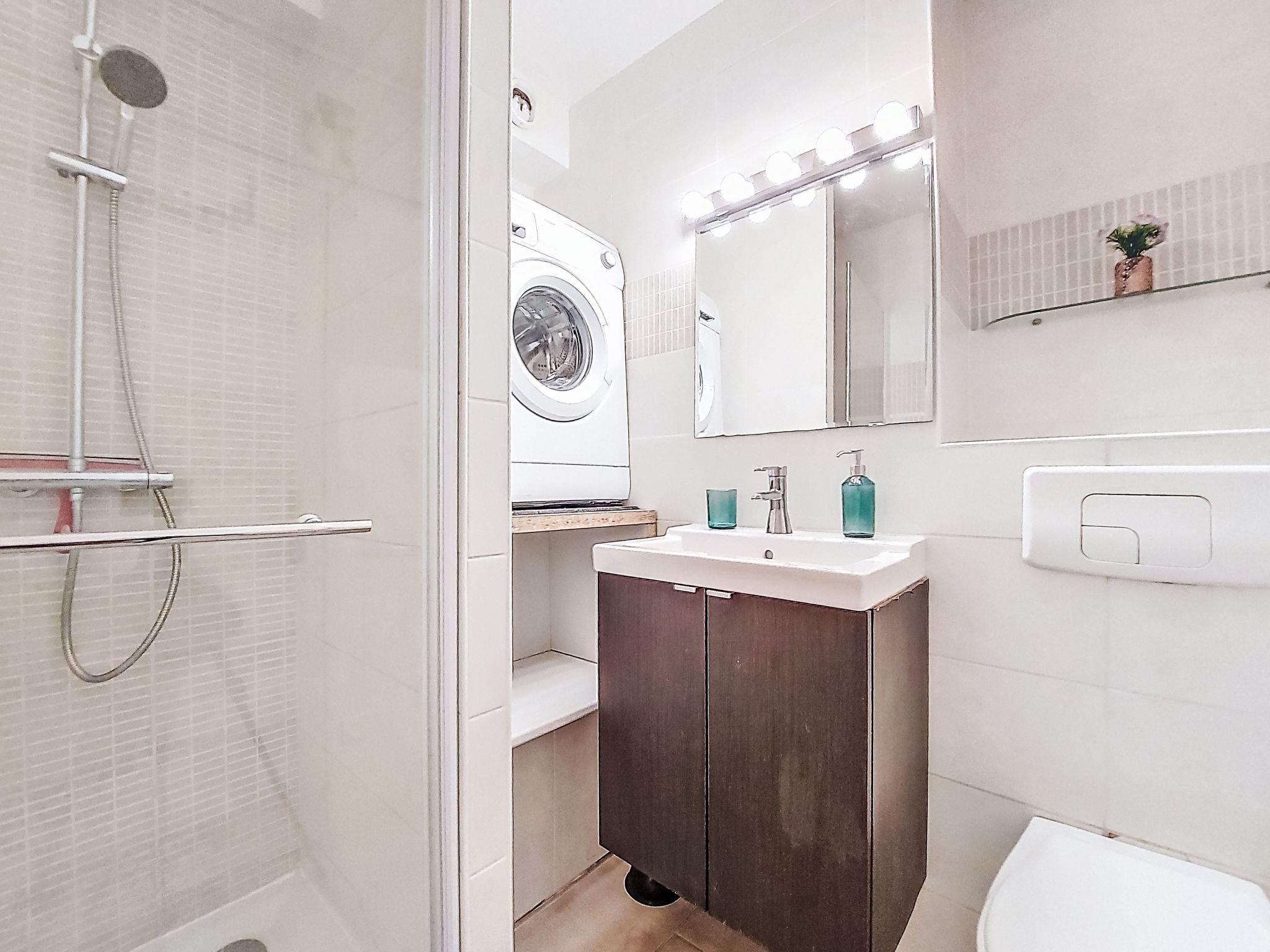 1-Zimmer-Studio 28 m2, im Erdgeschoss. Wohn-/Esszimmer mit 2 Doppeldiwanbetten (140 cm, Länge 190 cm), Klimaanlage. Kochnische (Backofen, 3 Glaskeramikplatten, Toaster, Wasserkocher, Mikrowelle, elektrische Kaffeemaschine). Bad, Dusche/WC. Loggia. Zur Verfügung: Waschmaschine. Internet (WLAN, gratis). Parkplatz Nr. EN COMMUN. Bitte beachten: Wohnung auf Parkplatzseite. Maximal 1 Haustier/Hund erlaubt. Rauchmelder.