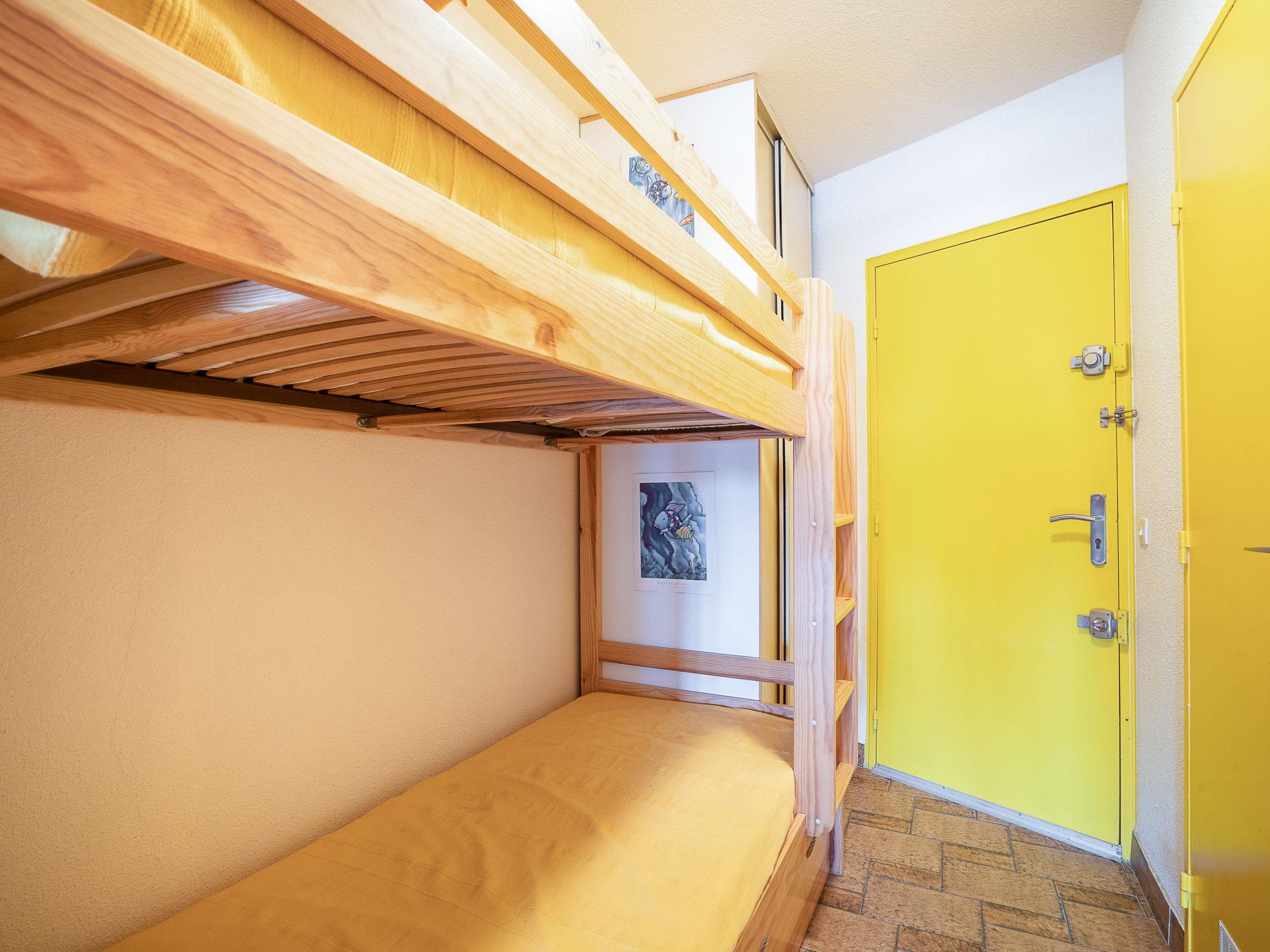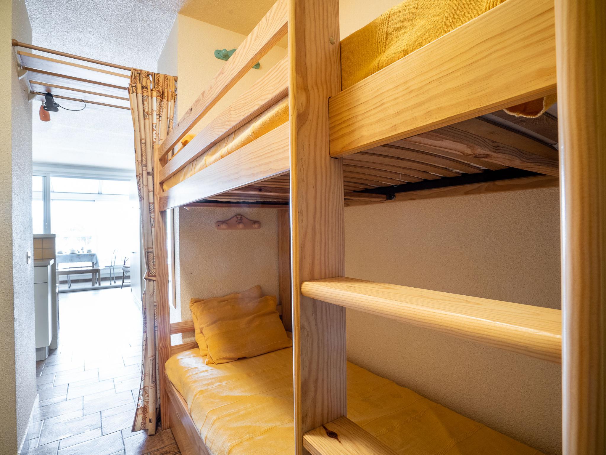 1-Zimmer-Studio 27 m2 im 1. Stock. Objekt geeignet für 2 Erwachsene + 2 Kinder. Wohn-/Esszimmer mit 1 Wandschrankbett (140 cm, Länge 190 cm), TV (Flachbildschirm). Kabine mit 1 x 2 Etagenbetten (90 cm, Länge 190 cm). Kochnische (Mini-Backofen, Backofen, 2 Glaskeramikplatten, Mikrowelle, Tiefkühler, elektrische Kaffeemaschine). Dusche/WC. Terrassenmöbel, Loggia. Sicht auf den Hafen. Zur Verfügung: Waschmaschine. Internet (Wireless LAN, extra). Bitte beachten: kein Parkplatz. Rauchmelder. Anstelle eines abgeschlossenen Schlafzimmers befinden sich manche Schlafplätze in einem offenen Bereich (Galerie, Nische etc.).