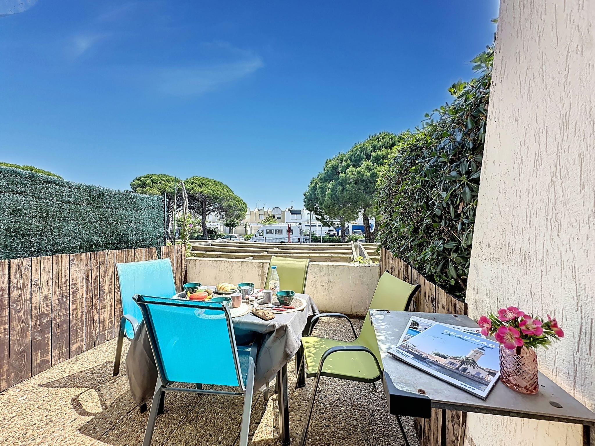 Residenz "Le Quai aux Fleurs". Im Ortsteil Plage Sud, 500 m vom Meer, 500 m vom Strand. Zur Mitbenutzung: Schwimmbad rund (80 - 240 cm tief, saisonale Verfügbarkeit: 15.Jun. - 15.Sep.). Kinderbecken, Grill, Parkplatz (beschränkte Anzahl), öffentliche Parkplätze 150 m. Lebensmittelgeschäft 400 m, Supermarkt 3 km, Restaurant 400 m, Bushaltestelle "Quai aux Fleurs" 10 m, Bahnstation 3.5 km, Sandstrand 450 m, Thermalbad "Thalazur" 800 m. Sporthafen 500 m, Jacht-Hafen 30 m, Segelschule 2 km, Tennis 1.5 km. Nahe gelegene Sehenswürdigkeiten: Casino Flamingo 2 km, Seaquarium 2 km, les arènes du Grau du Roi 3 km, Aigues-Mortes 10 km, La grande Motte 15 km, Nîmes 52 km. Wandergebiete: La réserve naturelle de Camargue. Bitte beachten: Die Schlüsselübergabe findet bei der Agentur Interhome in Port Camargue statt. Flugplatz 24 km vom Haus.