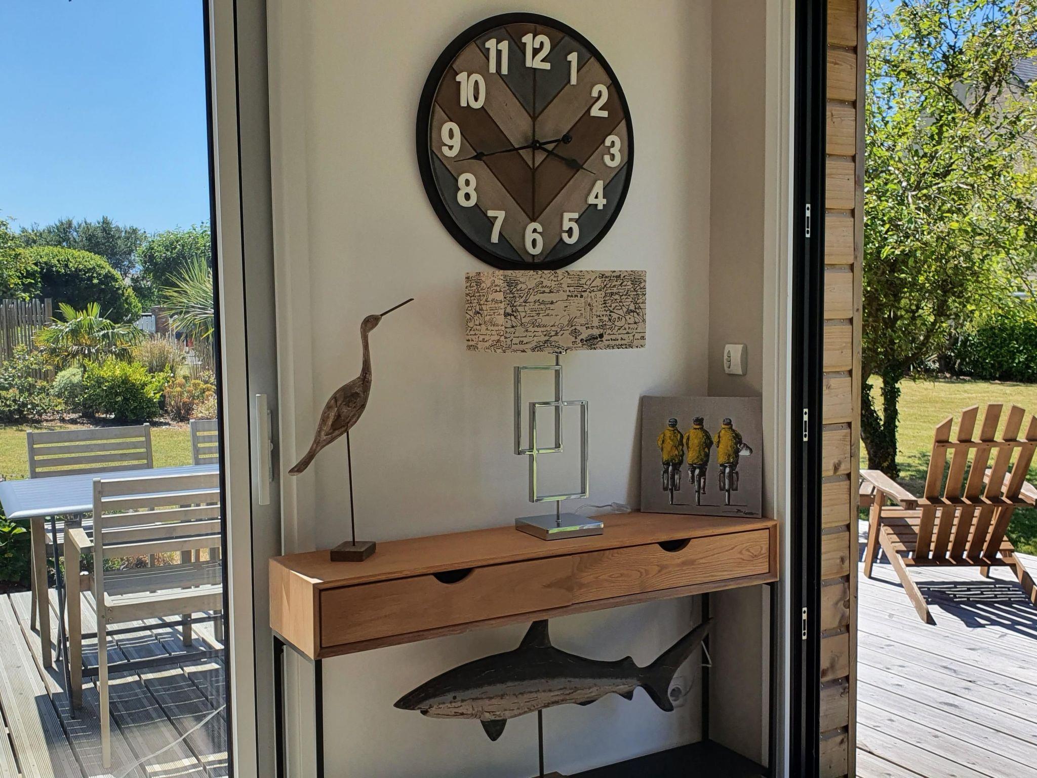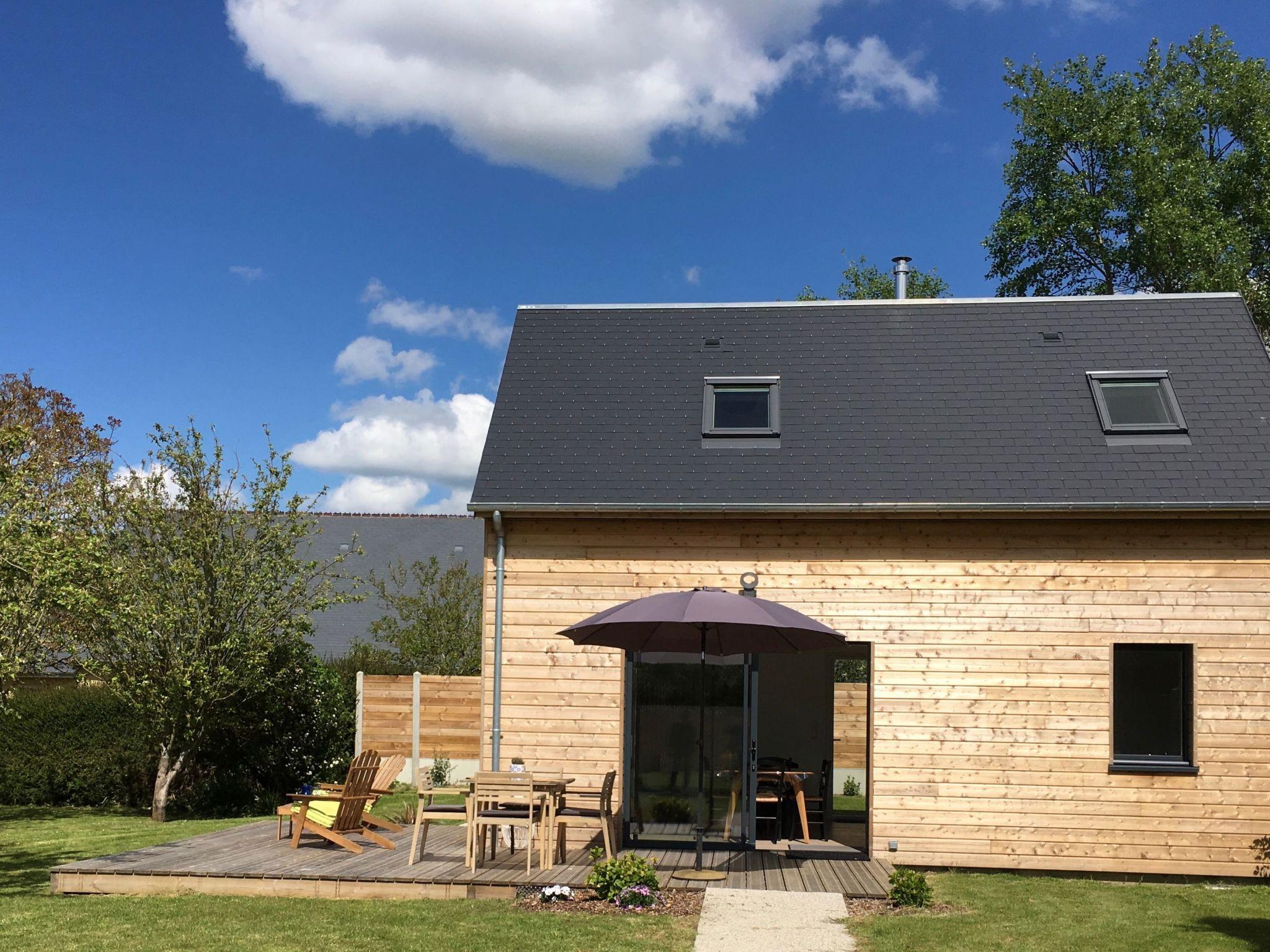 Dieses charmante Holzhaus und sein schöner grüner Garten befinden sich in der kleinen Küstenstadt Portbail-sur-Mer mit ihren Geschäften, Restaurants und dem kleinen Yachthafen.