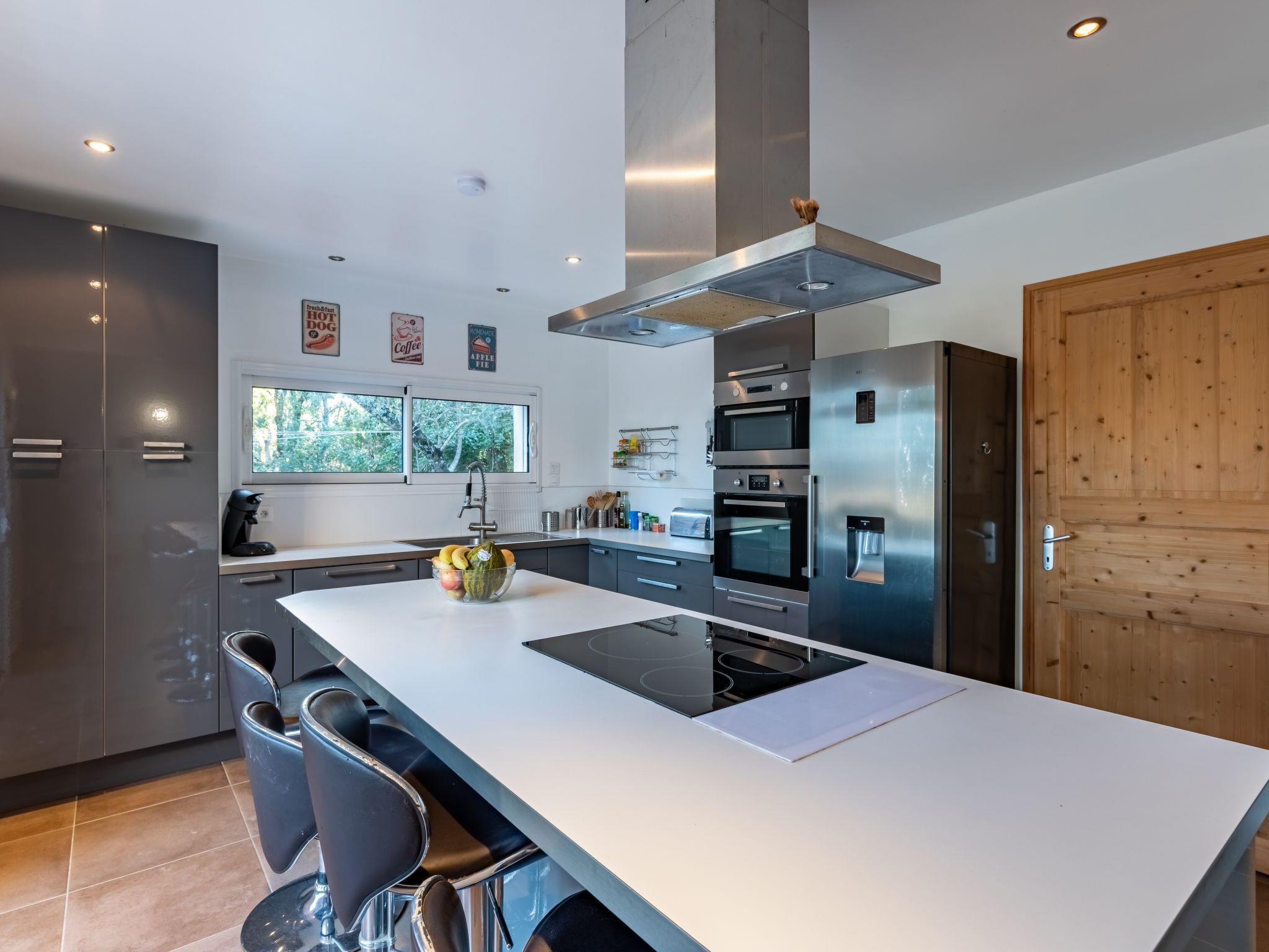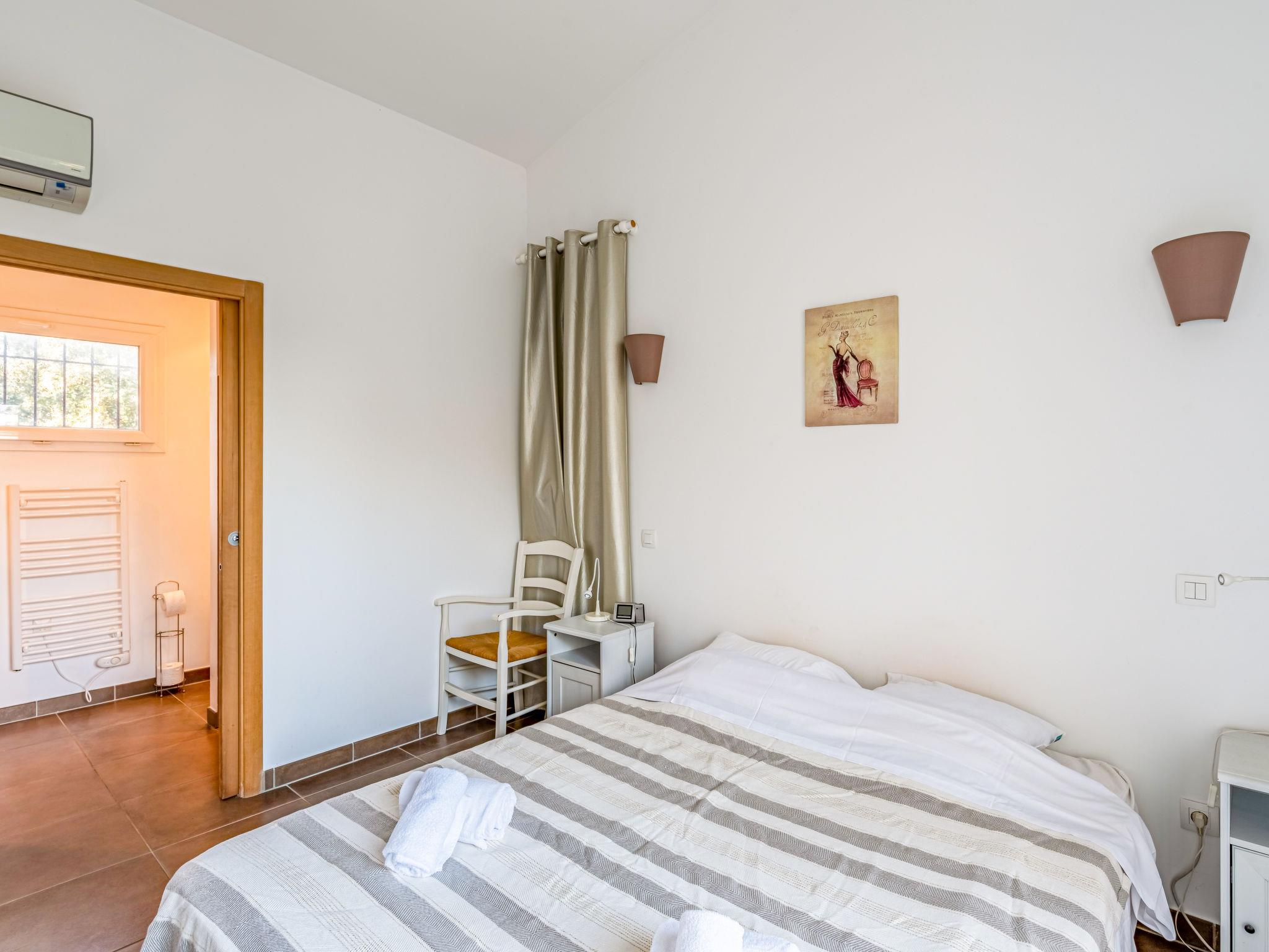 4-Zimmer-Haus 130 m2 auf 2 Stockwerken. Geräumig: grosses Wohn-/Esszimmer mit 1 Doppeldiwanbett (160 cm, Länge 190 cm), offenem Kamin (nur Deko), TV (Flachbildschirm), Klimaanlage. Ausgang zur Terrasse. 1 Zimmer mit 1 franz. Bett (160 cm, Länge 190 cm), Dusche/WC und TV (Flachbildschirm), Klimaanlage. Offene Küche (Backofen, Geschirrspüler, 4 Induktionskochplatten, Wasserkocher, Mikrowelle, Tiefkühler, elektrische Kaffeemaschine). Ausgang zur Terrasse. Sep. WC. E-Heizung. Unteres Geschoss: 2 Zimmer mit Panoramafenster, jedes Zimmer mit 1 franz. Bett (140 cm, Länge 190 cm), Dusche/WC und TV. Kleiner Balkon, Terrasse 13 m2, Südlage. Terrassenmöbel, Liegestühle (2). Eingeschränkte Sicht auf das Meer. Zur Verfügung: Waschmaschine, Bügeleisen, Haartrockner. Internet (WLAN, gratis). Bitte beachten: Nichtraucher-Unterkunft. Maximal 1 kleines Haustier/Hund erlaubt. Rauchmelder. 2A247001315FA