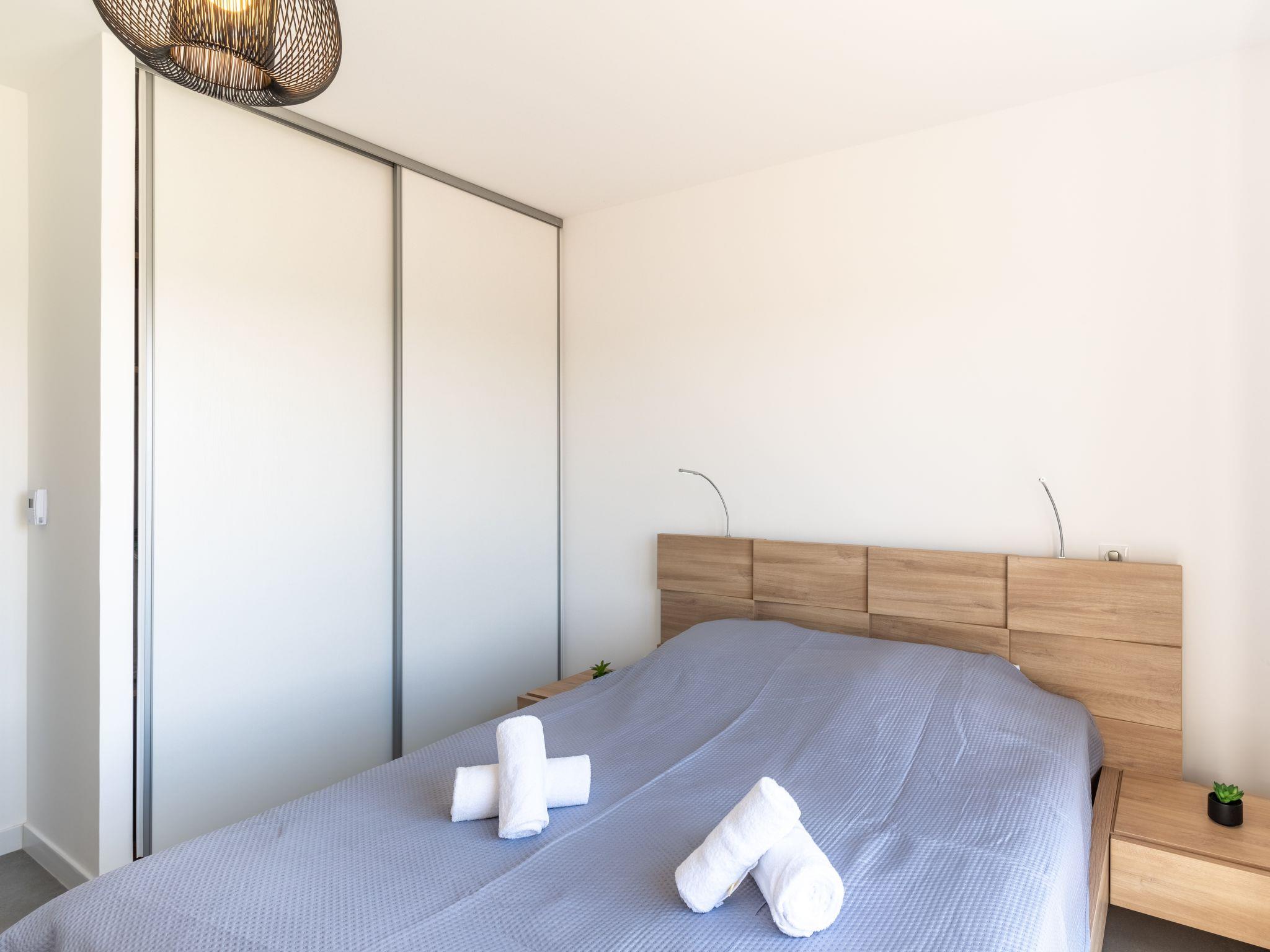 2-Zimmer-Wohnung 51 m2 im 5. Stock. Sehr schön und modern eingerichtet: Wohn-/Esszimmer mit 1 Diwanbett (140 cm, Länge 190 cm), TV (Flachbildschirm). Ausgang zur Terrasse. 1 Zimmer mit 1 franz. Bett (160 cm, Länge 200 cm). Offene Küche (Backofen, Geschirrspüler, 3 Induktionskochplatten, Toaster, Wasserkocher, Mikrowelle, Tiefkühler, elektrische Kaffeemaschine). Dusche/WC. E-Heizung, Klimaanlage. Terrasse 8 m2. Terrassenmöbel. Zur Verfügung: Waschmaschine, Kinderhochstuhl, Babybett. Internet (WLAN, gratis). Bitte beachten: geeignet für Familien. Nichtraucher-Unterkunft. Rauchmelder. 2A247000143B5
