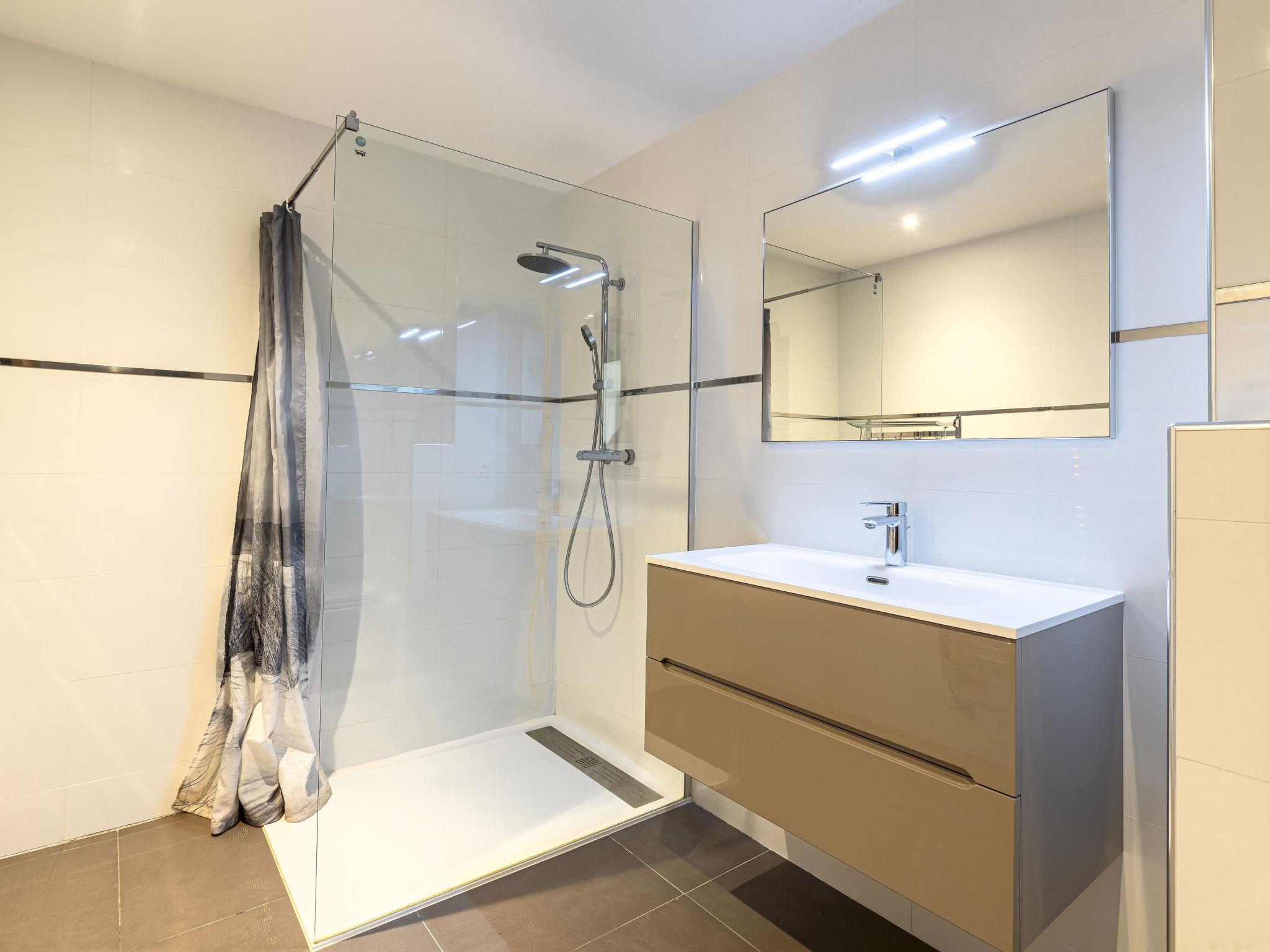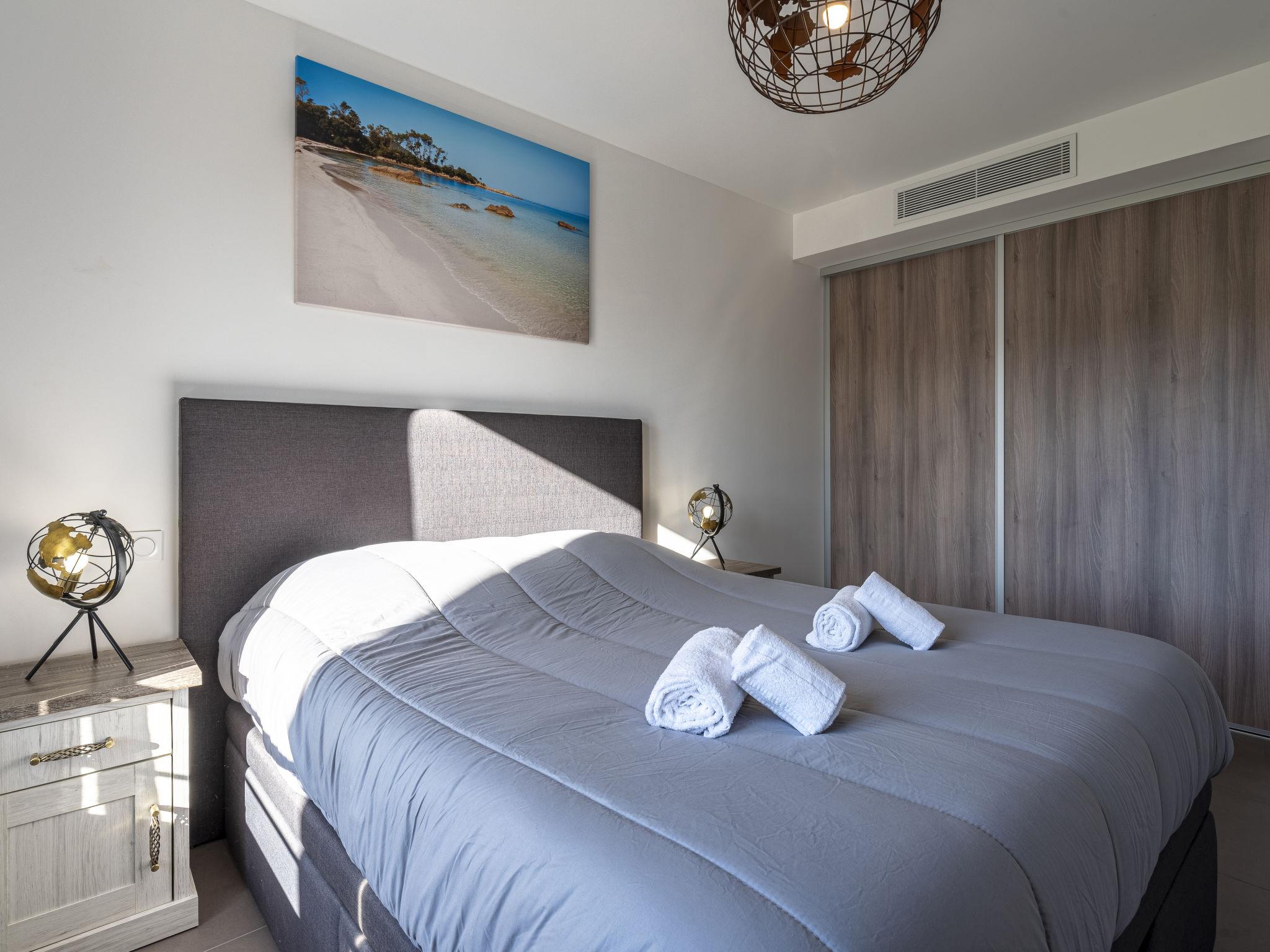 "Domaine d'Arca G6", 2-Zimmer-Wohnung 51 m2 im 2. Stock. Modern eingerichtet: Wohn-/Esszimmer mit Panoramafenster mit 1 Doppeldiwanbett (140 cm, Länge 190 cm), TV (Flachbildschirm). Ausgang zum Balkon, zur Terrasse. 1 Zimmer mit Panoramafenster mit 1 franz. Bett (160 cm, Länge 200 cm). Ausgang zur Terrasse. Offene Küche (Backofen, Geschirrspüler, 1 Induktionskochplatten, 4 Flammen, Wasserkocher, Mikrowelle, elektrische Kaffeemaschine). Bad/WC. E-Heizung, Klimaanlage. Terrasse 20 m2. Terrassenmöbel. Zur Verfügung: Waschmaschine. Internet (WLAN, gratis). Parkplatz. Bitte beachten: Nichtraucher-Unterkunft. Rauchmelder. 2A247000122EE