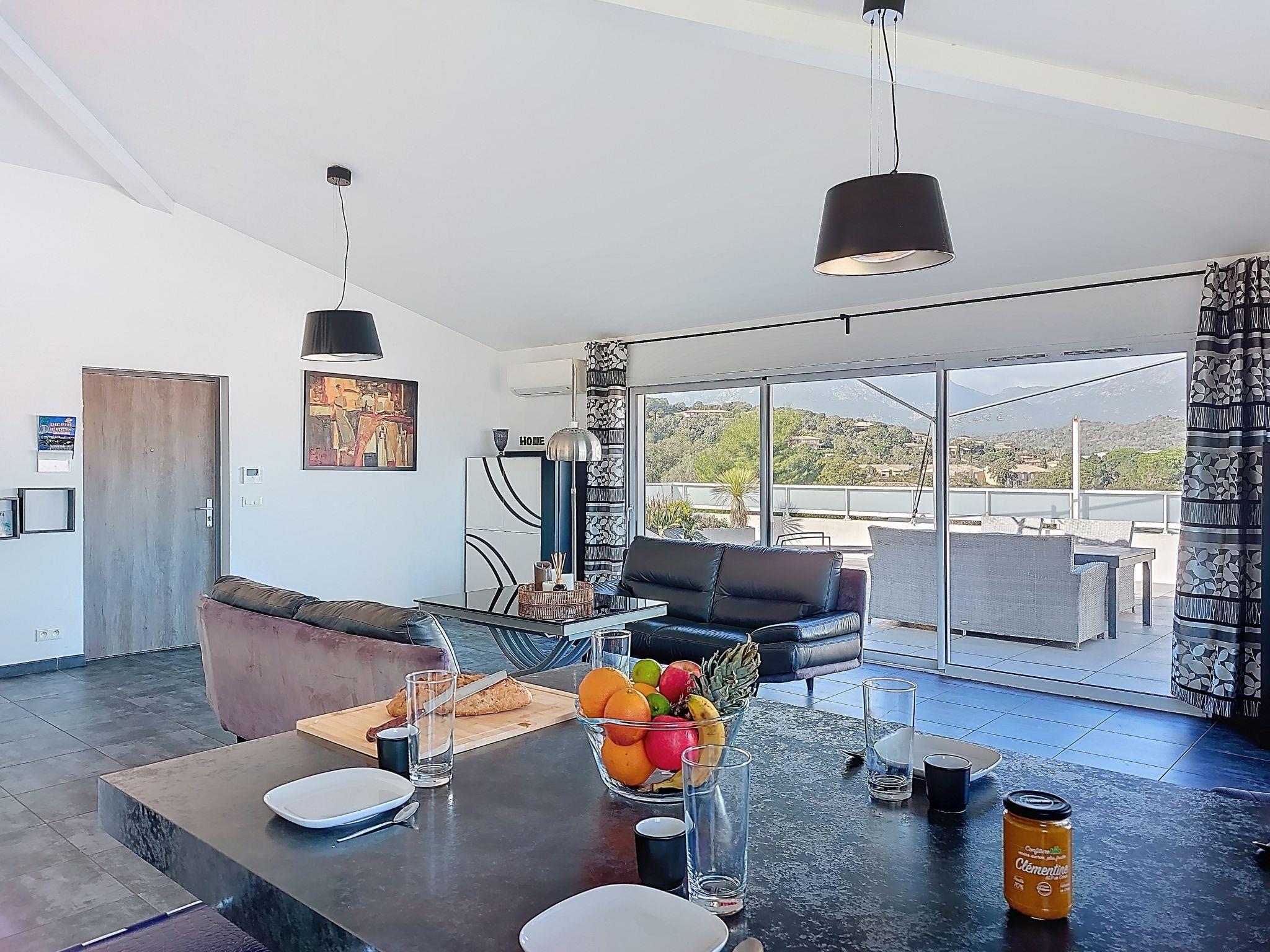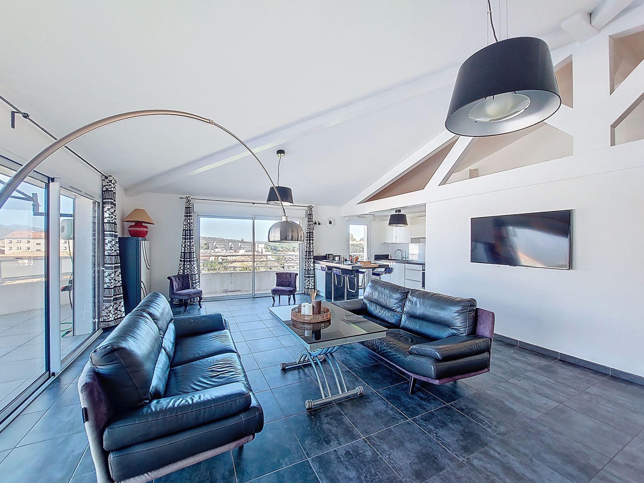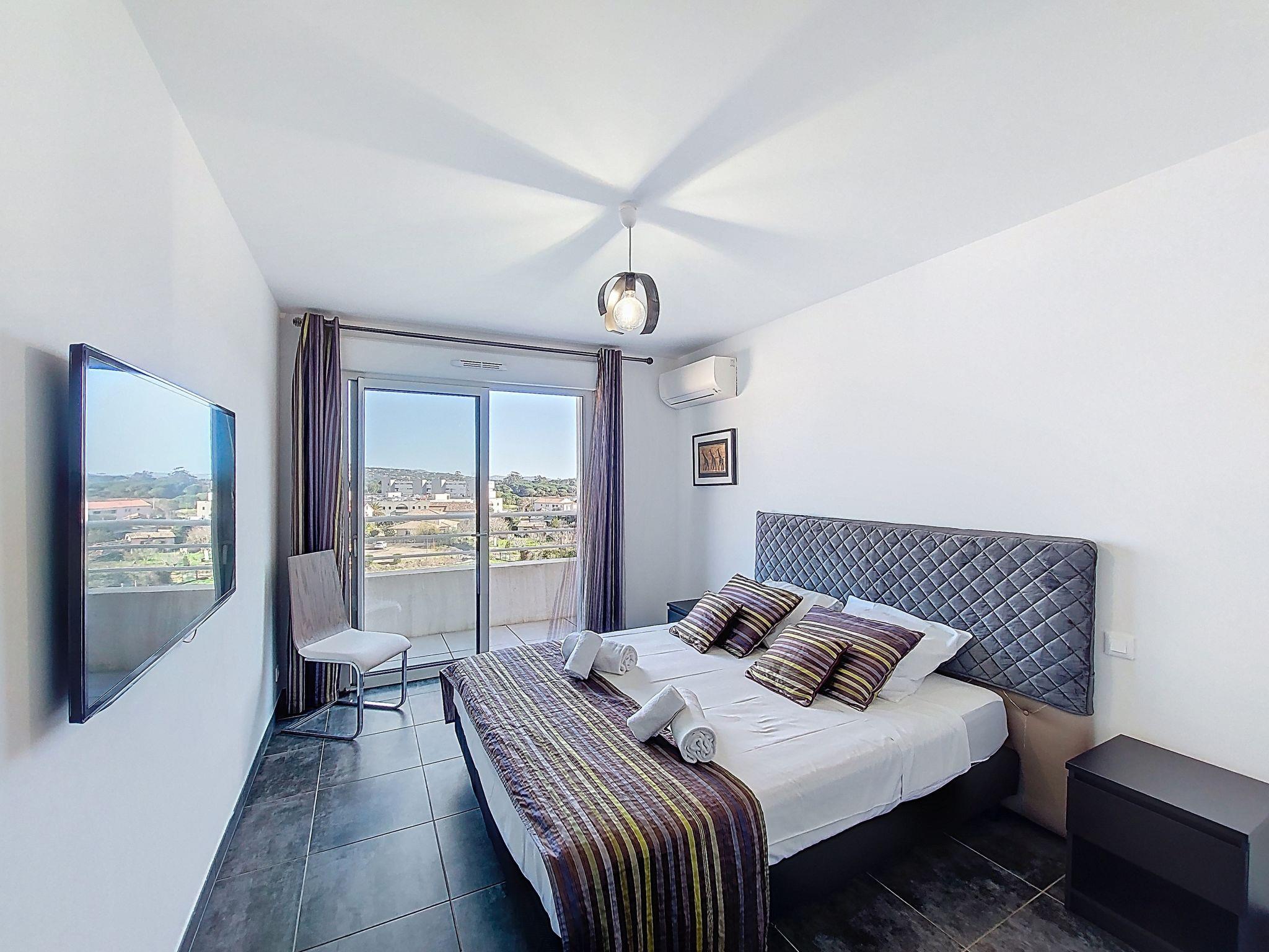 "La Boétie Penthouse", 4-Zimmer-Wohnung 108 m2 im 3. Stock. Geräumig, schön eingerichtet: grosses Wohn-/Esszimmer mit Esstisch und TV (Flachbildschirm). Ausgang zur Terrasse. 1 Zimmer mit 1 franz. Bett (160 cm, Länge 200 cm), TV (Flachbildschirm). 1 Zimmer mit 1 franz. Bett (160 cm, Länge 200 cm), TV (Flachbildschirm). Ausgang zur Terrasse. 1 Zimmer mit 2 Betten (80 cm, Länge 190 cm). Ausgang zur Terrasse. Offene Küche (Backofen, Geschirrspüler, 4 Induktionskochplatten, Toaster, Wasserkocher, Mikrowelle, Tiefkühler, elektrische Kaffeemaschine, Kochinsel). 2 Duschen/WC, sep. WC. E-Heizung, Klimaanlage. Grosse Terrasse 80 m2 teilweise überdacht. Terrassenmöbel, Elektrogrill, Liegestühle (4). Sicht auf die Berge und die Landschaft. Zur Verfügung: Waschmaschine, Bügeleisen, Babybett bis 2 Jahre, Haartrockner. Internet (WLAN, gratis). Parkplatz Nr. 1. Bitte beachten: Nichtraucher-Unterkunft. Rauchmelder. Inserat einer Privatperson nach Artikel 155, IV, CGI. 2A24700243305