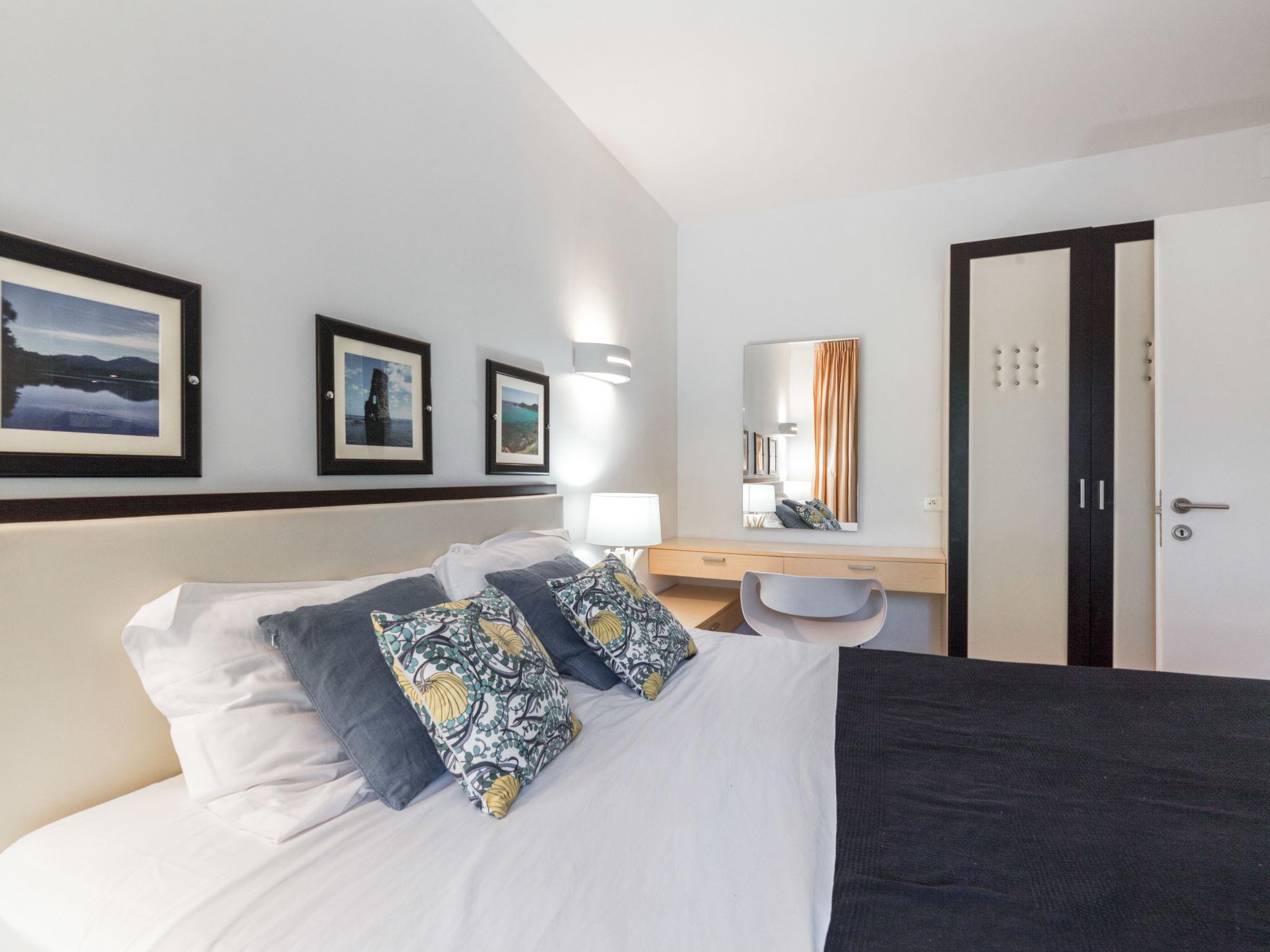 3-Zimmer-Wohnung 55 m2, im Erdgeschoss. Schön und modern eingerichtet: Wohn-/Esszimmer mit TV (Flachbildschirm). 1 Zimmer mit 1 franz. Bett (160 cm, Länge 200 cm). Ausgang zur Terrasse. 1 Zimmer mit 2 Betten (80 cm, Länge 200 cm). Eingang mit 1 Bett (80 cm, Länge 190 cm). Kochnische (Backofen, Geschirrspüler, 2 Glaskeramikplatten, Toaster, Wasserkocher, Mikrowelle, Tiefkühler, elektrische Kaffeemaschine). Dusche/WC. E-Heizung, Klimaanlage. Terrasse 45 m2. Terrassenmöbel, Liegestühle (2). Zur Verfügung: Waschmaschine, Haartrockner. Internet (WLAN, gratis). Bitte beachten: Nichtraucher-Unterkunft. Rauchmelder. 2A247001514FE