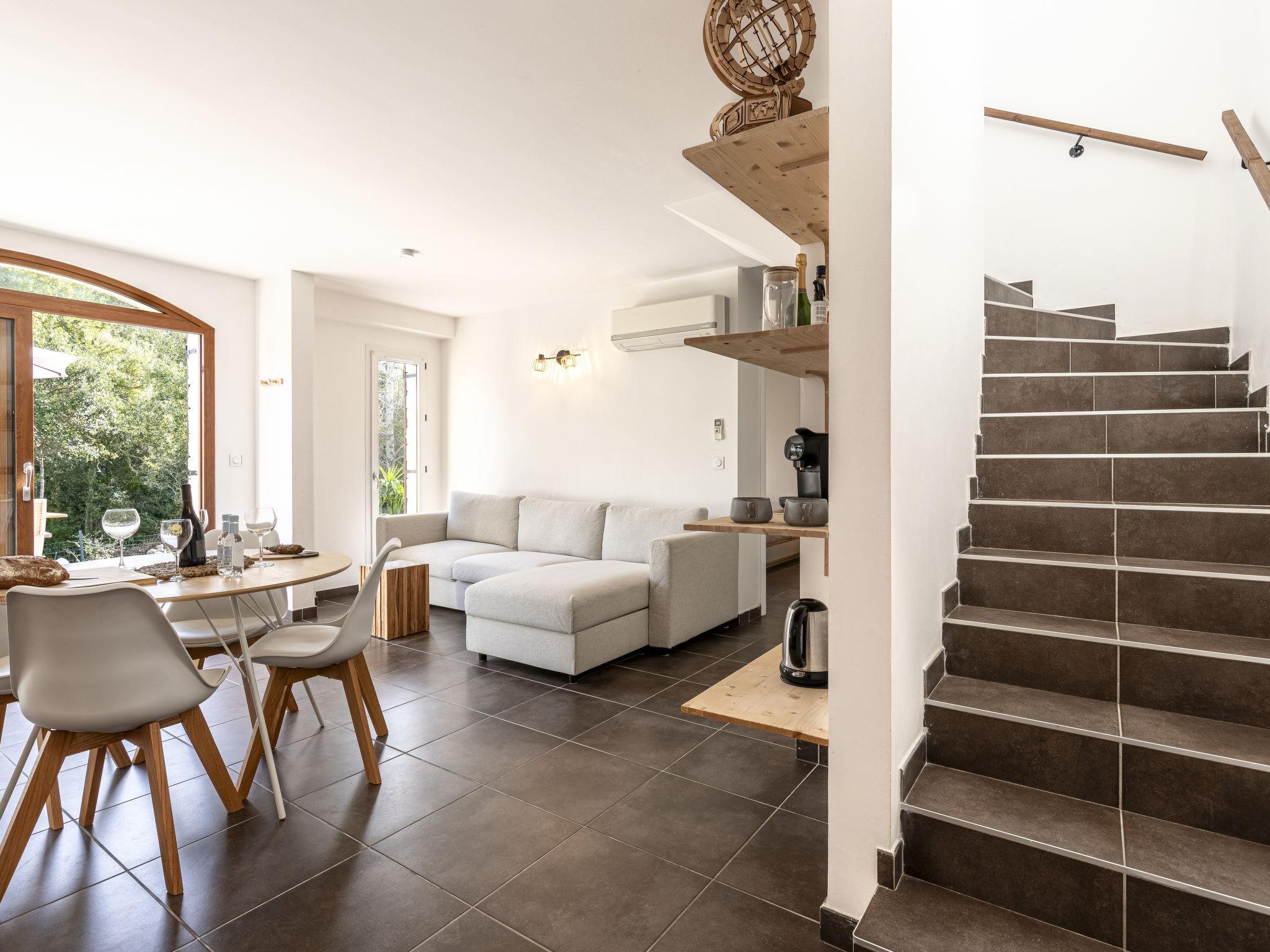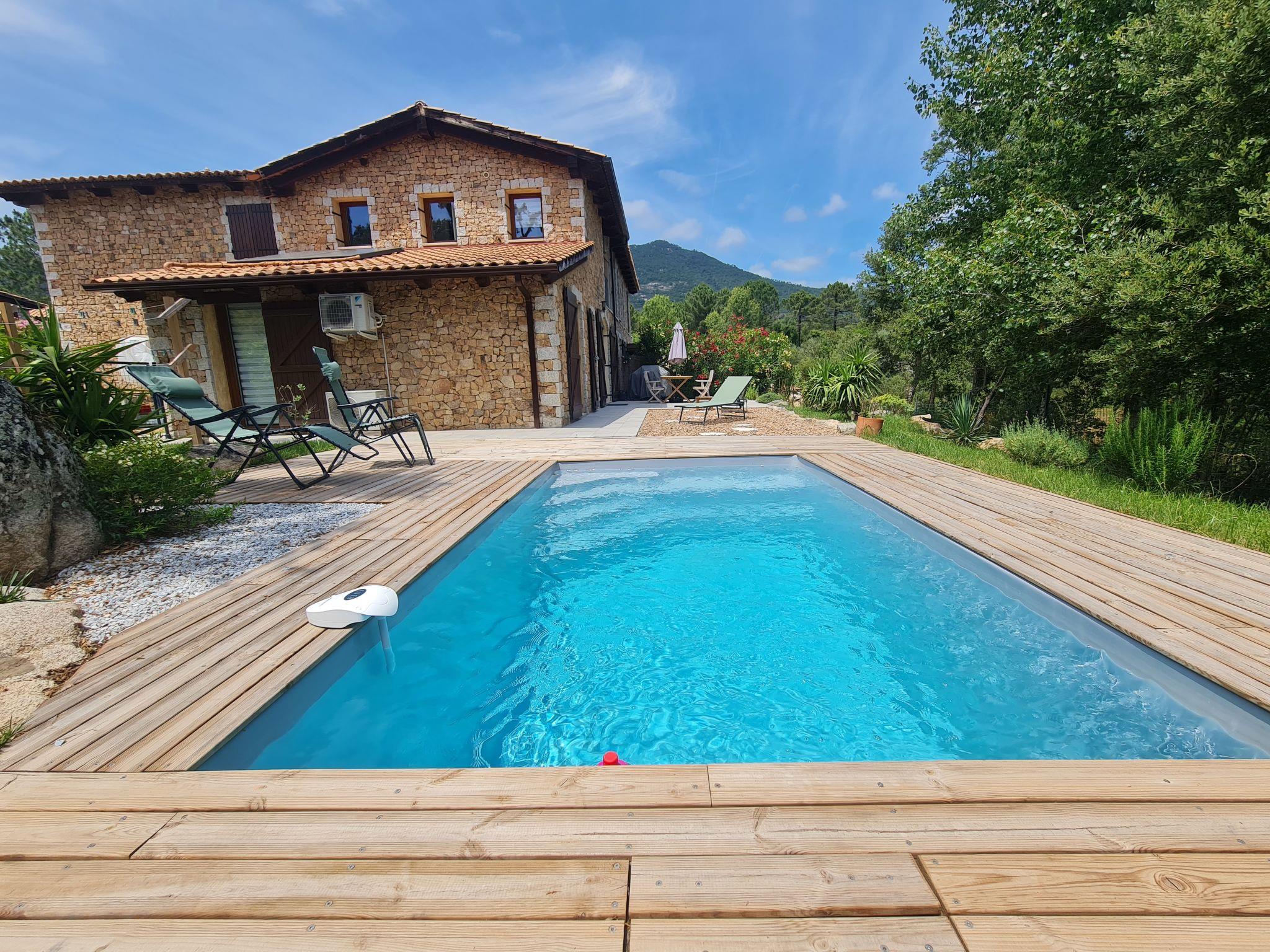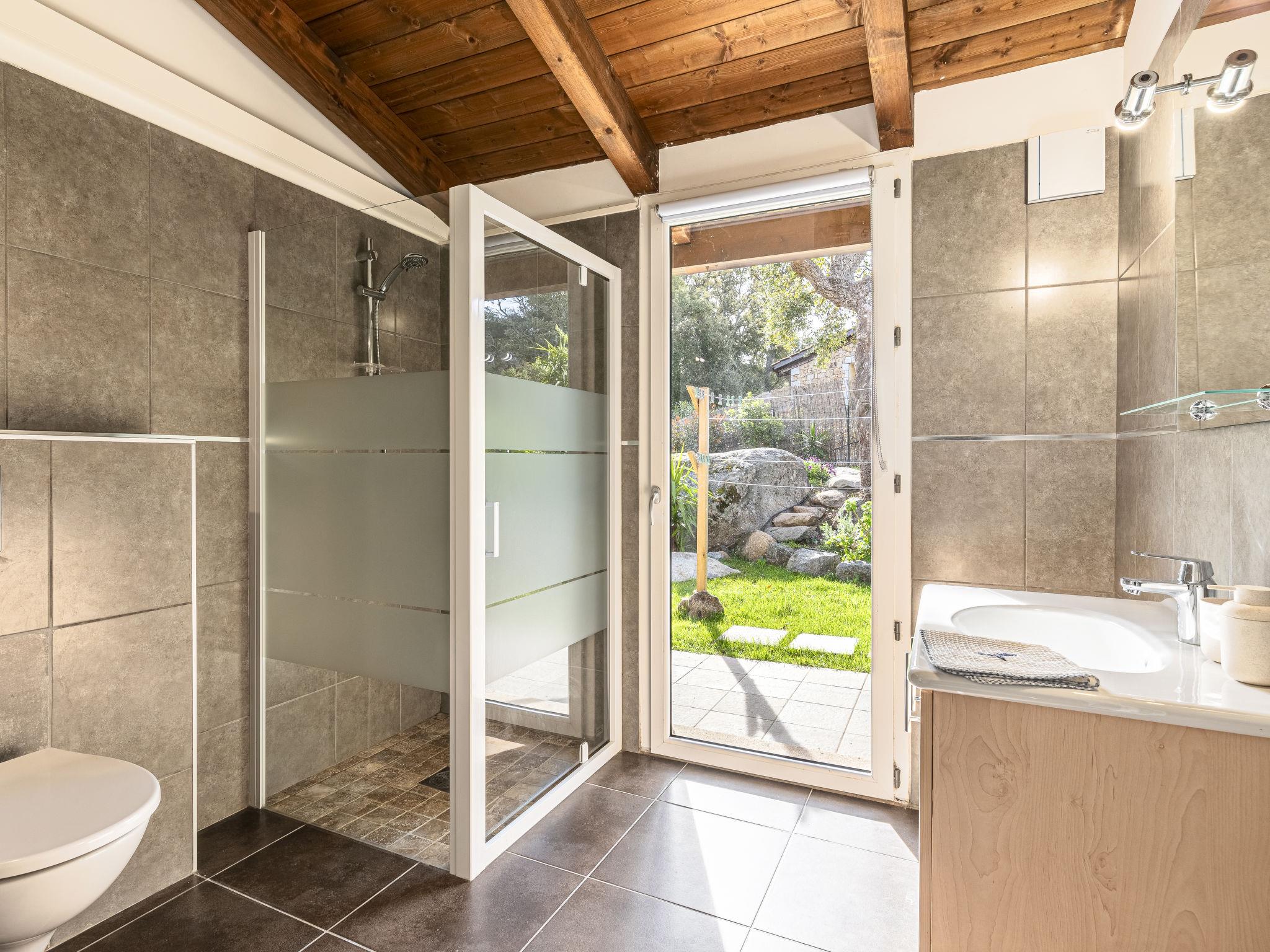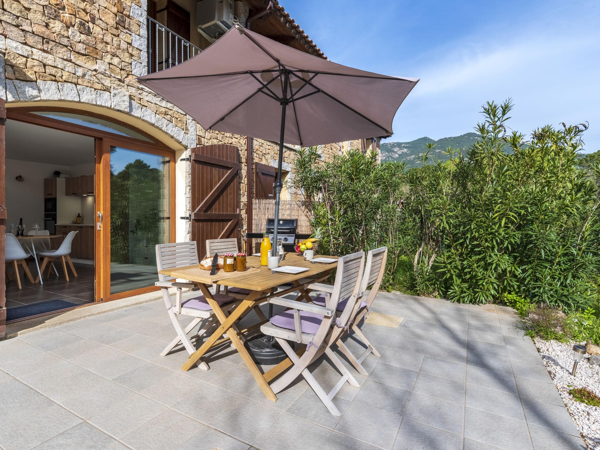 Reihenhaus "Casa Mela". Im Ortsteil Mela, im Ort Porto-Vecchio, ruhige Lage, 10 km vom Meer, 10 km vom Strand, in einer Sackgasse. Zur Alleinbenutzung: gepflegter Garten 270 m2 (eingezäunt) Pflanzen und Blumen, Schwimmbad eckig (4 x 2 m, 150 - 150 cm tief, saisonale Verfügbarkeit: 06.Mai. - 06.Okt.). Poolpflege durch den Besitzer/Gärtner. Parkplatz auf dem Grundstück. Einkaufsgeschäft 1.3 km, Lebensmittelgeschäft 3 km, Restaurant 250 m, Bushaltestelle 7.5 km, Sandstrand "Plage de Cala Verde" 10 km. Sporthafen 9 km. Nahe gelegene Sehenswürdigkeiten: Centre ville de Porto-Vecchio 9 km, Plage de Cala Verde 10 km, Plage de Palombaggia 17 km, Bonifacio 33 km, Plage de Santa Giulia 14 km. Bekannte Seen in der Umgebung sind gut erreichbar: Lac de L'Ospedale 27 km. Wandergebiete: Les Aiguilles de Bavella 48 km. Bitte beachten: Fahrzeug empfohlen. Objekt geeignet für 4 Erwachsene. Die Residenz wird durch elektrische Tore geschlossen.