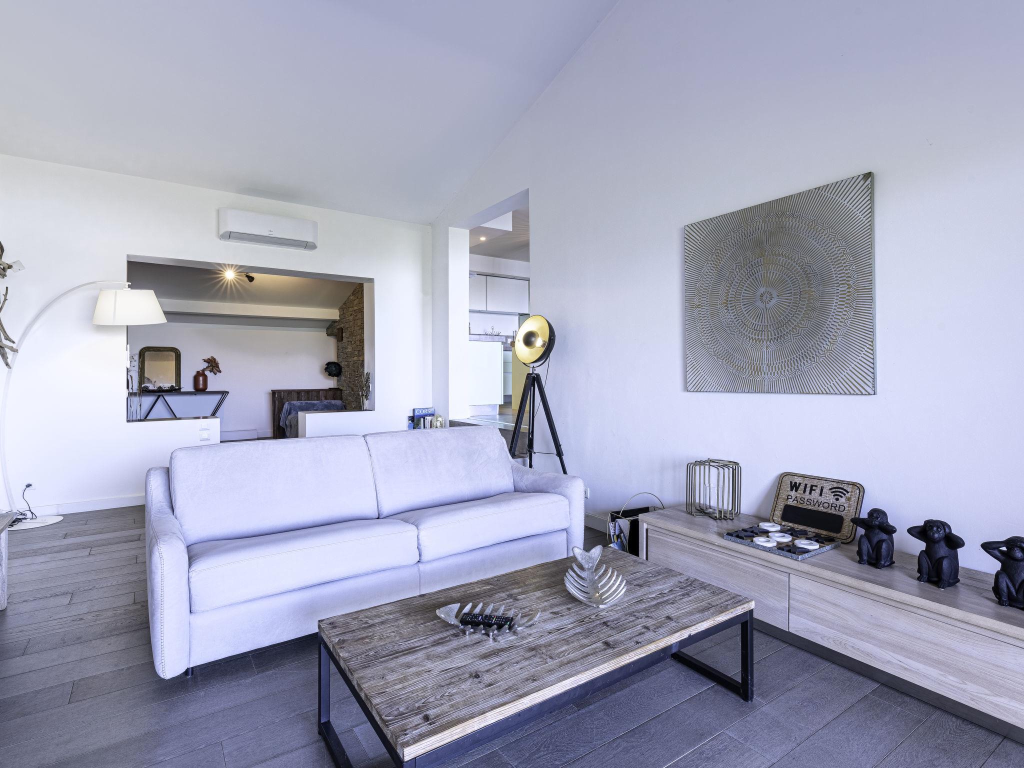 Residenz "les hauts de Pavellone". Ausserhalb des Ortes, 8 km vom Zentrum von Porto-Vecchio, auf einem Hügel, verkehrsberuhigte Zone, 200 m vom Meer, 750 m vom Strand. Zur Mitbenutzung: Schwimmbad eingezäunt (12 x 6 m, saisonale Verfügbarkeit: 15.Mai. - 15.Sep.). Poolpflege durch den Besitzer/Gärtner. Steile Zufahrt bis 100 m zum Haus. Parkplatz (für 2 Autos). Einkaufszentrum 12 km, Restaurant 500 m, Bushaltestelle 8 km, Sandstrand "plage de Pavellone" 750 m. Sporthafen 9 km. Nahe gelegene Sehenswürdigkeiten: Centre ville de Porto-Vecchio 10 km, Plage de Palombaggia 8 km, Plage de Santa Giulia 11 km, Bonifacio 30 km. Bekannte Seen in der Umgebung sind gut erreichbar: Lac de l'Ospédale 30 km. Wandergebiete: Aiguilles de Bavella 55 km. Bitte beachten: Fahrzeug empfohlen.