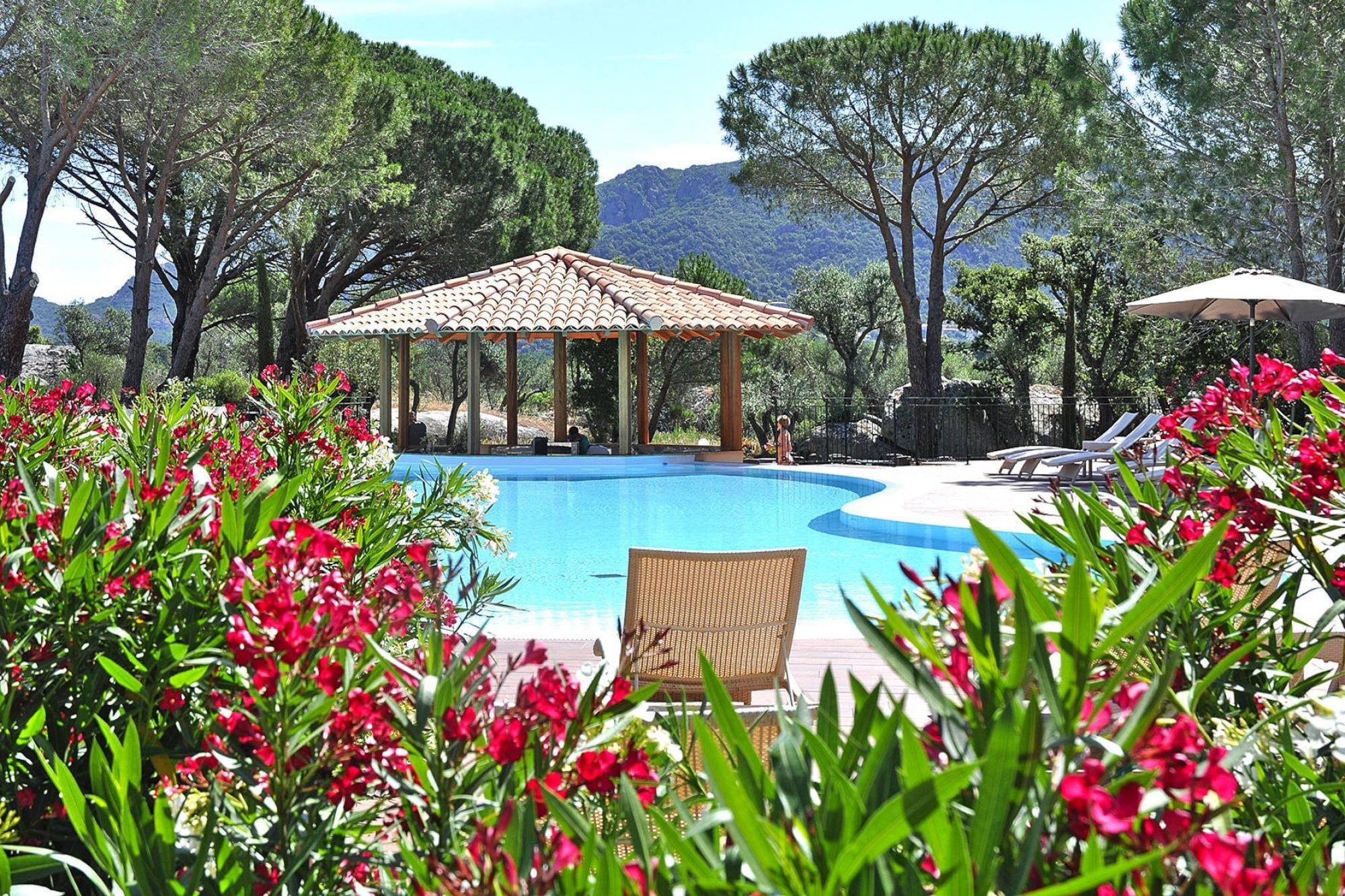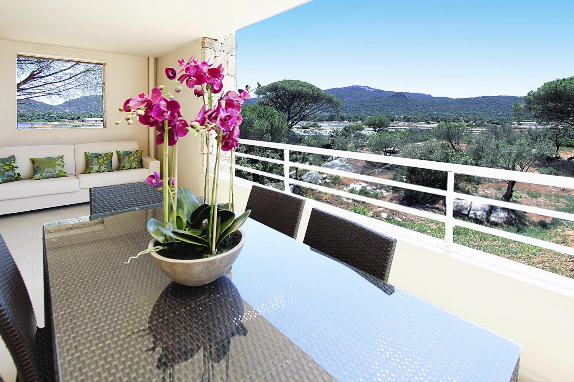 2011 eröffnete Ferienanlage mit 136 sehr modern gestalteten, geräumigen Wohneinheiten und Poolbereich im Süden Korsikas am Golf von Porto Vecchio. Die auf einem 4 Hektar großen Areal mit Pinienwald liegende Anlage fügt sich harmonisch in die Landschaft ein und bietet einen eindrucksvollen Panoramablick auf Porto Vecchio bzw. die Salinen von Porto Vecchio. Die komfortablen Appartements verfügen jeweils über eine große Terrasse (je nach Typ zwischen 20 und 100 Quadratmeter), die zu Mahlzeiten im Freien einlädt. Am 600 qm großen Außenpool (geöffnet je nach Wetterlage) befindet sich auch eine Poolbar. Der Strand von Palombaggia, nur wenige Kilometer von Ihrem Urlaubsdomizil entfernt, wurde von Reisenden zum schönsten Strand Frankreichs 2015 gewählt. Überzeugen Sie sich selbst! Aktivitäten in der Nähe : Nur knapp einen Kilometer von der Anlage entfernt liegt die Altstadt von Porto Vecchio. Hier herrscht in den Sommermonaten reges Treiben bis in die Nachtstunden, und die zahlreichen Cafés, Restaurants und Geschäfte halten vielerlei Angebote für die Gäste bereit. Ausflugtipp: Bonifacio, die Hafenstadt an der Südspitze Korsikas, mit ihrer auf einem Kreidefelsplateau liegenden Oberstadt. Hinweis: 2024 Kurtaxe inkl.