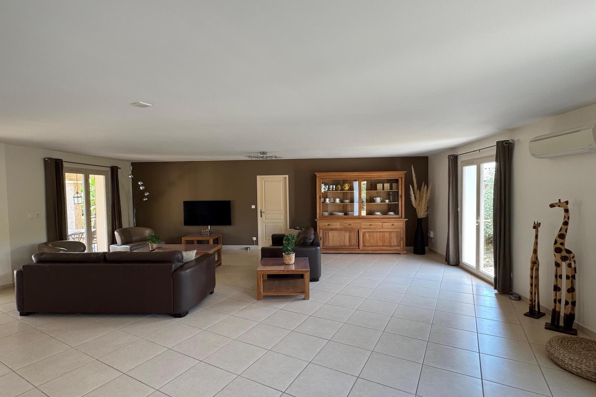 Entdecken Sie den Charme Südfrankreichs in dieser luxuriösen Villa mit 3 Schlafzimmern in Pouzols-Minervois, ideal für bis zu 6 Gäste. Umgeben von sanften Weinbergen und Bergblick bietet dieses Refugium einen privaten Pool mit Sonnenliegen, einen üppigen, eingezäunten Garten und großzügige Terrassen - ideal, um die mediterrane Sonne zu genießen. Im Inneren finden Sie ein klimatisiertes Wohnzimmer, eine voll ausgestattete Küche mit modernen Geräten und zwei stilvolle Badezimmer für ultimativen Komfort. Ob Sie Entspannung oder Aktivität suchen, diese Villa liegt mitten im Geschehen. Schlendern Sie durch die nahegelegenen Weinberge des Minervois, spielen Sie eine Runde auf dem Golfplatz Santa Rosa (26 km) oder erkunden Sie die goldenen Strände nur eine kurze Autofahrt entfernt. Abenteuerlustige können die umliegenden Hügel erwandern, malerische Radtouren unternehmen oder die mittelalterliche Festung von Carcassonne besichtigen. Mit Tennisplätzen, Bootsausflügen bei Le Boat Homps und charmanten Dörfern in der Nähe gibt es jeden Tag etwas Neues zu entdecken. Verwöhnen Sie sich mit südfranzösischer Küche im Restaurant L'Es Pratx oder im Café du Port, beide nur wenige Minuten entfernt. Zurück zu Hause können Sie auf der überdachten Terrasse speisen, den Gasgrill anheizen oder bei einem Glas Wein aus der Region unter dem Sternenhimmel entspannen. Dank Glasfaser-Internet - ein seltener Luxus in der Region - können Sie mühelos streamen, arbeiten oder Ihre Urlaubsmomente teilen. Diese Villa vereint Eleganz, Komfort und Lage zu einem perfekten Rückzugsort.