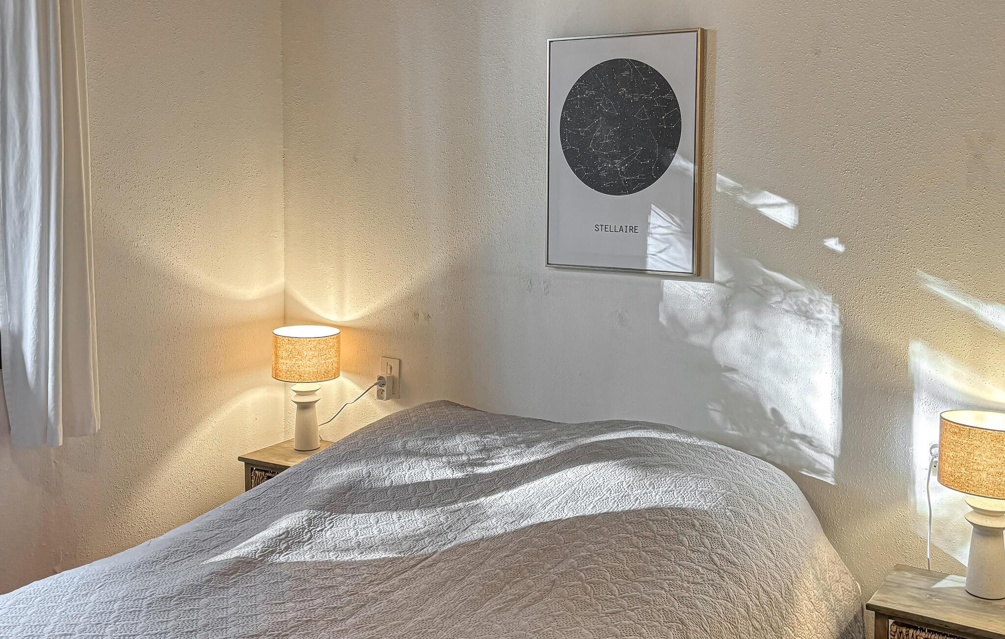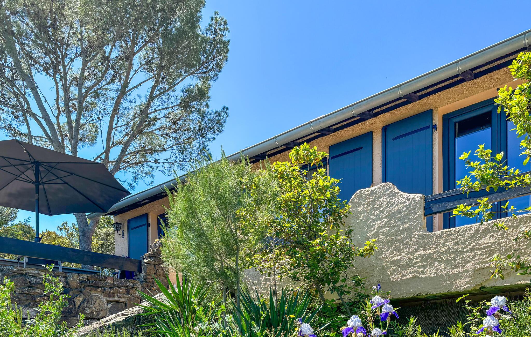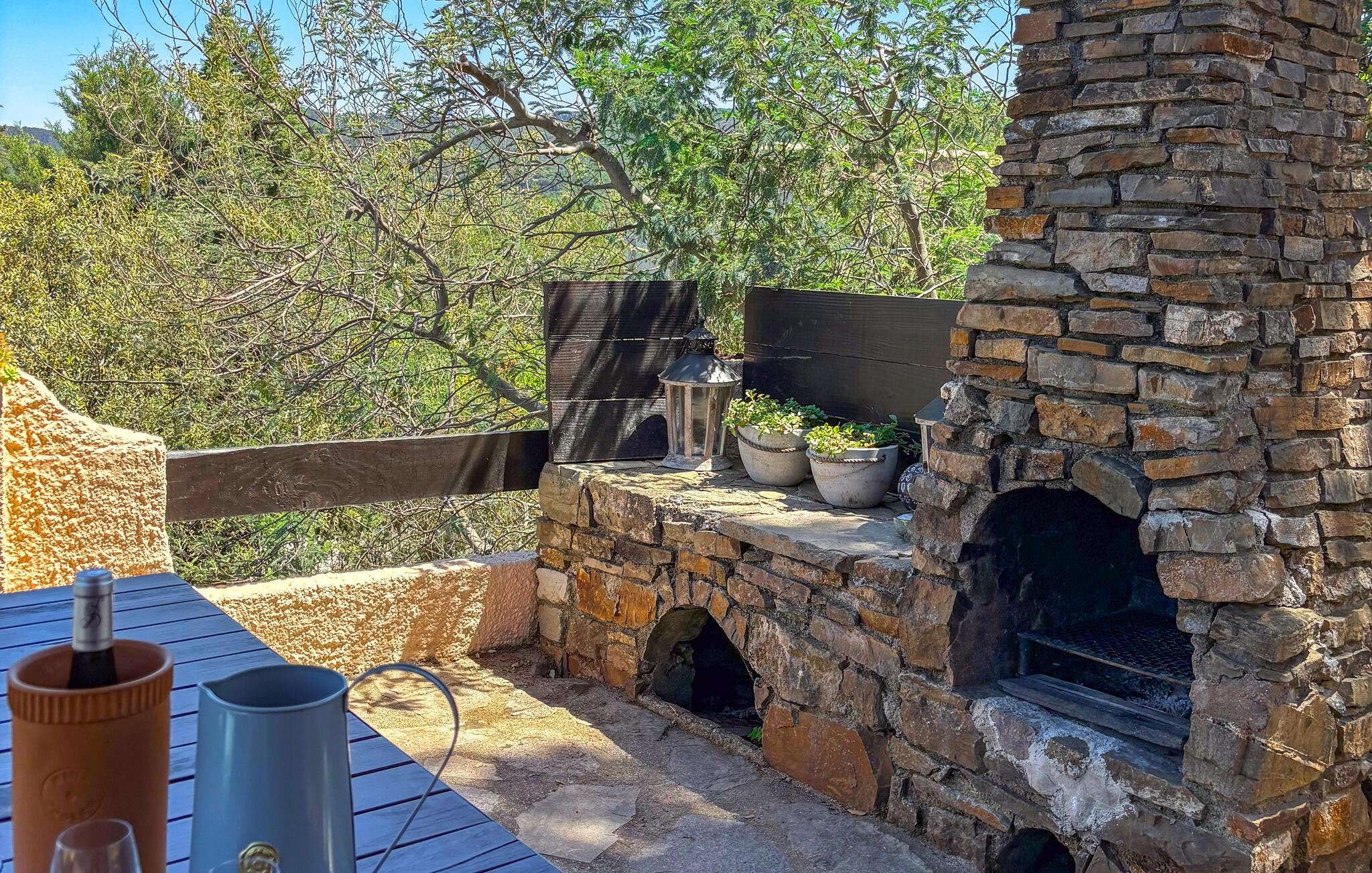 Vom Wohnzimmer aus haben Sie Zugang zur Terrasse, die mit einem Steingrill ausgestattet ist, auf dem Sie im Sommer lokale Spezialitäten zubereiten können. Das Hauptschlafzimmer öffnet sich direkt auf die Terrasse, und das Zwischengeschoss, das vom Wohnzimmer aus zugänglich ist, verfügt über ein Doppelbett für Gäste. Zu den jüngsten Neuerungen gehören ein stilvolles Wohnzimmer mit Holzofen, ein renovierter Flur, eine Dachisolierung und Klimaanlagen in beiden Schlafzimmern. Diese Merkmale sorgen für einen komfortablen Aufenthalt zu jeder Jahreszeit.