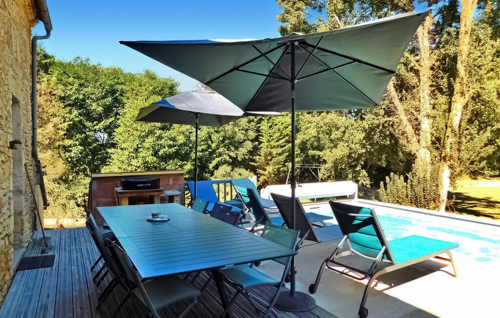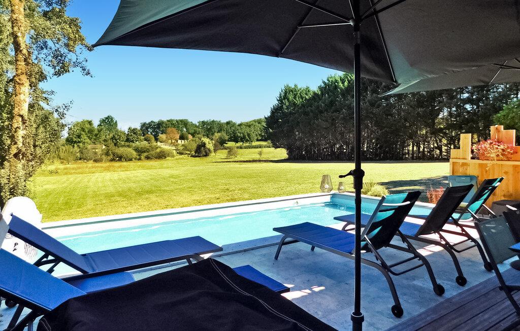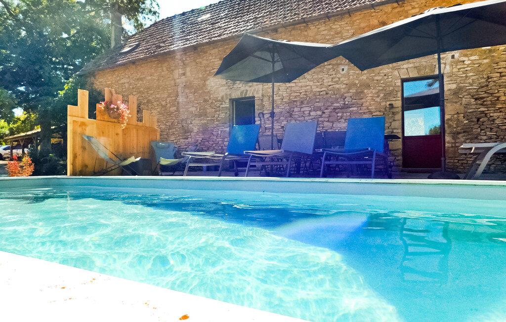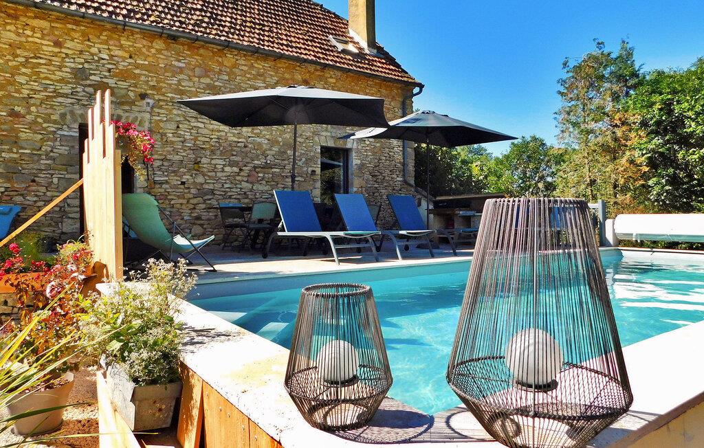 Dieses Ferienhaus auf dem Land ist Teil eines Anwesens mit separaten Wohneinheiten. Es verfügt über einen Indoor-Wellnessbereich (Hamam, Sauna, Whirlpool) und einen Fitnessraum/Spielzimmer zur gemeinsamen Nutzung. Das Haus bietet im Erdgeschoss ein Wohnzimmer, eine Küche, einen Essbereich und ein Schlafzimmer mit eigenem Bad. Im Obergeschoss befinden sich ein Zwischengeschoss und die restlichen Schlafzimmer. Im Außenbereich stehen eine große Wiese, eine Holzterrasse und ein privater beheizter 8m x 3m großer Pool mit Liegestühlen zur Verfügung. Zu den Gemeinschaftseinrichtungen gehören Wellnesseinrichtungen, ein Fitnessstudio und ein Spielezimmer. Das Haus liegt in einem Weiler, auf einem Landgut, etwa 0,5 km von Prats-de-Carlux und 4 km von Carlux entfernt.