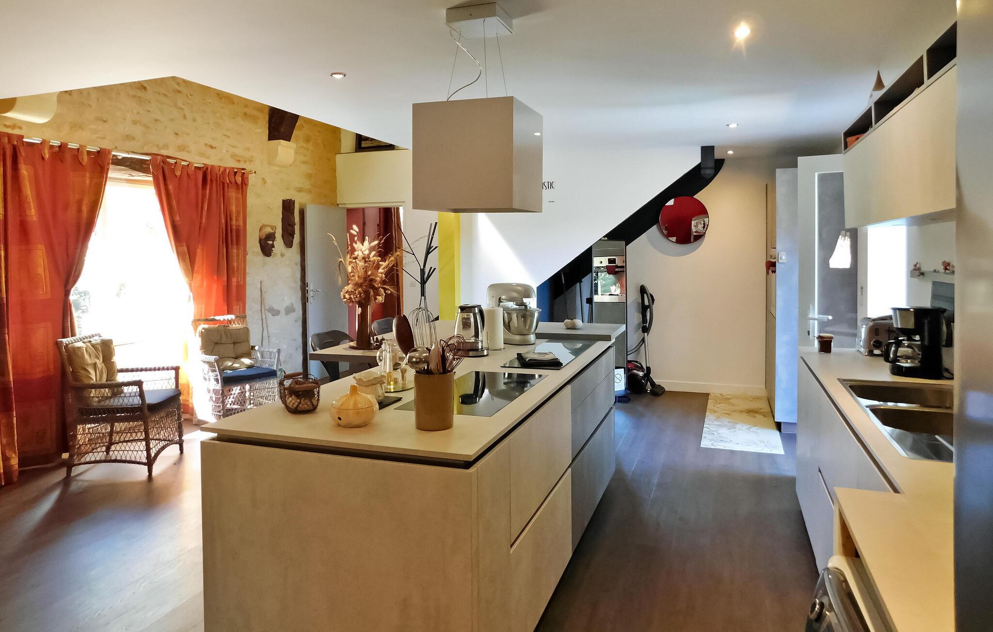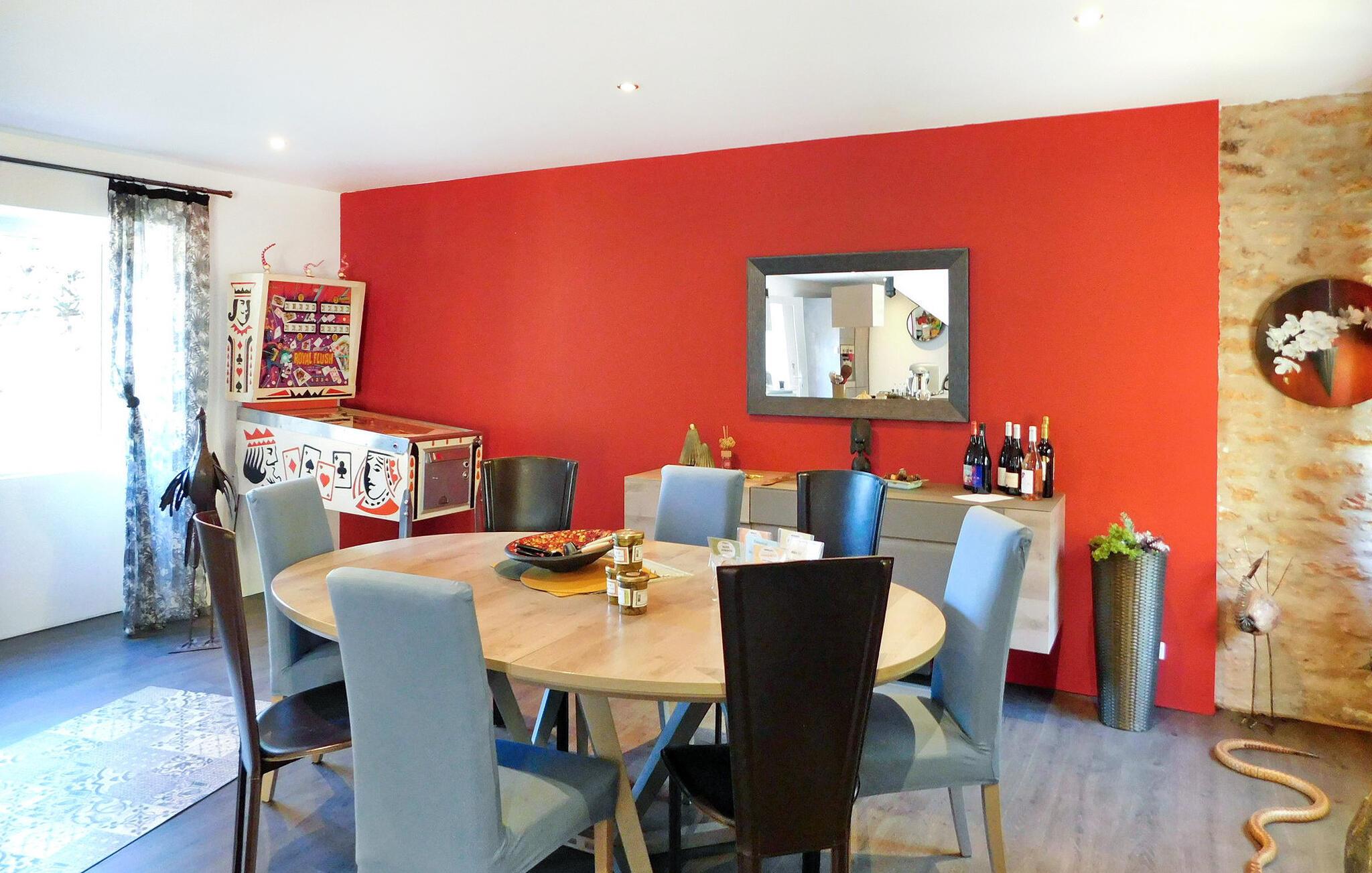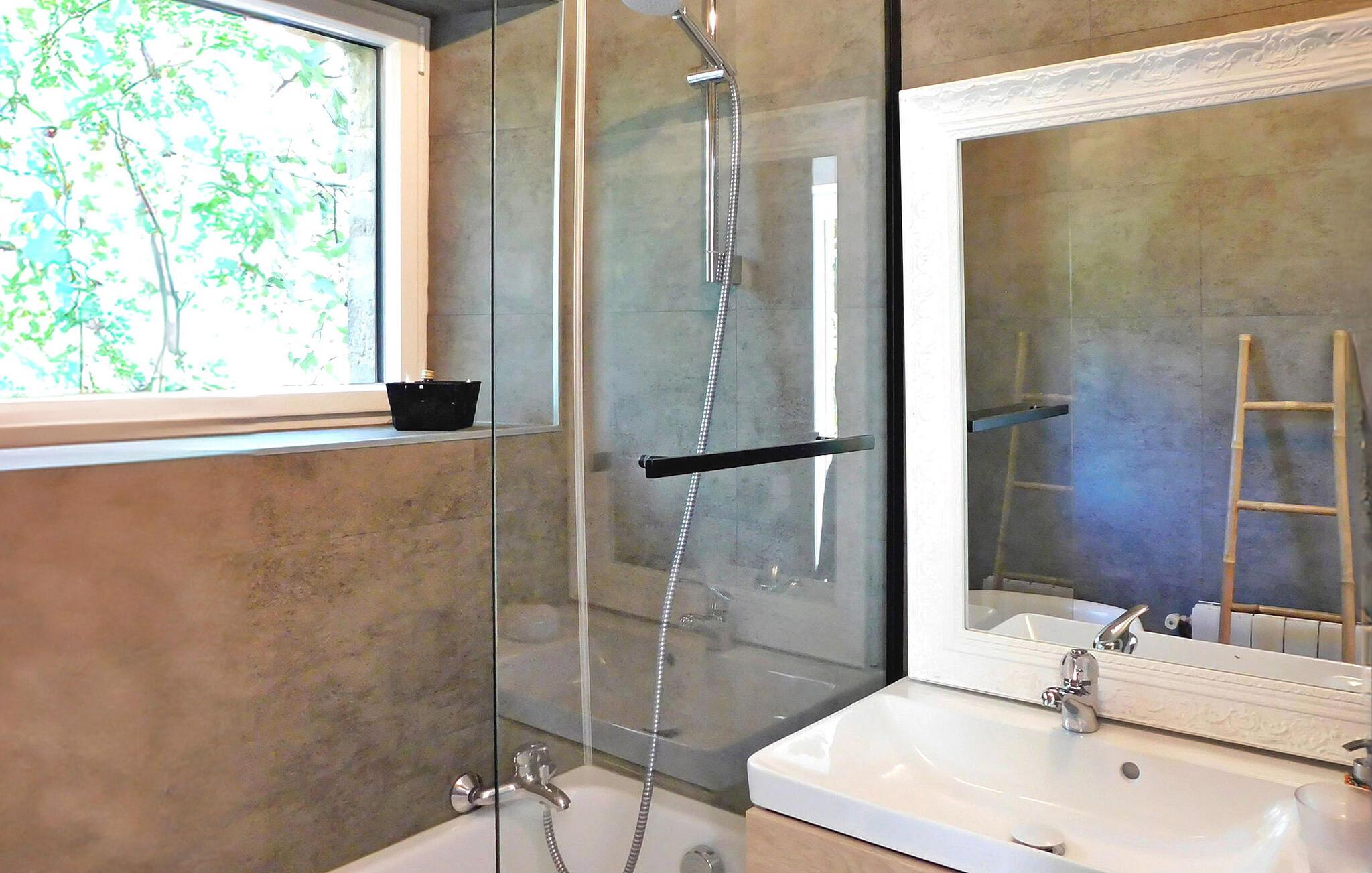 Dieses Ferienhaus auf dem Land ist Teil eines Anwesens mit separaten Wohneinheiten. Es verfügt über einen Indoor-Wellnessbereich (Hamam, Sauna, Whirlpool) und einen Fitnessraum/Spielzimmer zur gemeinsamen Nutzung. Das Haus bietet im Erdgeschoss ein Wohnzimmer, eine Küche, einen Essbereich und ein Schlafzimmer mit eigenem Bad. Im Obergeschoss befinden sich ein Zwischengeschoss und die restlichen Schlafzimmer. Im Außenbereich stehen eine große Wiese, eine Holzterrasse und ein privater beheizter 8m x 3m großer Pool mit Liegestühlen zur Verfügung. Zu den Gemeinschaftseinrichtungen gehören Wellnesseinrichtungen, ein Fitnessstudio und ein Spielezimmer. Das Haus liegt in einem Weiler, auf einem Landgut, etwa 0,5 km von Prats-de-Carlux und 4 km von Carlux entfernt.
