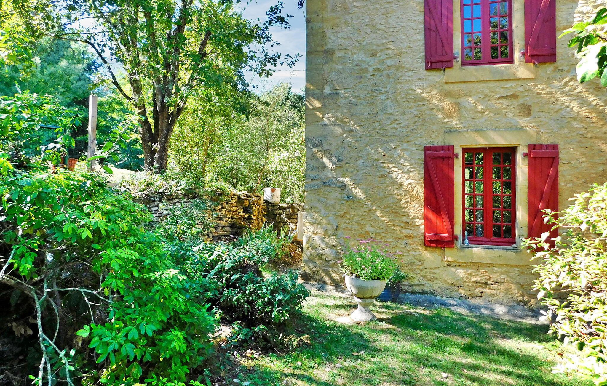 Dieses Ferienhaus auf dem Land ist Teil eines Anwesens mit zwei weiteren Mietobjekten und verfügt über separate Außenbereiche für Privatsphäre. Es bietet einen Indoor-Wellnessbereich mit Hamam, Sauna und Whirlpool sowie ein Fitnessstudio/Spielzimmer, das von den Urlaubern des Anwesens gemeinsam genutzt wird. Im Erdgeschoss befinden sich ein Esszimmer, eine Küche, eine Sitzecke und ein WC. Im ersten Stock befinden sich zwei der Schlafzimmer, während sich im zweiten Stock die restlichen zwei Schlafzimmer befinden, von denen eines ein Durchgangszimmer ist. Draußen gibt es eine Holzterrasse mit Sitzgelegenheiten, einen Swimmingpool (12 x 3 m) und einen üppigen Gartenbereich. Zu den Gemeinschaftseinrichtungen gehören Wellnesseinrichtungen, ein Fitnessstudio und ein Spielezimmer. Das Haus liegt in einem Weiler auf einem 3,5 Hektar großen Grundstück auf dem Land, etwa 0,5 km von Prats-de-Carlux und 4 km von Carlux entfernt.