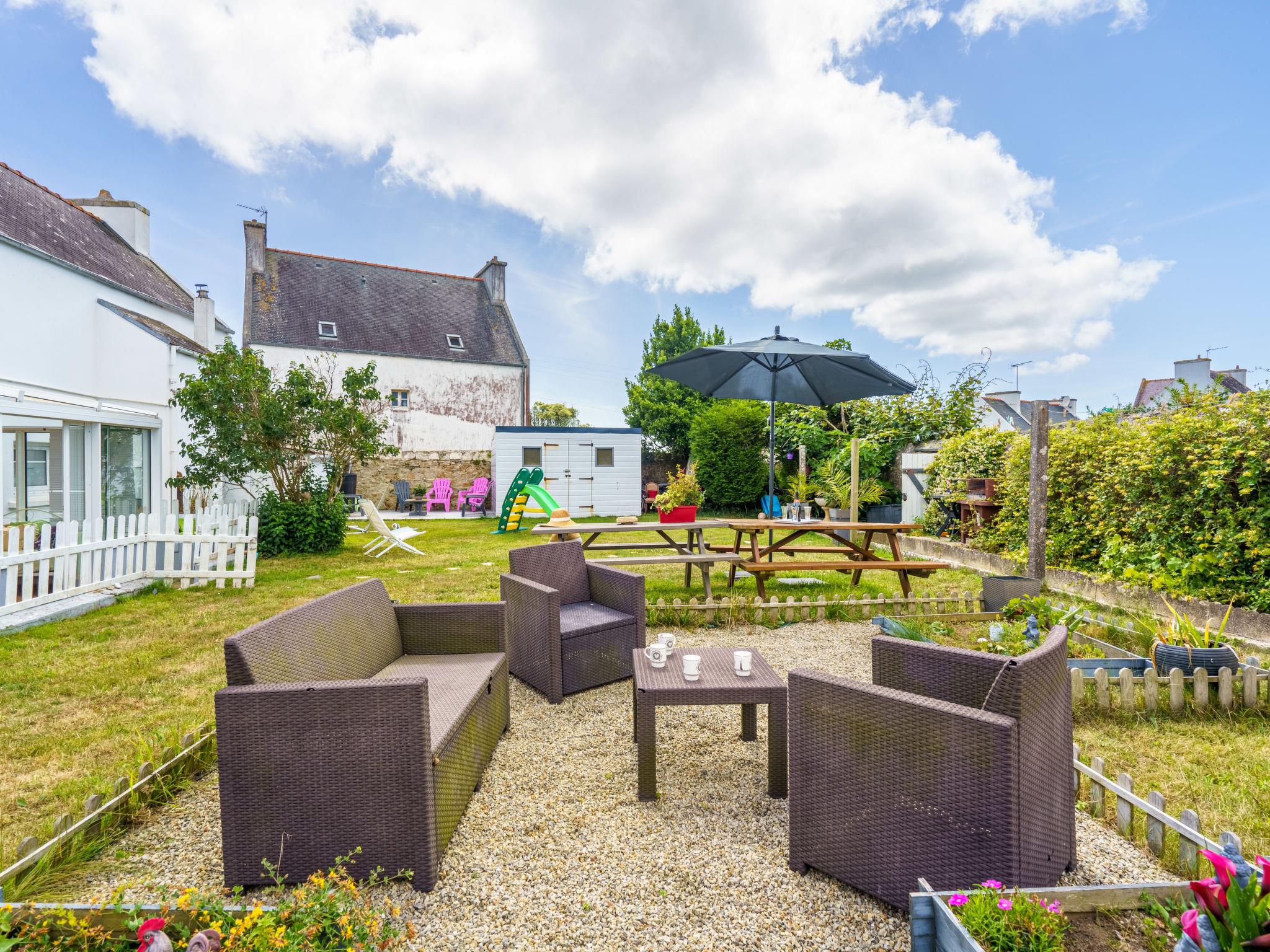Grosses Haus "la maison du bonheur". Mietobjekt bestehend aus Haupt- und Nebengebäude, am Ortsrand, 500 m vom Zentrum von Primelin, 1.5 km vom Meer, 2 km vom Strand. Zur Alleinbenutzung: Grundstück 400 m2 (eingezäunt), Garten mit Rasen, Parkplatz (für 4 Autos) beim Haus. Supermarkt 1.2 km, Restaurant 350 m, Bushaltestelle 5 km, Sandstrand "Plage de St. Tugen" 2 km. Sporthafen 6 km, Segelschule 6 km. Nahe gelegene Sehenswürdigkeiten: Audierne 5 km, La pointe du Raz, la pointe du Van 9 km, Pont Croix 12 km, Douarnenez 27 km, Quimper 49 km, Ile de Sein. Wandergebiete: GR 34, Baie de Audierne, Cap Sizun, Presqu'île de Crozon.