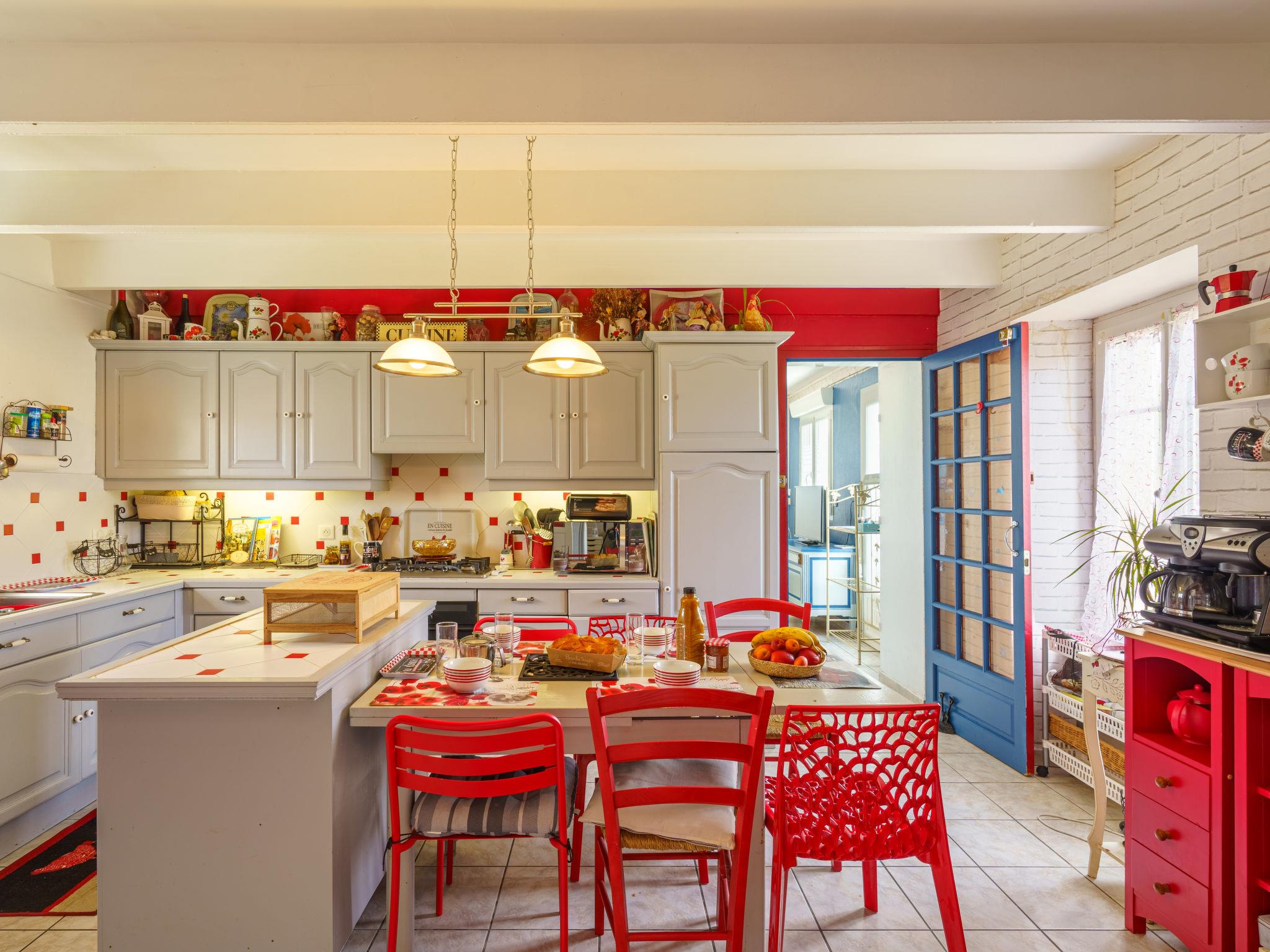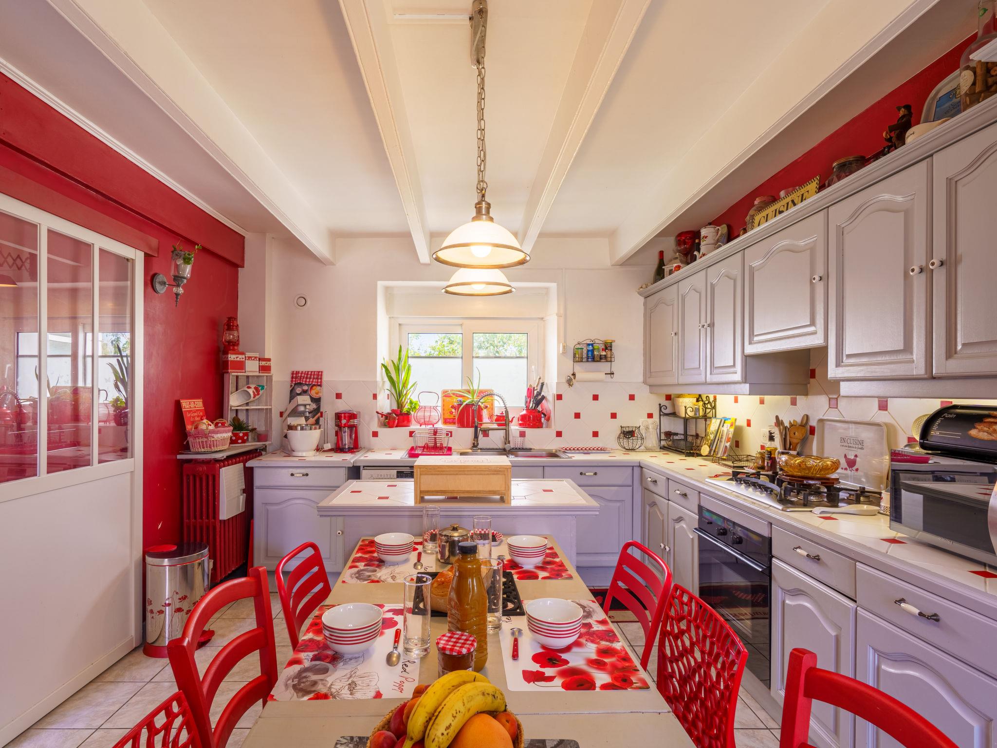 "la maison du bonheur", 6-Zimmer-Haus 180 m2, Südlage. Gemütlich eingerichtet: Eingang. Wohn-/Esszimmer mit Veranda mit TV (Flachbildschirm), CD und DVD. Salon mit TV (Flachbildschirm), Radio. Küche (Geschirrspüler, 5 Flammen, Toaster, Wasserkocher, Mikrowelle, Tiefkühler, elektrische Kaffeemaschine, Racletteofen) mit Esstisch. Obergeschoss: 1 Zimmer mit 1 Etagenbetten (90 cm, Länge 190 cm), 1 franz. Bett (140 cm, Länge 190 cm). 1 Zimmer mit 1 franz. Bett (180 cm, Länge 190 cm). 1 Zimmer mit 1 franz. Bett (180 cm, Länge 190 cm), Bad und Waschbecken. 1 Zimmer mit 2 Betten (90 cm, Länge 190 cm), 1 Diwanbett (80 cm, Länge 170 cm), Dusche. Dusche, 2 sep. WC's. E-Heizung. Terrassenmöbel, Gartengrill, Liegestühle. Zur Verfügung: Waschmaschine, Bügeleisen, Kinderhochstuhl, Babybett bis 2 Jahre, Haartrockner. Internet (Wireless LAN, gratis). Bitte beachten: Nichtraucher-Haus. Rauchmelder. Keine interne Verbindung zwischen den Etagen. Das Haus besteht aus 2 Häusern mit jeweils einer Küche. Zwischen den beiden Teilen gibt es eine Verbindungstür/Erdges. Inserat einer Privatperson nach Artikel 155, IV, CGI.