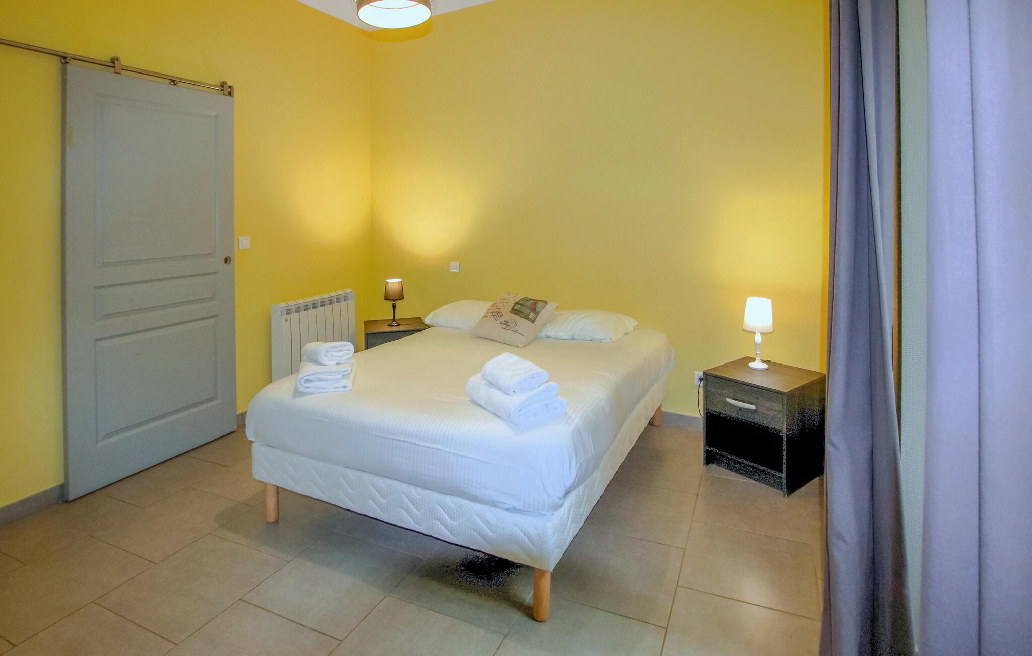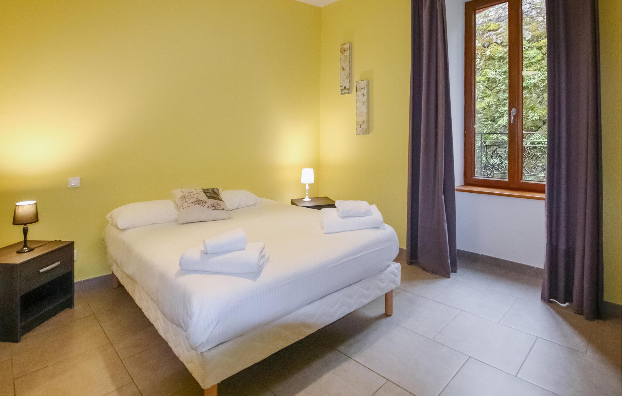 Die "Domaine de Chabanet" bietet nicht nur einen beheizten Innenpool und einen Wellnessbereich mit Spa und Sauna, sondern auch einen Freizeitraum und schattige Plätze, die zum Verweilen einladen und die Sie sich mit den anderen Ferienhäusern teilen. Draußen können Sie Aktivitäten wie Wanderungen in der Natur unternehmen oder die liebenswerten Esel im nahegelegenen Gehege besuchen, besonders beliebt bei kleinen Gästen. Das Anwesen besticht durch seinen großzügigen, gepflegten Park, der von majestätischen Bäumen beschattet wird und einen atemberaubenden Panoramablick bietet.