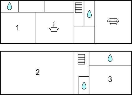 Badezimmer (nr. 1) - WC. Warmes und kaltes Wasser. Dusche