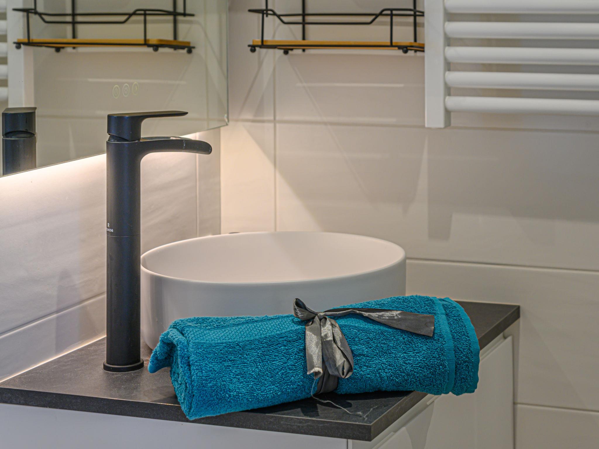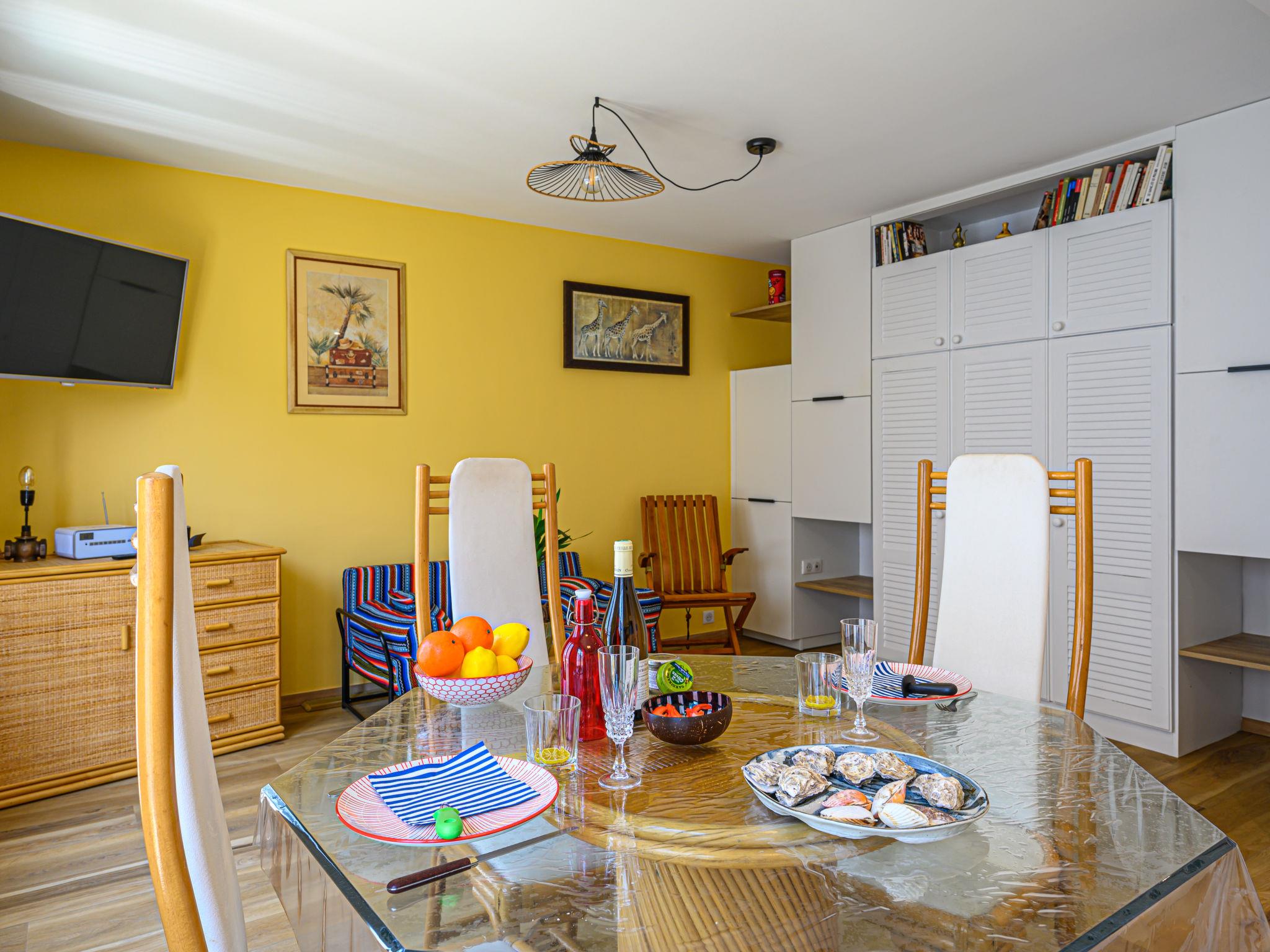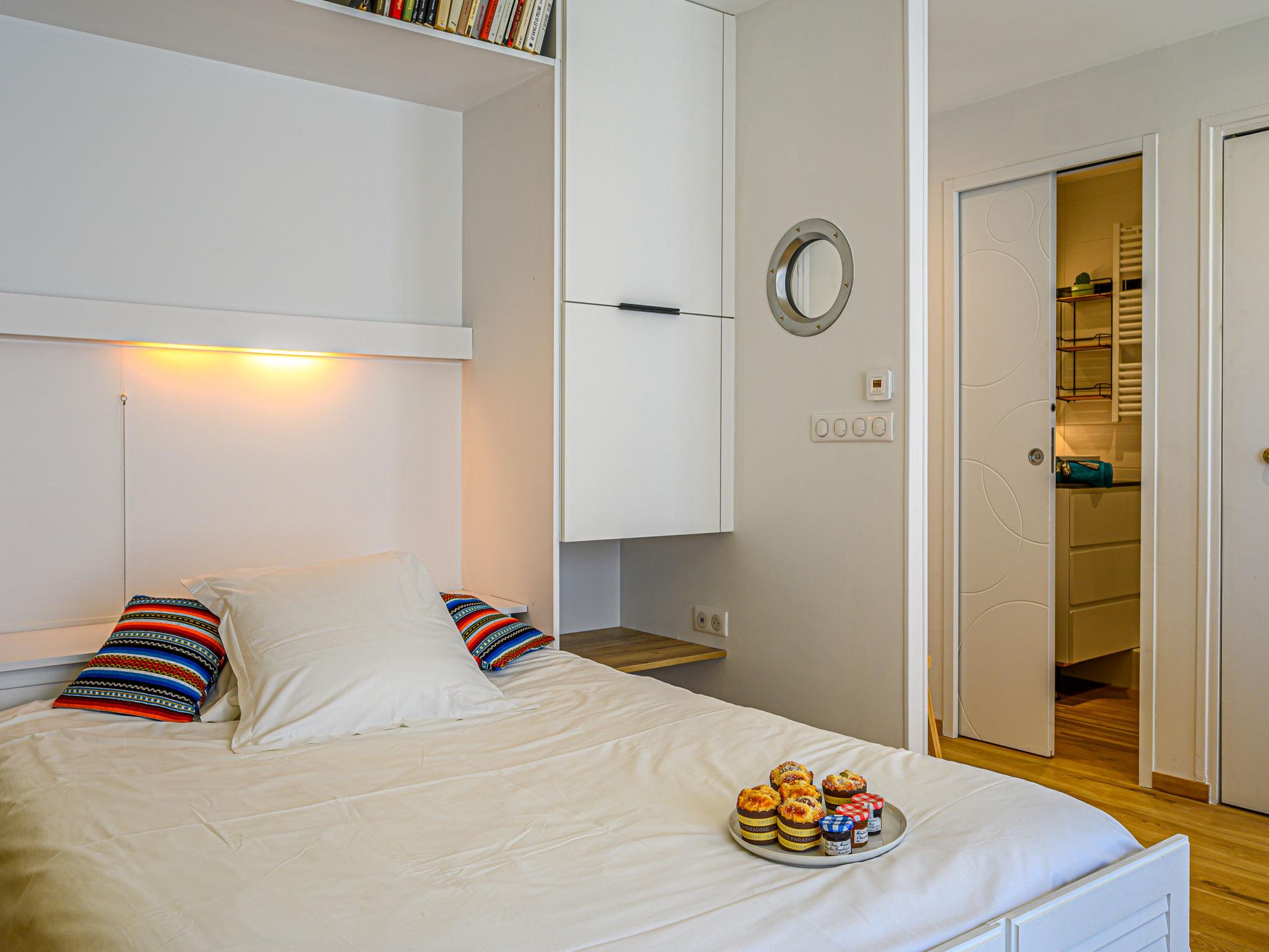 "Résidence Anna Breizh", 1-Zimmer-Studio 25 m2. Komfortabel eingerichtet: Wohn-/Esszimmer mit 1 Doppelwandschrankbett (1 x 140 cm, Länge 190 cm), TV (Flachbildschirm). Ausgang zum Balkon. Kochnische (2 Induktionskochplatten, Wasserkocher, elektrische Kaffeemaschine, Kombinationsmikrowelle). Dusche/WC. E-Heizung. Kleiner Balkon 6 m2. Balkonmöbel. Zur Verfügung: Waschmaschine. Internet (WLAN, gratis). Bitte beachten: Rauchmelder. Inserat einer Privatperson nach Artikel 155, IV, CGI. 56186001051HR